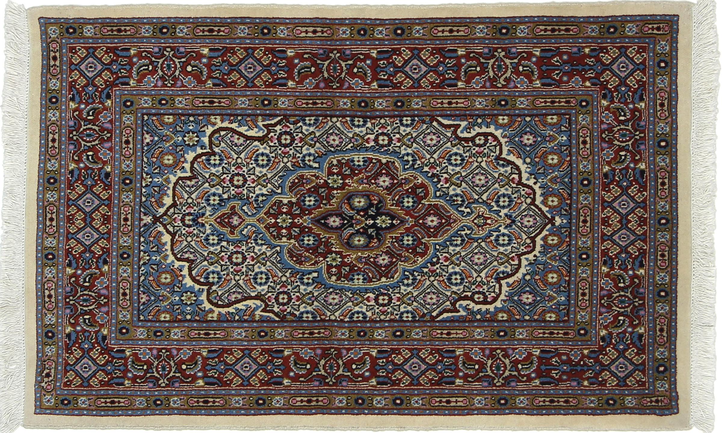 Moud está no Irão, a sul de Mashhad. Como cidade da antiga Pérsia, a sua tradição de nó de tapete remonta a muitos séculos, se não milhares de anos. Os tapetes de Moud têm uma excelente reputação. São feitos com o famoso nó persa. Tipicamente, os tapetes Persas Moud têm um padrão de cobertura total. O padrão Jardim com motivos dos jardins persas ou o padrão Herati.