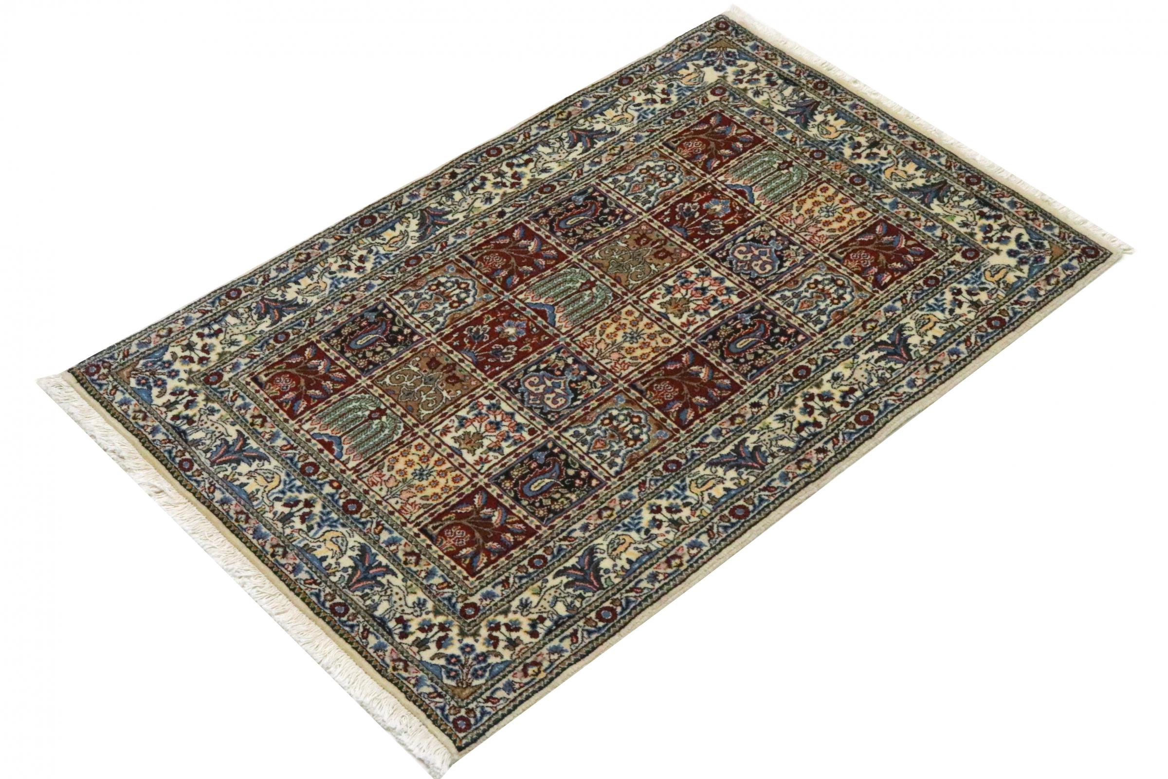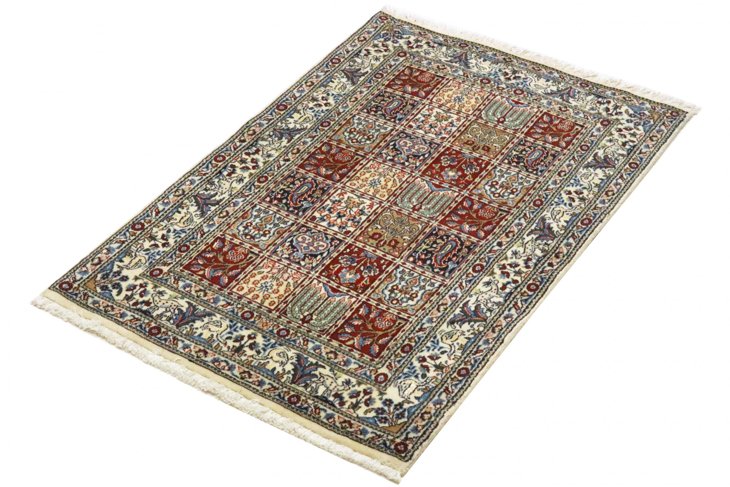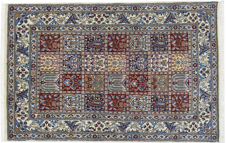 Nº do Tapete: 105961008326035 Tamanho: 144x103 cm Espessura: aproximadamente 12 mm Nós: 320 000 - 350 000 / m² Processamento: Atado à mão Veludo: Lã tecida à mão Urdidura: Algodão Origem: Pérsia / Iran Idade: Novo Peso: aproximadamente 5 kg Em armazém: Único - Apenas 1 em stock