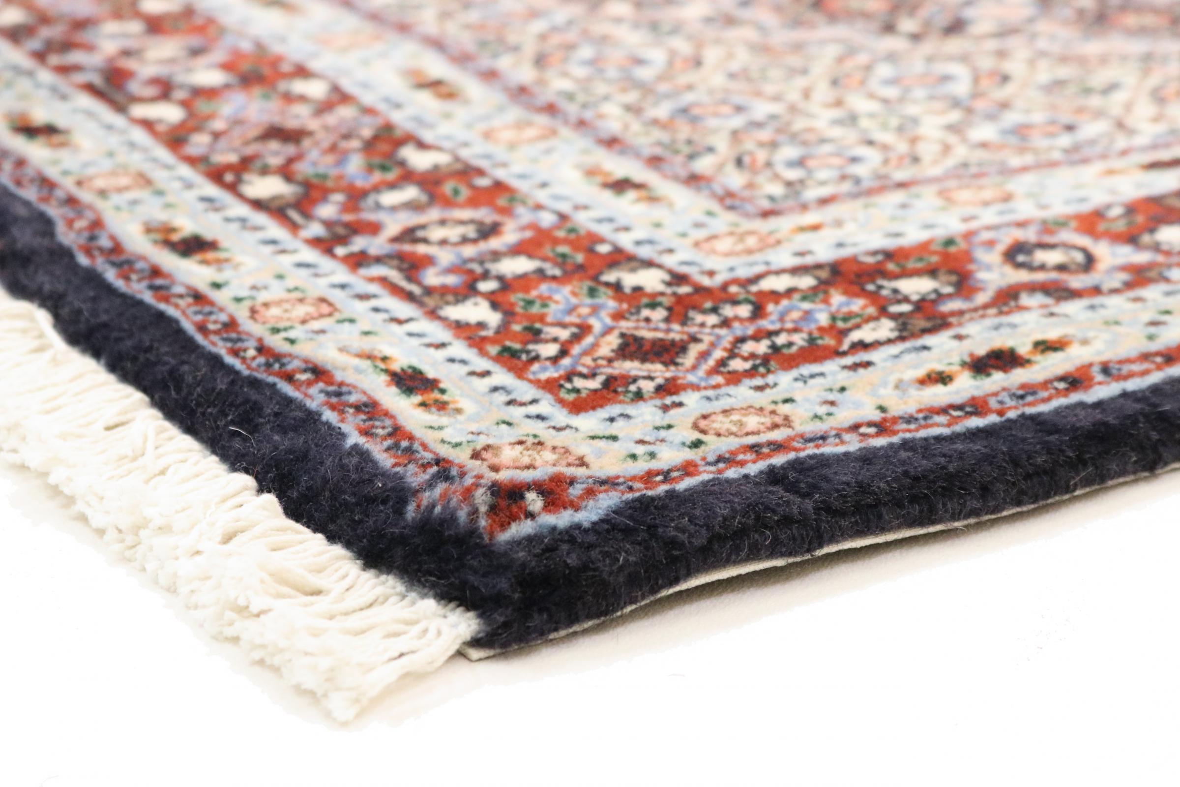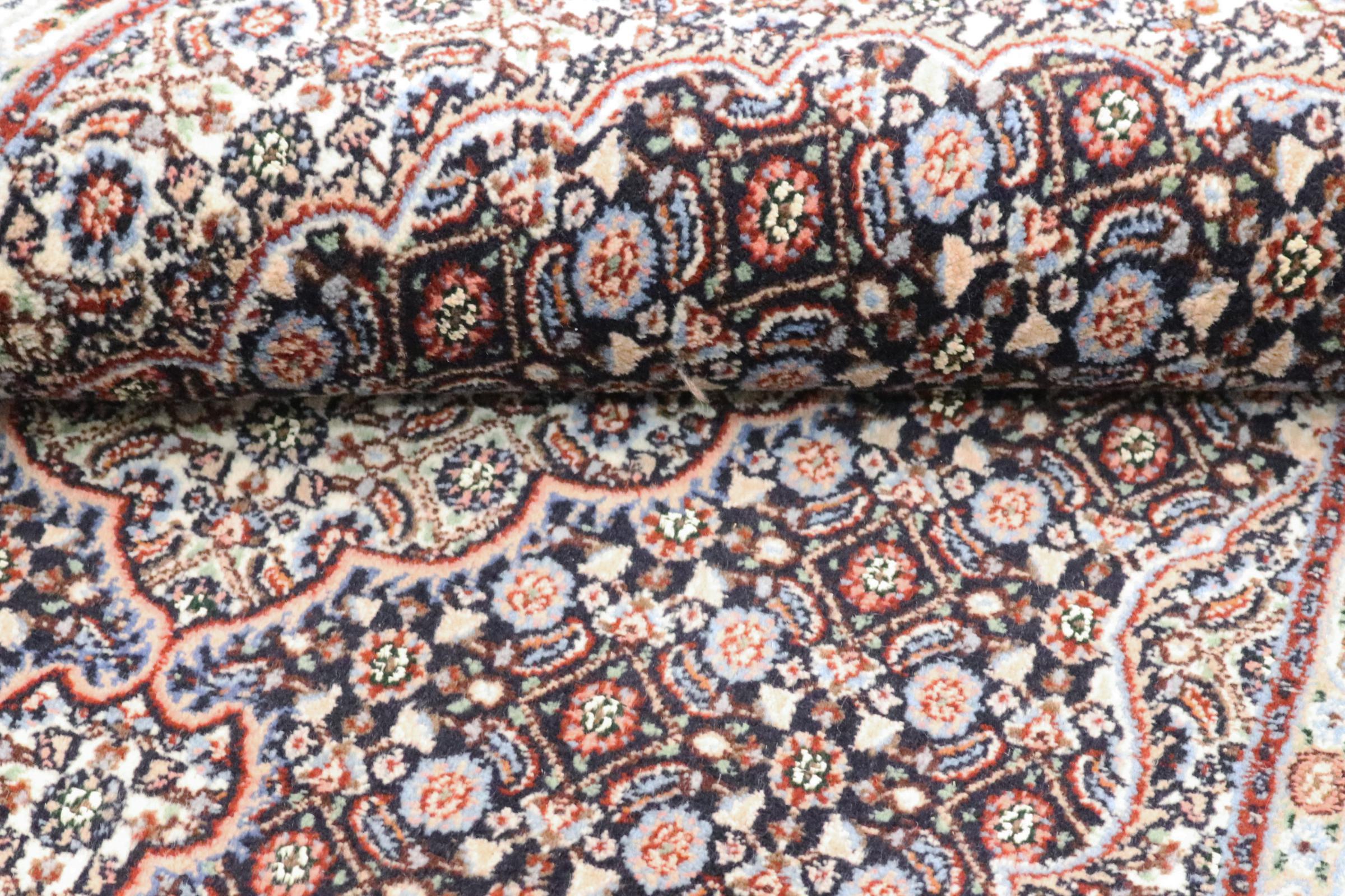 Este tapete de Moud, uma cidade situada 300 km a sul de Mashhad, impressiona à primeira vista. O padrão típico Herati ou desenho de jardim é apreciado por conhecedores e amantes de tapetes persas genuínos. Se procura um tapete feito à mão de excelente qualidade com um design muito distinto e caraterístico, está absolutamente certo com este tipo de tapete.