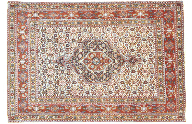 Moud está no Irão, a sul de Mashhad. Como cidade da antiga Pérsia, a sua tradição de nó de tapete remonta a muitos séculos, se não milhares de anos. Os tapetes de Moud têm uma excelente reputação. São feitos com o famoso nó persa. Tipicamente, os tapetes Persas Moud têm um padrão de cobertura total. O padrão Jardim com motivos dos jardins persas ou o padrão Herati.