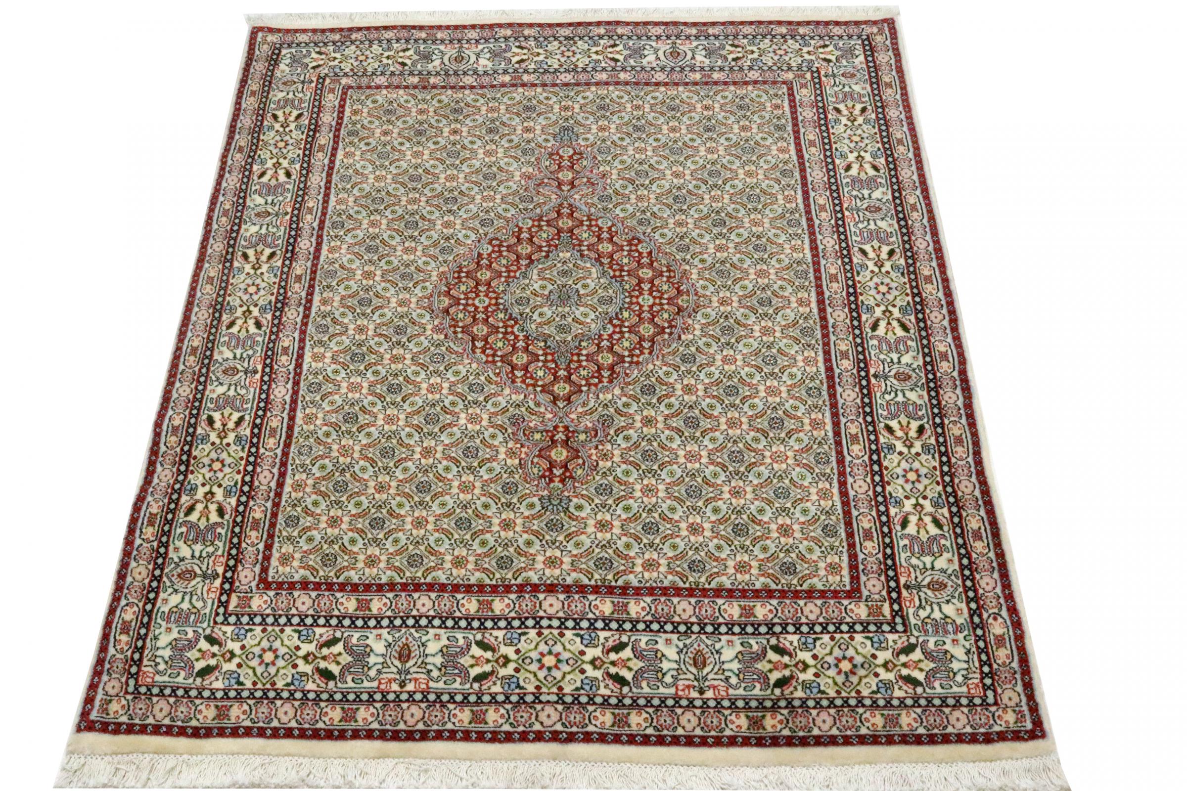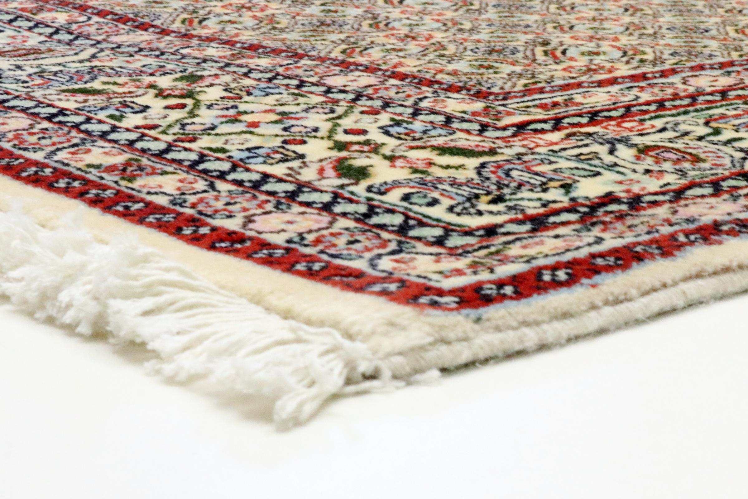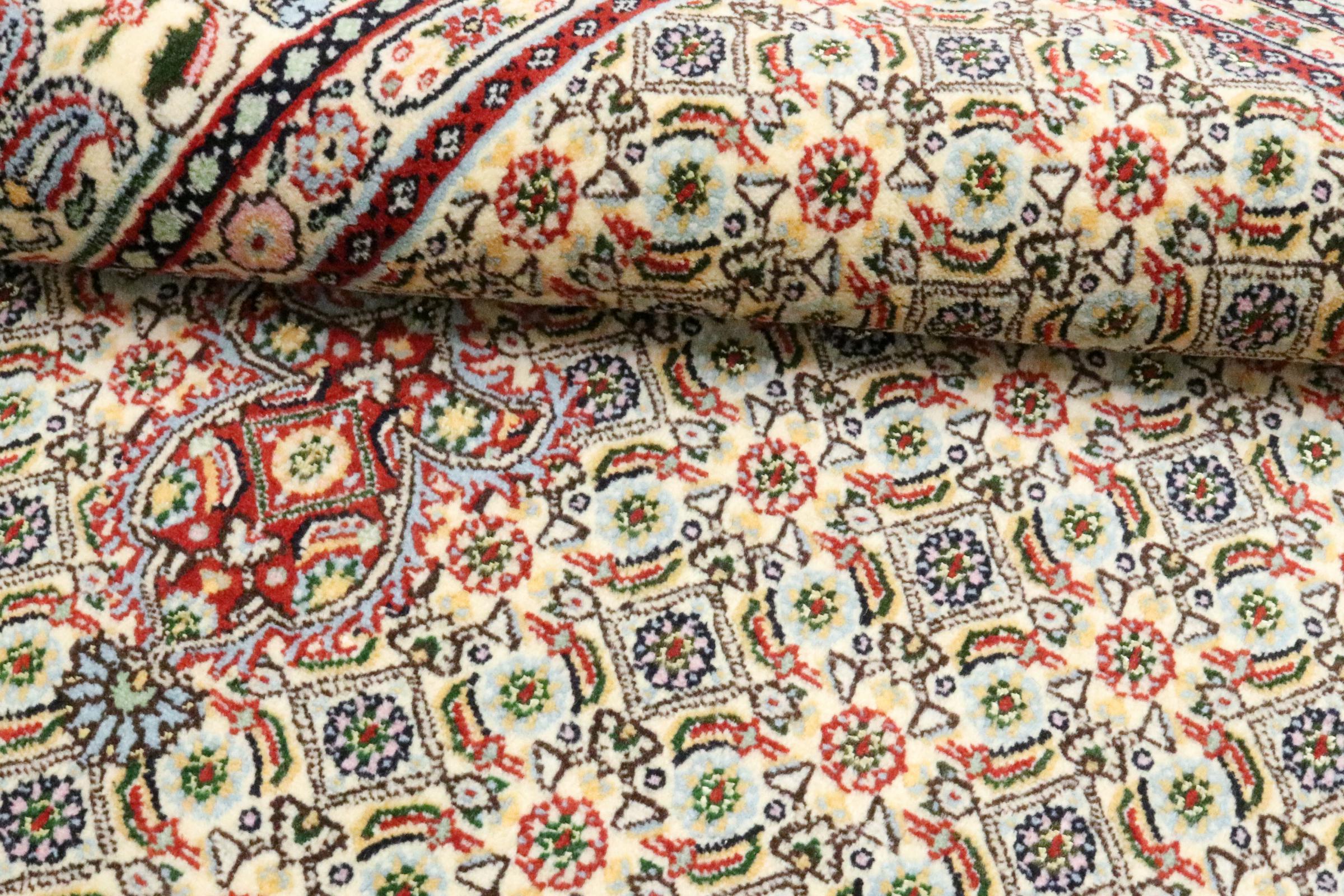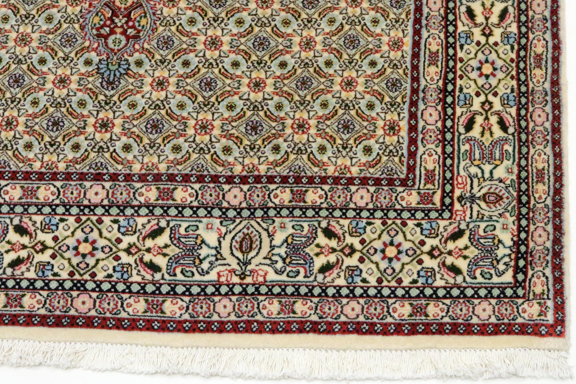 Este tapete de Moud, uma cidade situada 300 km a sul de Mashhad, impressiona à primeira vista. O padrão típico Herati ou desenho de jardim é apreciado por conhecedores e amantes de tapetes persas genuínos. Se procura um tapete feito à mão de excelente qualidade com um design muito distinto e caraterístico, está absolutamente certo com este tipo de tapete.