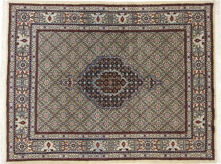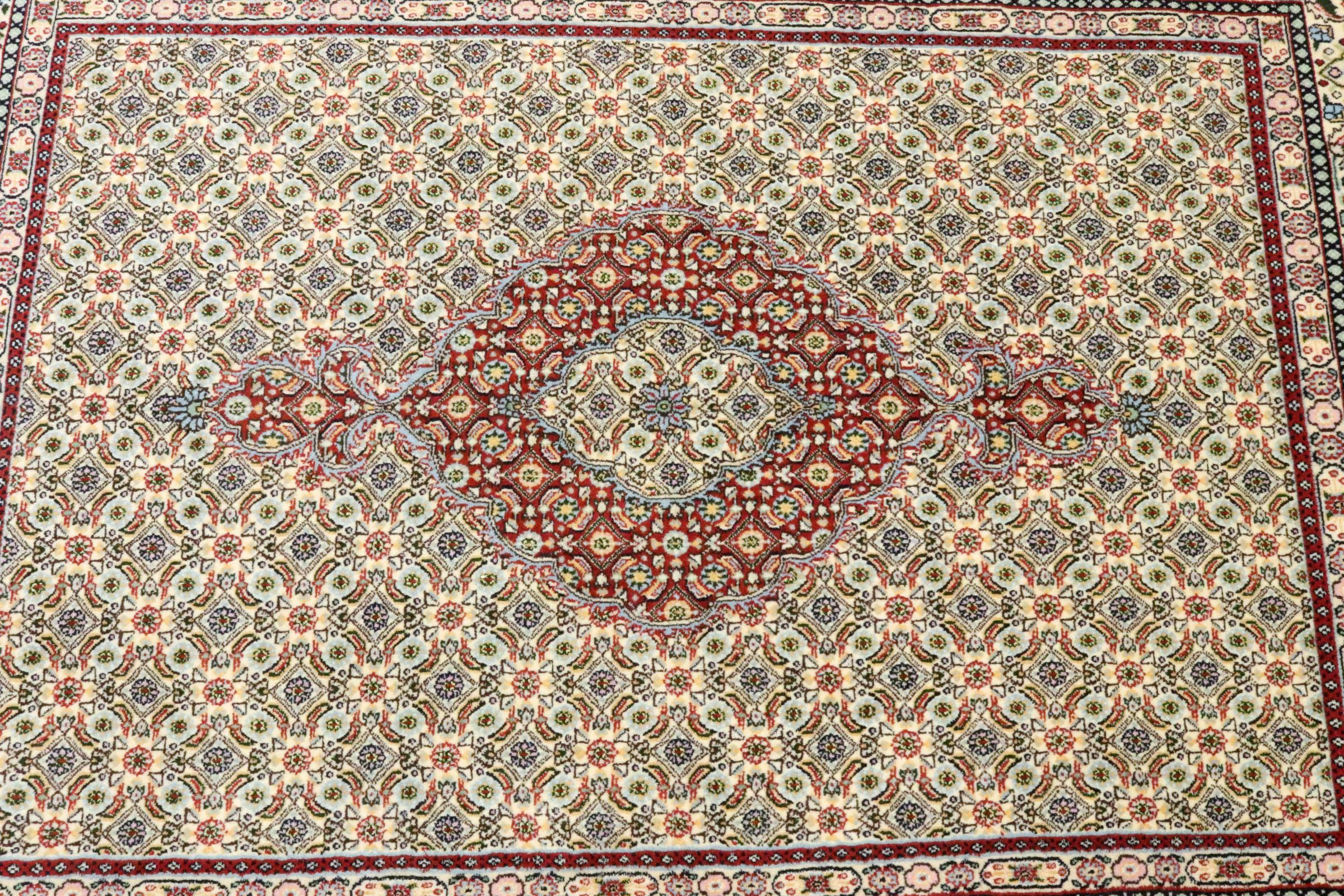 Nº do Tapete: 111152009732056 Tamanho: 6'3"x4'7" ft Espessura: aproximadamente 0.47 in Nós: 203 - 226 / Polegada quadrada Processamento: Atado à mão Veludo: Lã tecida à mão Urdidura: Algodão Origem: Pérsia / Iran Idade: Novo Peso: aproximadamente 20 lb Em armazém: Único - Apenas 1 em stock