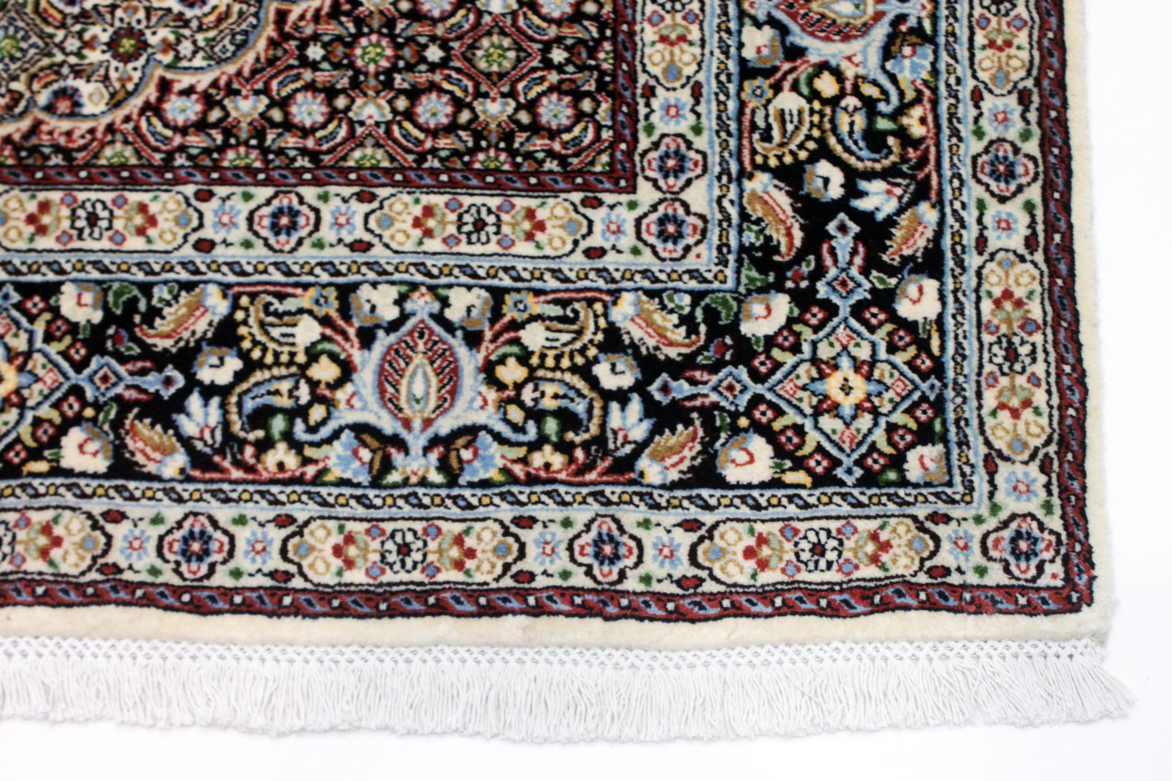 Este tapete de Moud, uma cidade situada 300 km a sul de Mashhad, impressiona à primeira vista. O padrão típico Herati ou desenho de jardim é apreciado por conhecedores e amantes de tapetes persas genuínos. Se procura um tapete feito à mão de excelente qualidade com um design muito distinto e caraterístico, está absolutamente certo com este tipo de tapete.