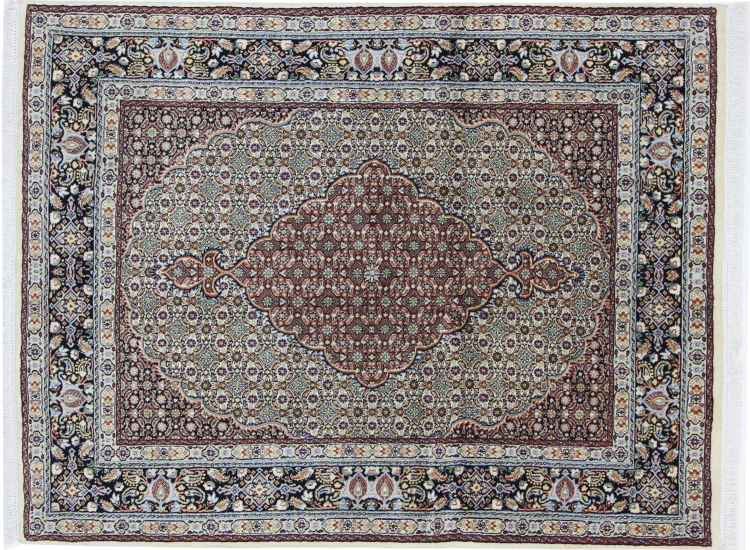 Nº do Tapete: 11185900619727 Tamanho: 191x144 cm Espessura: aproximadamente 12 mm Nós: 320 000 - 350 000 / m² Processamento: Atado à mão Veludo: Lã com seda Urdidura: Algodão Origem: Pérsia / Iran Idade: Novo Peso: aproximadamente 10 kg Em armazém: Único - Apenas 1 em stock