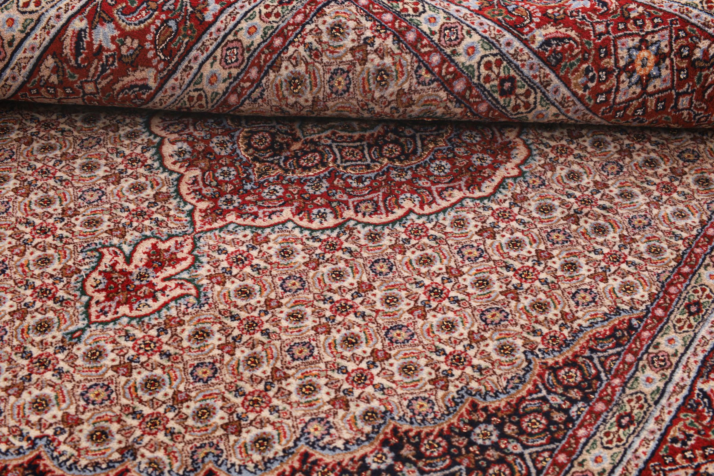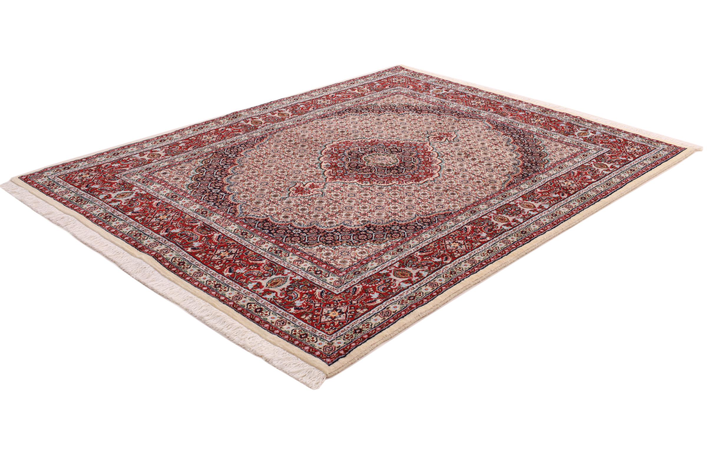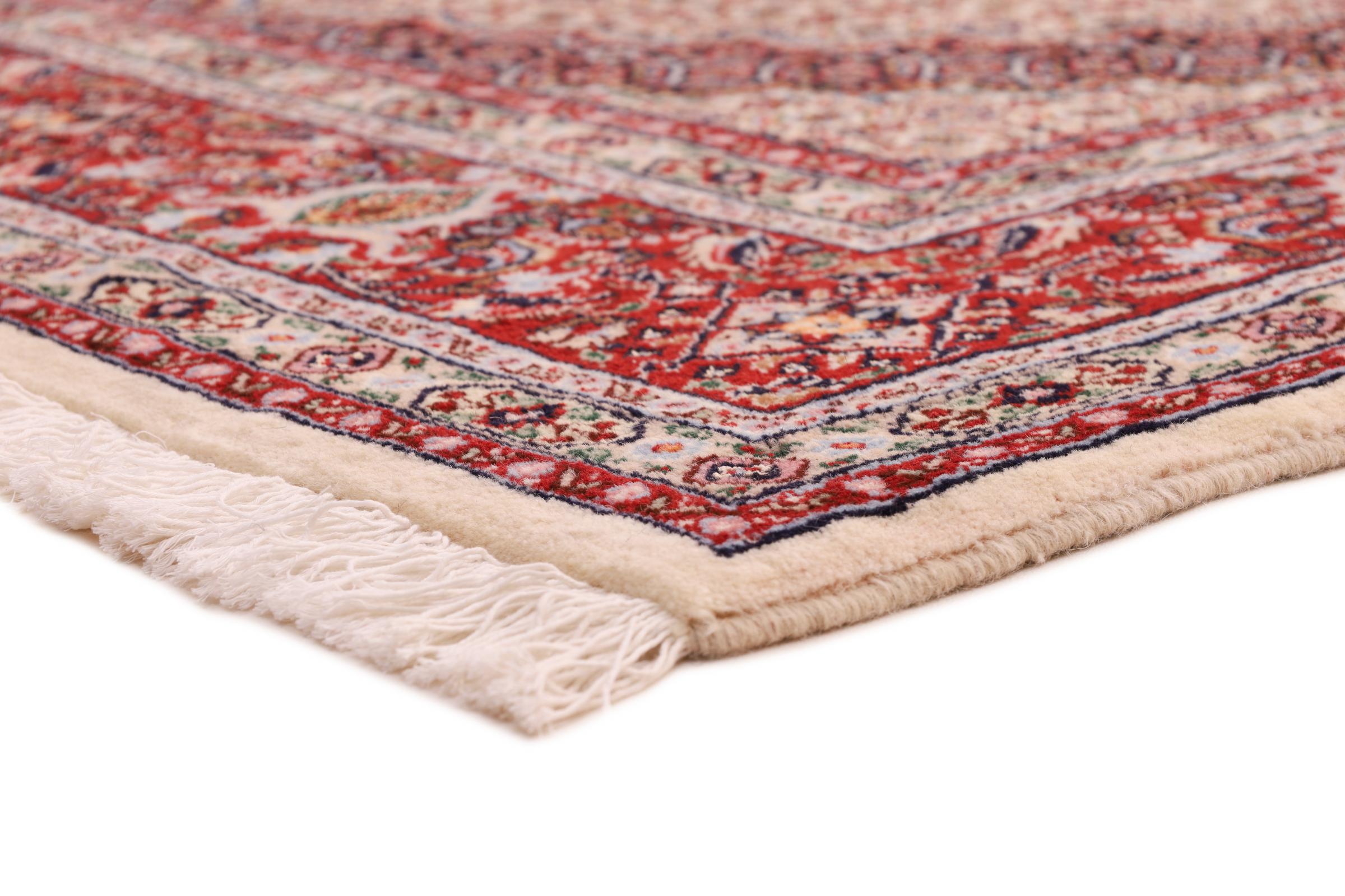 Este tapete de Moud, uma cidade situada 300 km a sul de Mashhad, impressiona à primeira vista. O padrão típico Herati ou desenho de jardim é apreciado por conhecedores e amantes de tapetes persas genuínos. Se procura um tapete feito à mão de excelente qualidade com um design muito distinto e caraterístico, está absolutamente certo com este tipo de tapete.