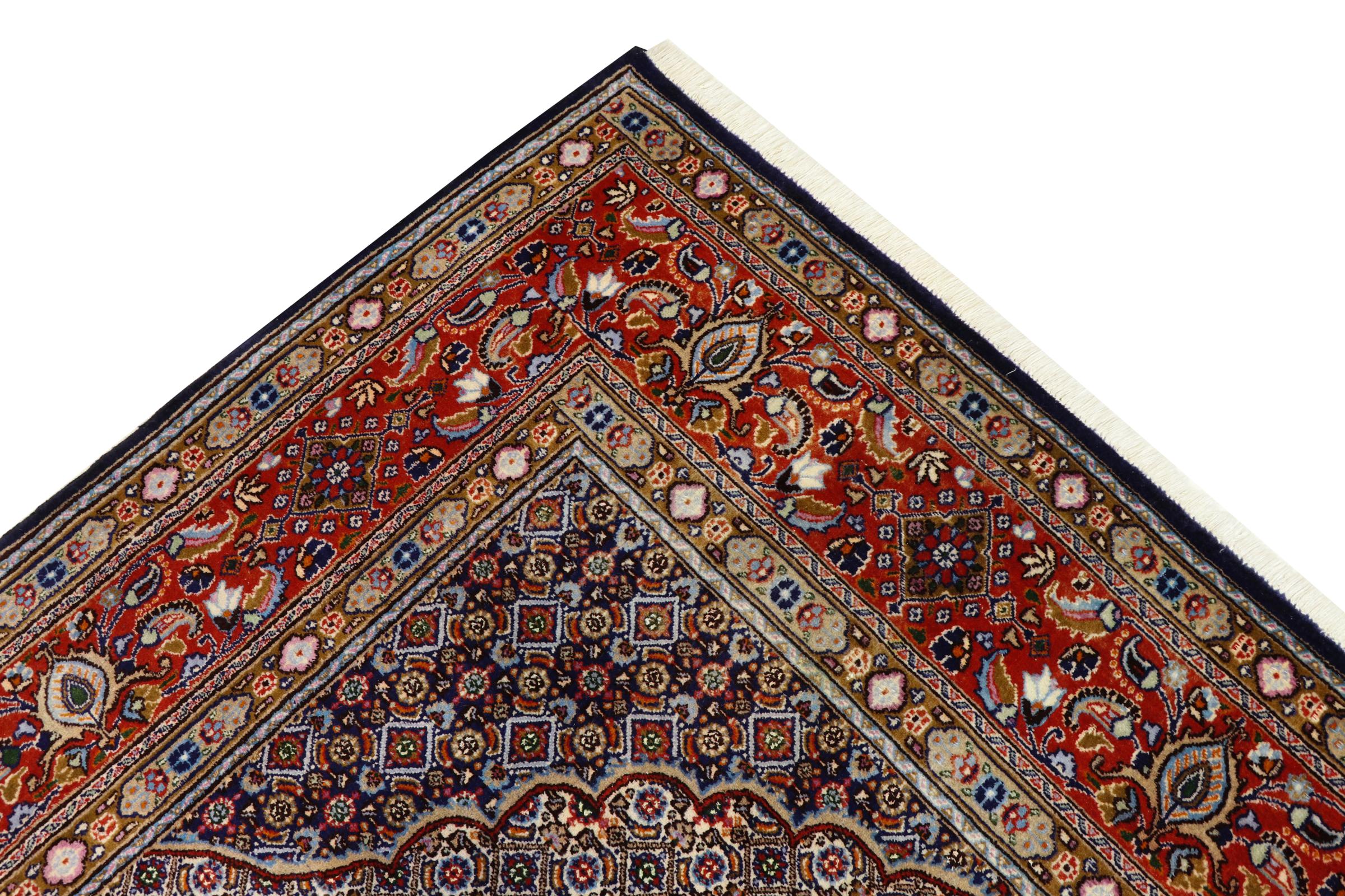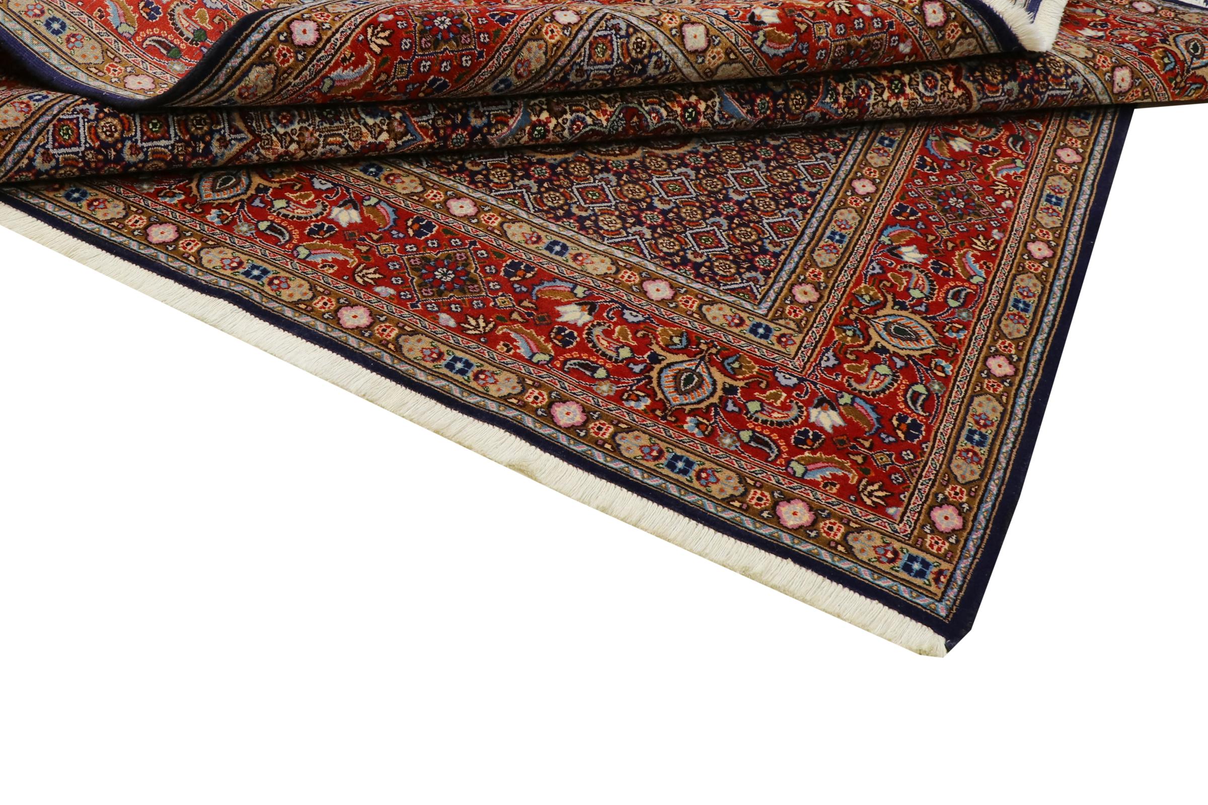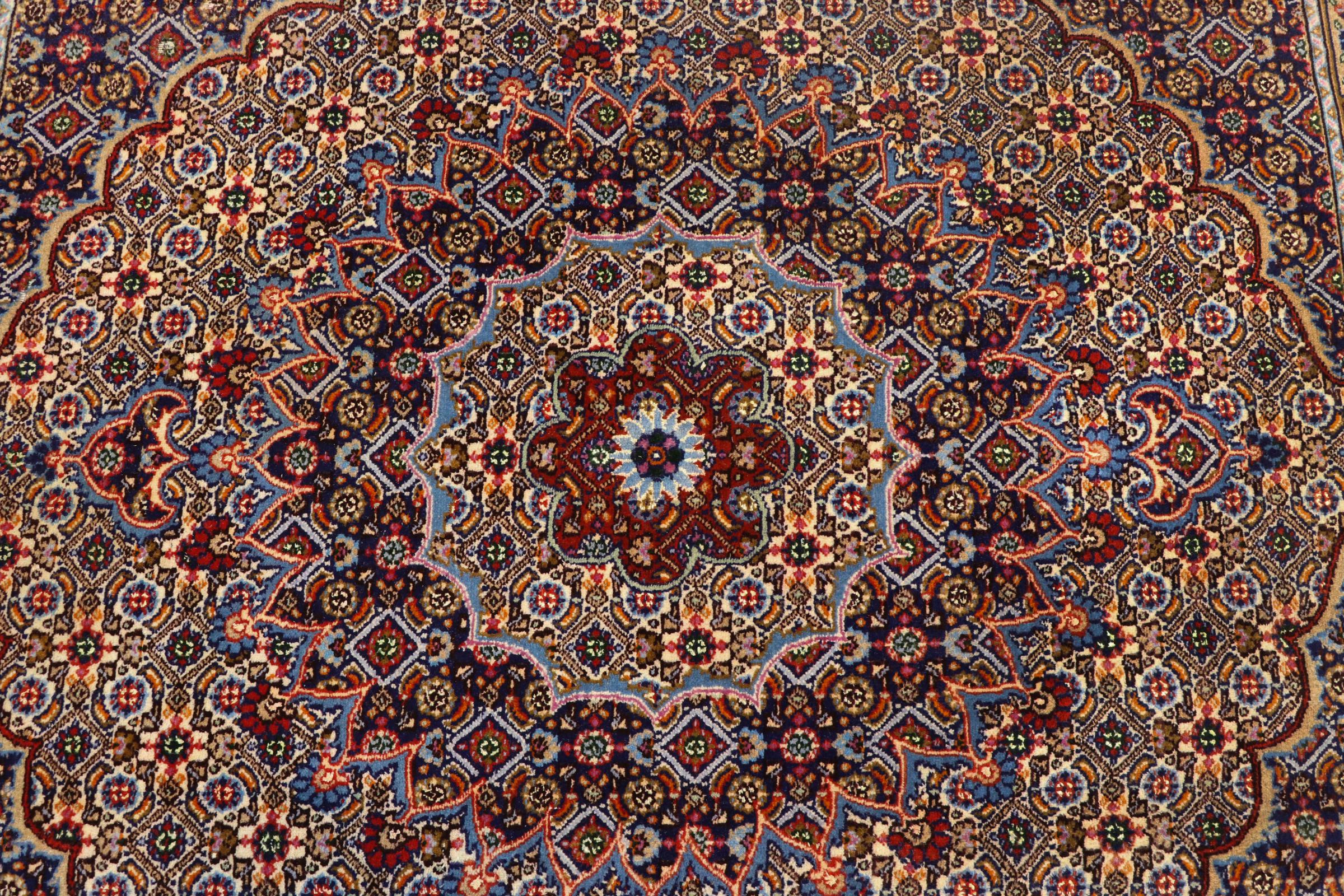 Este tapete de Moud, uma cidade situada 300 km a sul de Mashhad, impressiona à primeira vista. O padrão típico Herati ou desenho de jardim é apreciado por conhecedores e amantes de tapetes persas genuínos. Se procura um tapete feito à mão de excelente qualidade com um design muito distinto e caraterístico, está absolutamente certo com este tipo de tapete.
