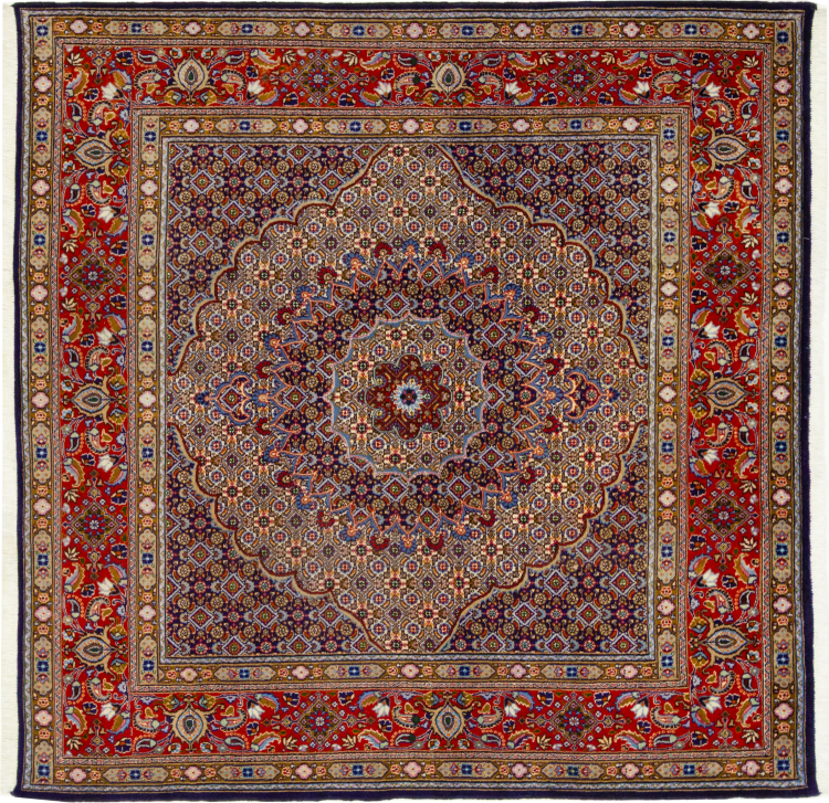 Nº do Tapete: 30384100982669 Tamanho: 196x195 cm Espessura: aproximadamente 5 mm Nós: 200 000 - 250 000 / m² Processamento: Atado à mão Veludo: Lã com seda Urdidura: Algodão Origem: Pérsia / Iran Idade: Novo Peso: aproximadamente 14 kg Em armazém: Único - Apenas 1 em stock