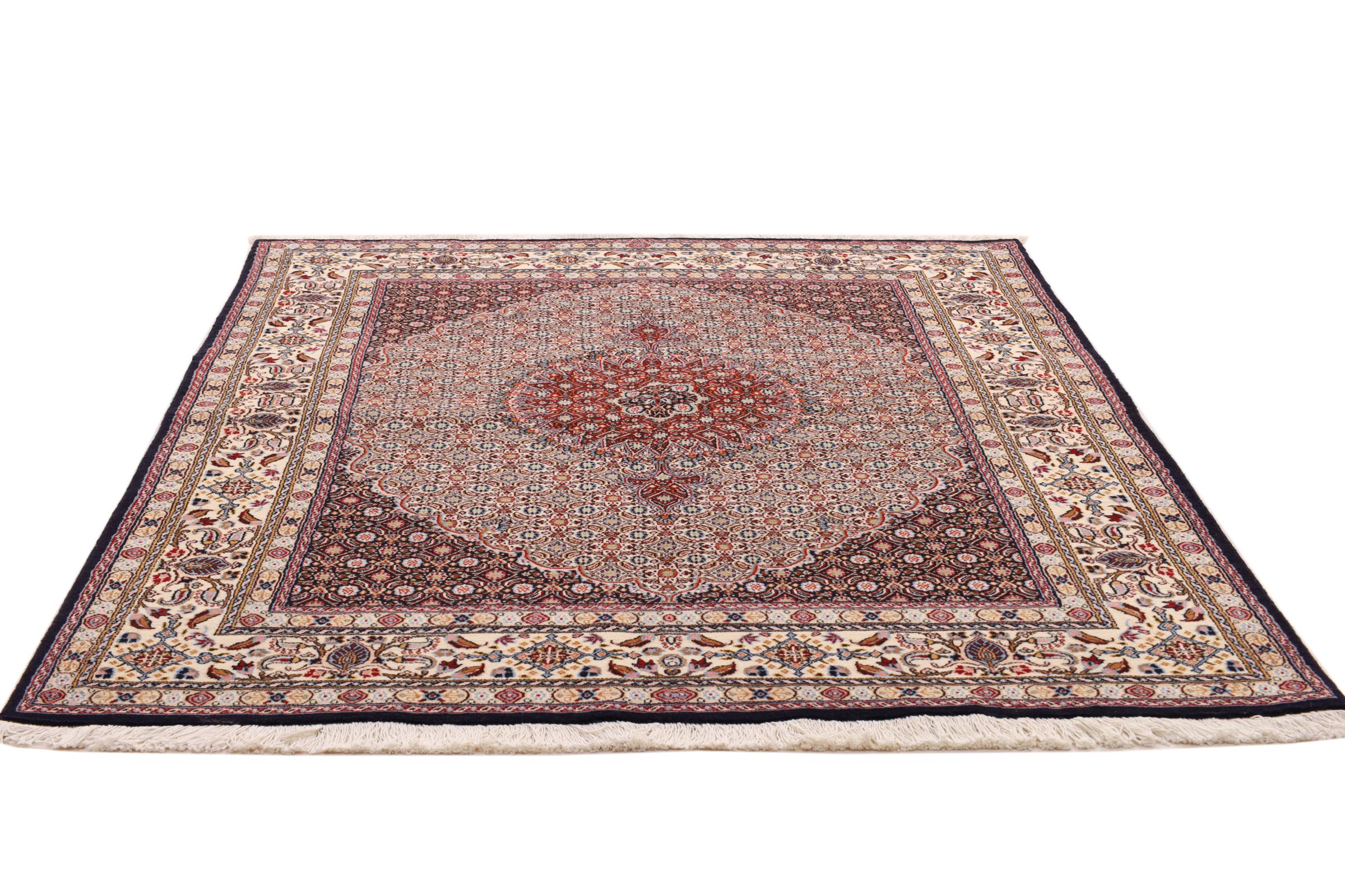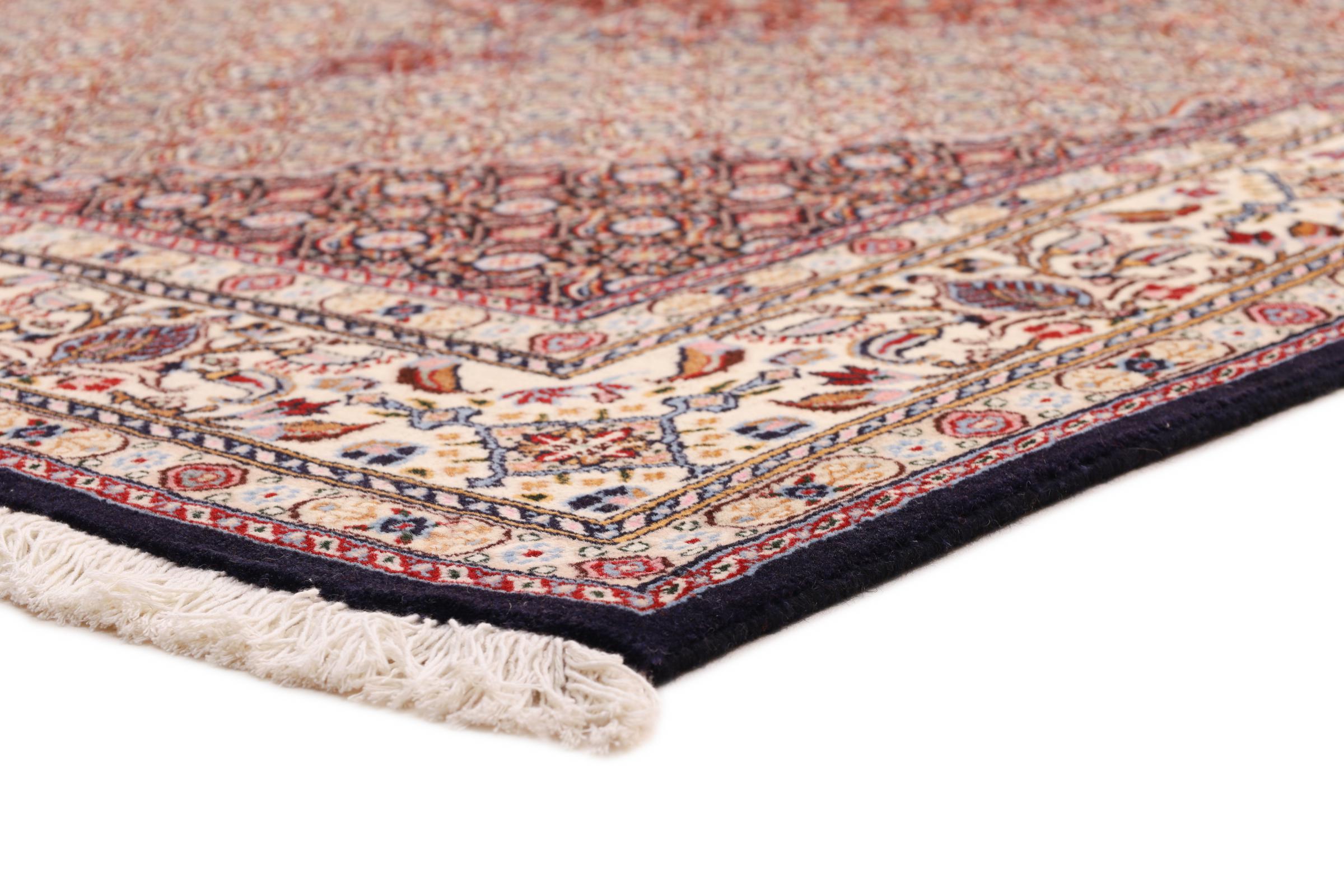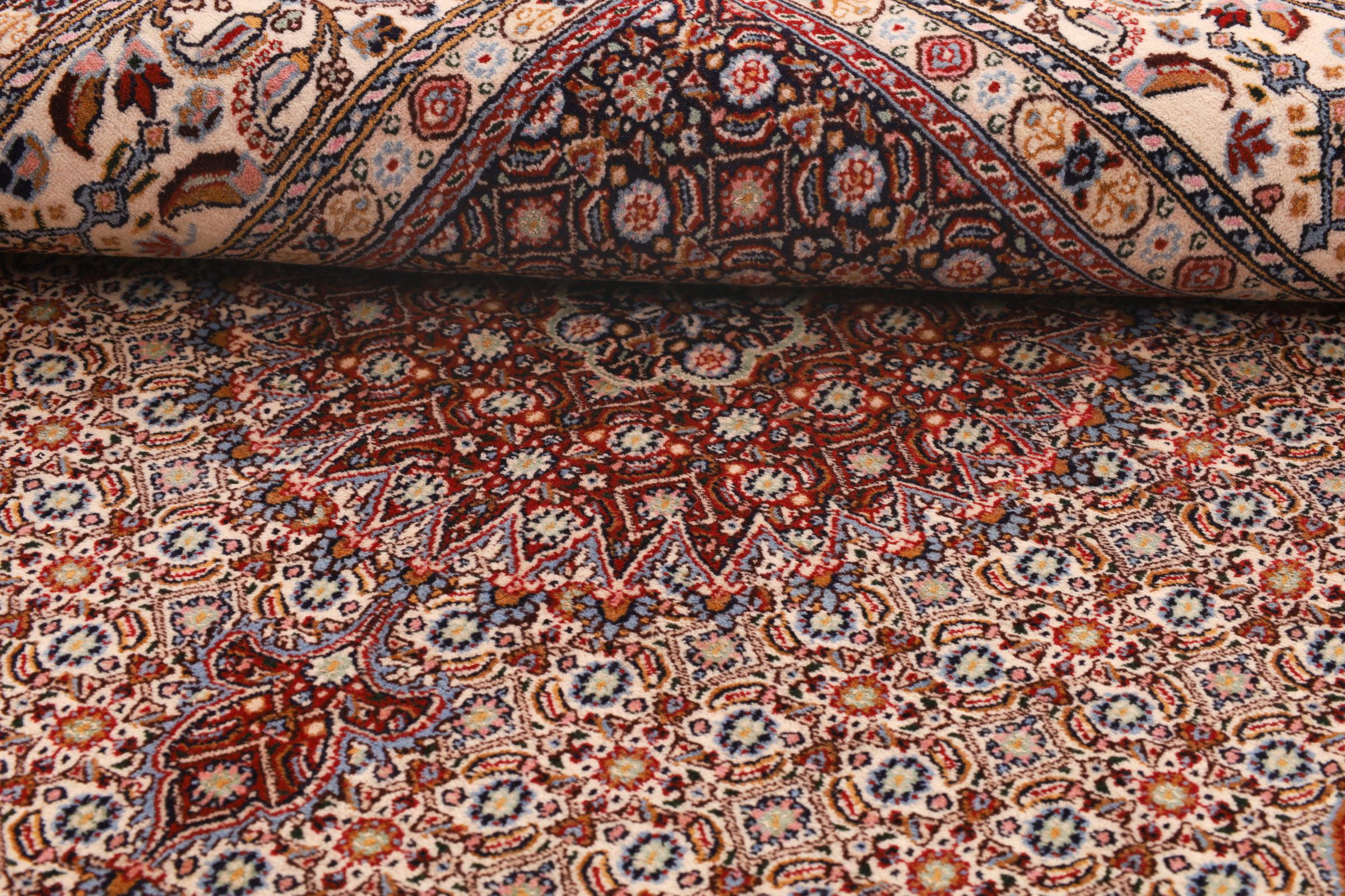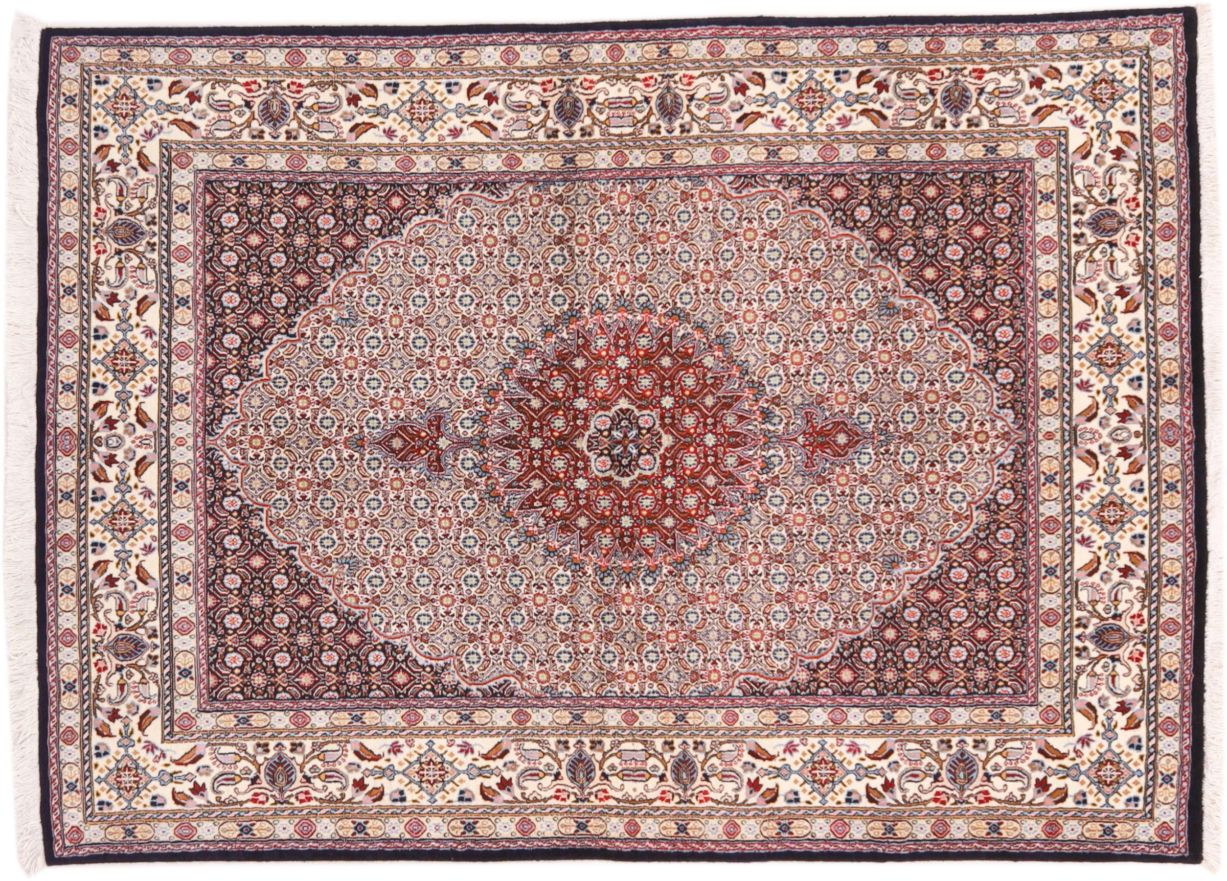 Este tapete de Moud, uma cidade situada 300 km a sul de Mashhad, impressiona à primeira vista. O padrão típico Herati ou desenho de jardim é apreciado por conhecedores e amantes de tapetes persas genuínos. Se procura um tapete feito à mão de excelente qualidade com um design muito distinto e caraterístico, está absolutamente certo com este tipo de tapete.
