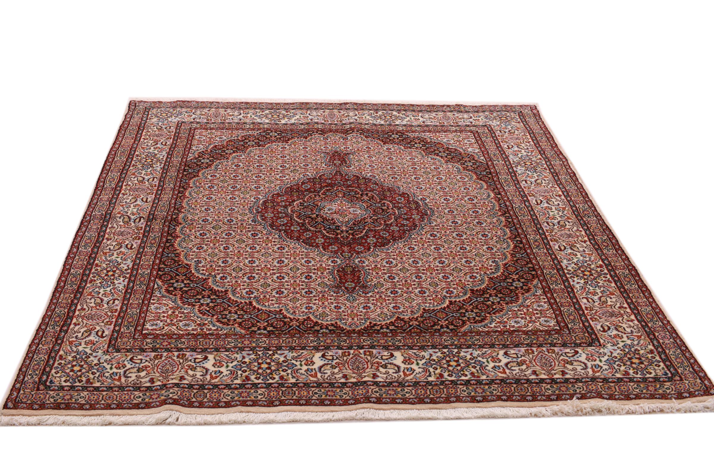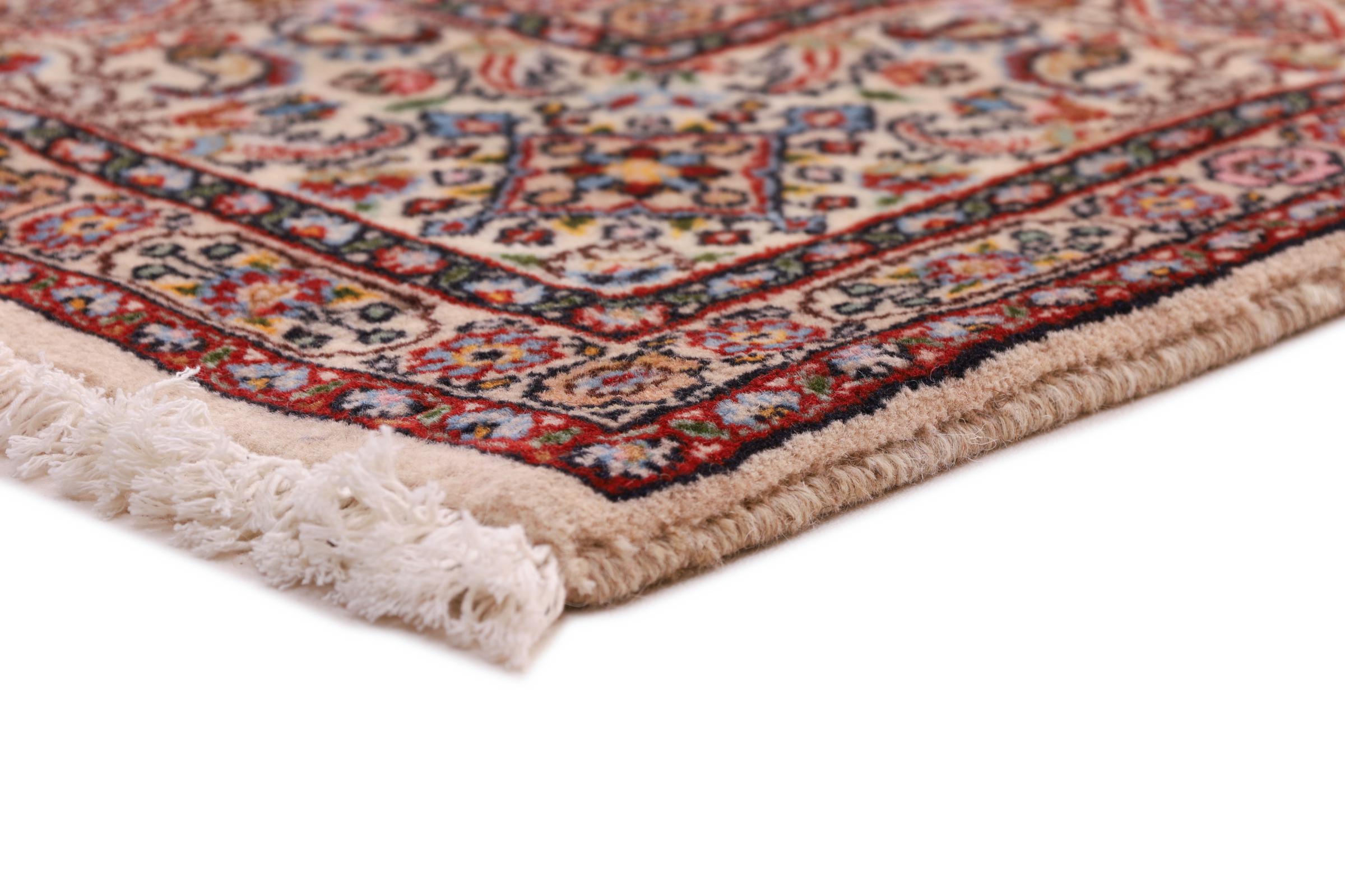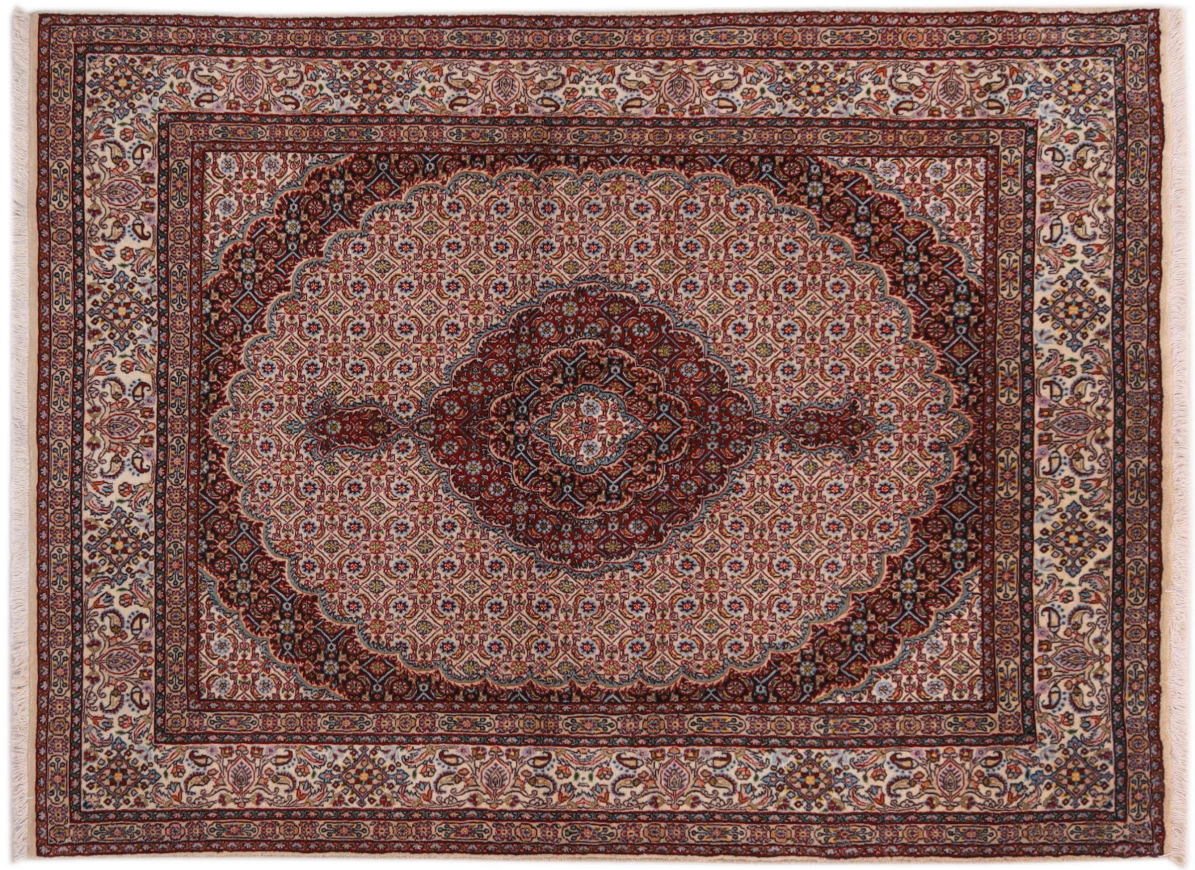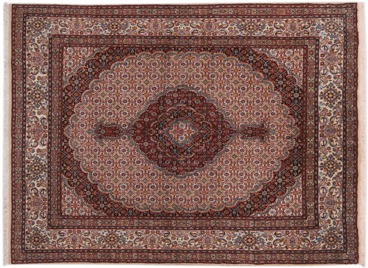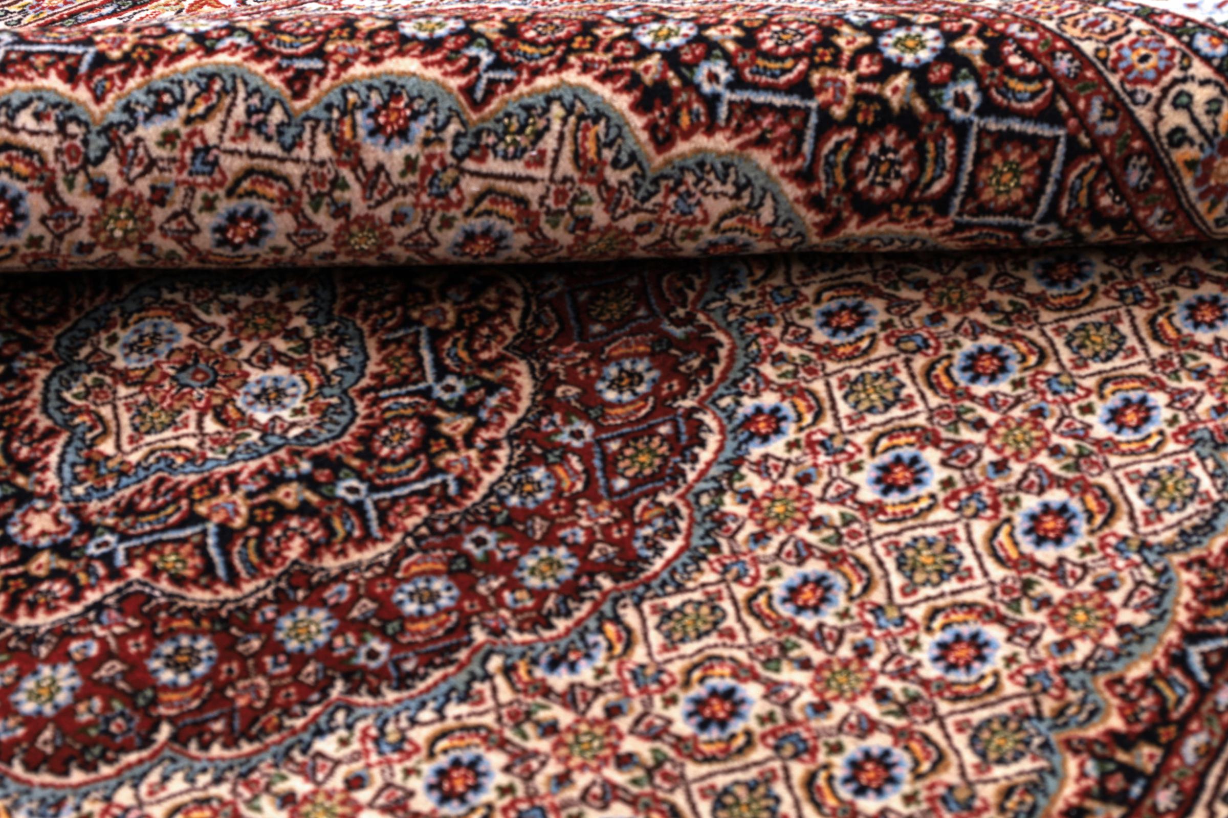 Este tapete de Moud, uma cidade situada 300 km a sul de Mashhad, impressiona à primeira vista. O padrão típico Herati ou desenho de jardim é apreciado por conhecedores e amantes de tapetes persas genuínos. Se procura um tapete feito à mão de excelente qualidade com um design muito distinto e caraterístico, está absolutamente certo com este tipo de tapete.