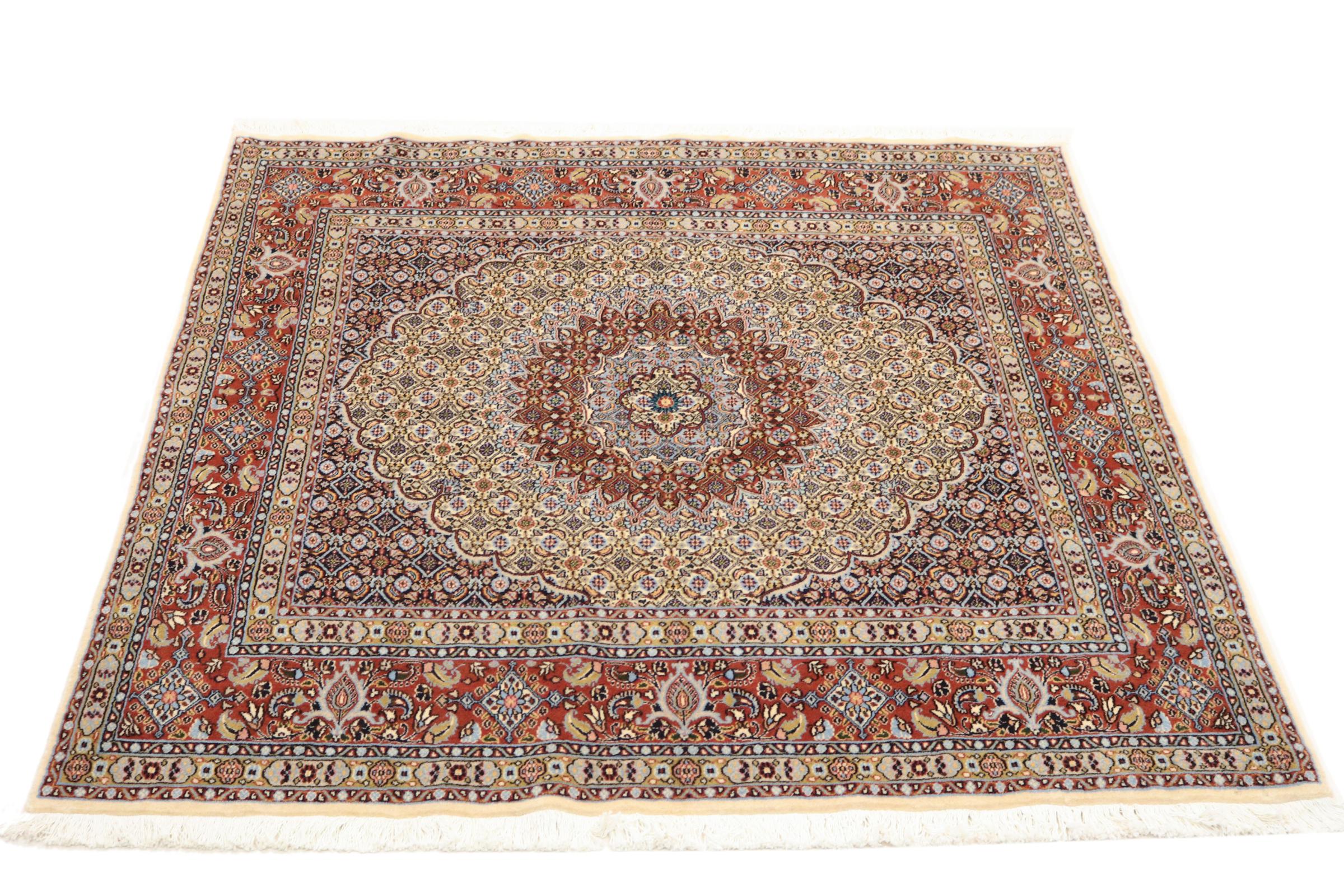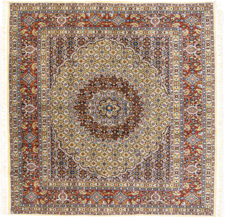 Nº do Tapete: 191901005341129 Tamanho: 200x196 cm Espessura: aproximadamente 12 mm Nós: 320 000 - 360 000 / m² Processamento: Atado à mão Veludo: Lã tecida à mão Urdidura: Algodão Origem: Pérsia / Iran Idade: Novo Peso: aproximadamente 14 kg Em armazém: Único - Apenas 1 em stock