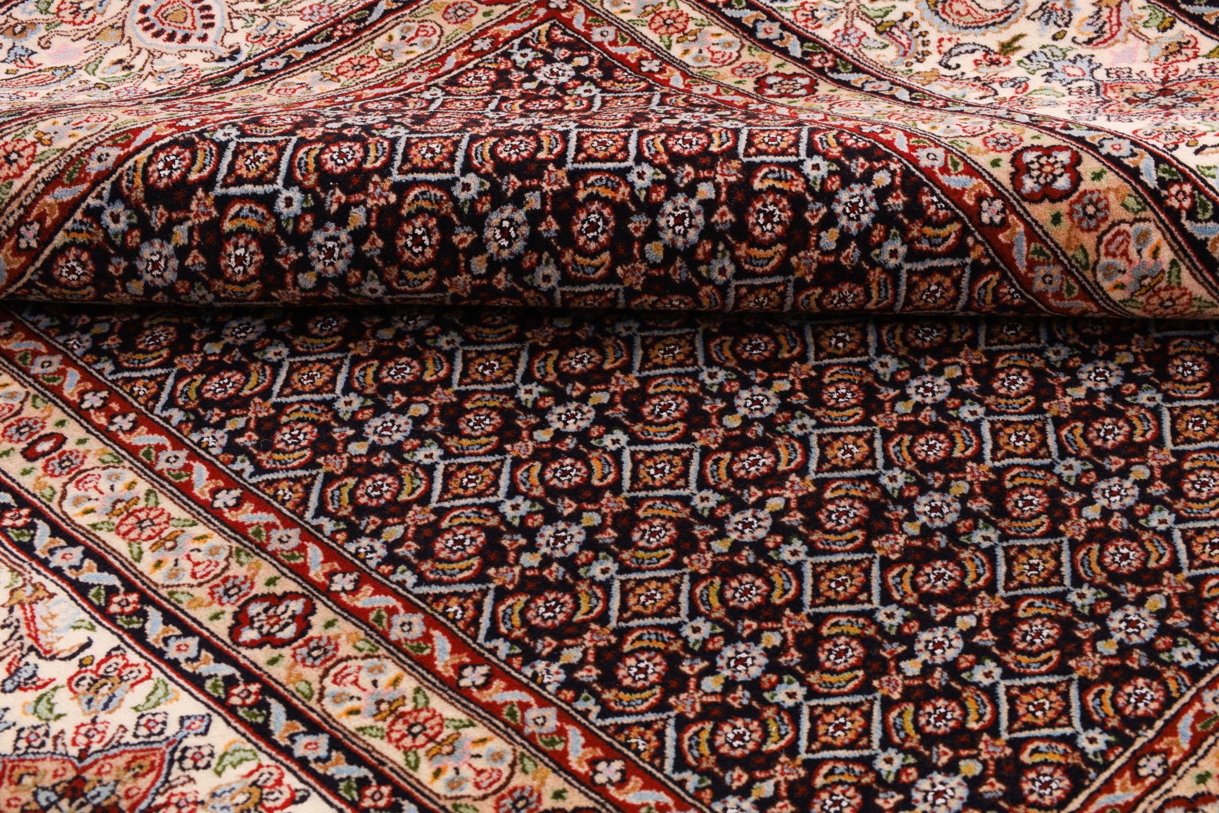 Este tapete de Moud, uma cidade situada 300 km a sul de Mashhad, impressiona à primeira vista. O padrão típico Herati ou desenho de jardim é apreciado por conhecedores e amantes de tapetes persas genuínos. Se procura um tapete feito à mão de excelente qualidade com um design muito distinto e caraterístico, está absolutamente certo com este tipo de tapete.