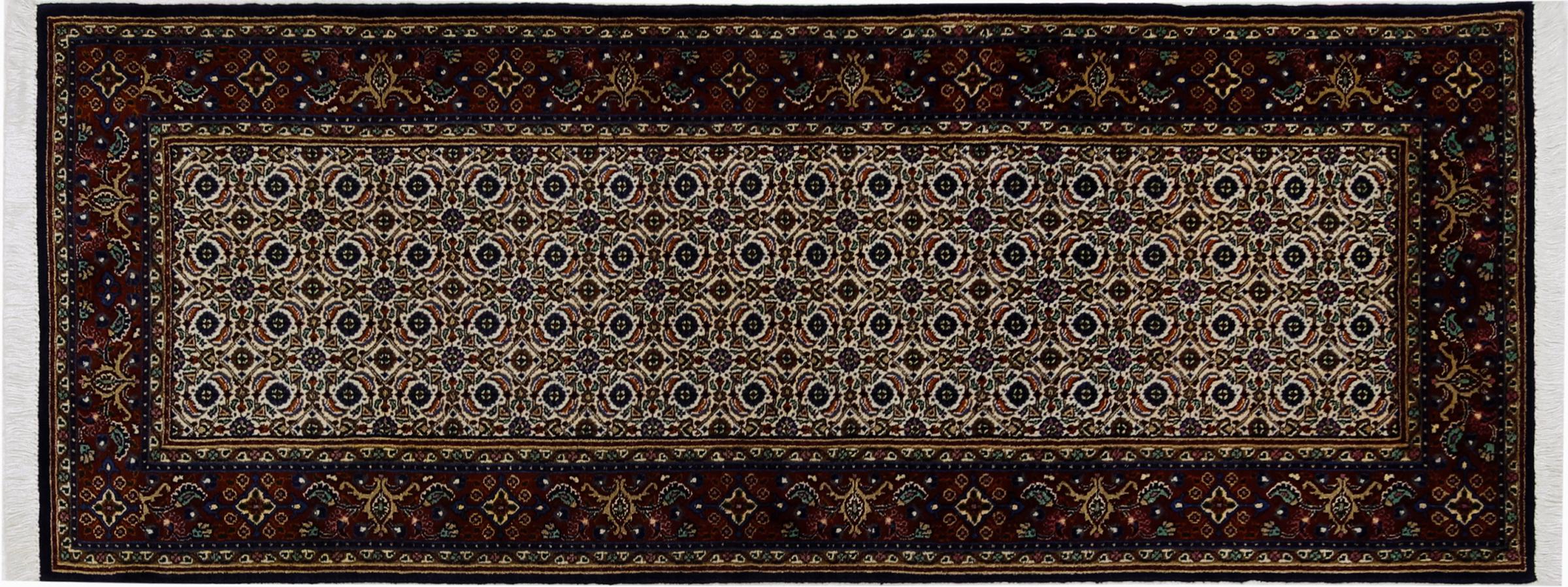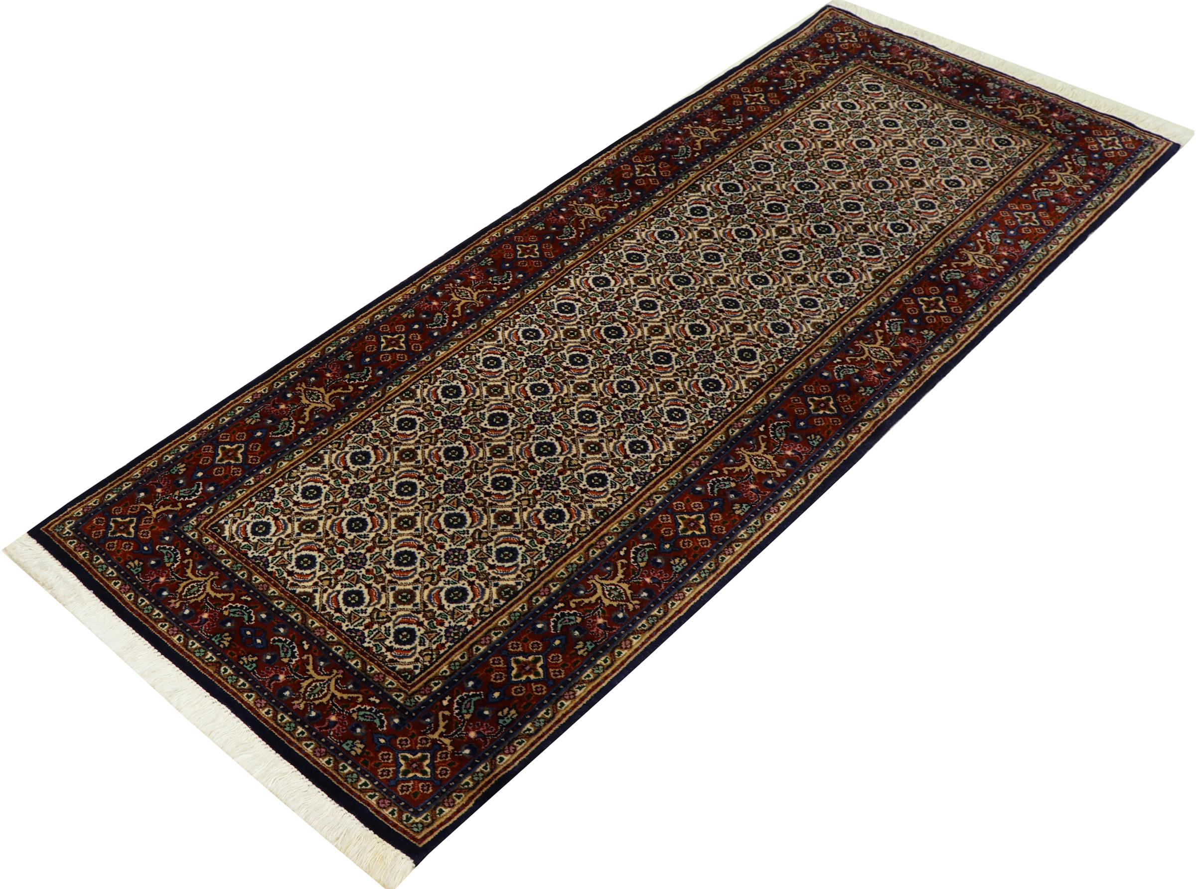 Nº do Tapete: 304009003596439 Tamanho: 201x77 cm Espessura: aproximadamente 5 mm Nós: 320 000 - 360 000 / m² Processamento: Atado à mão Veludo: Lã com seda Urdidura: Algodão Origem: Pérsia / Iran Idade: Novo Peso: aproximadamente 5 kg Em armazém: Único - Apenas 1 em stock