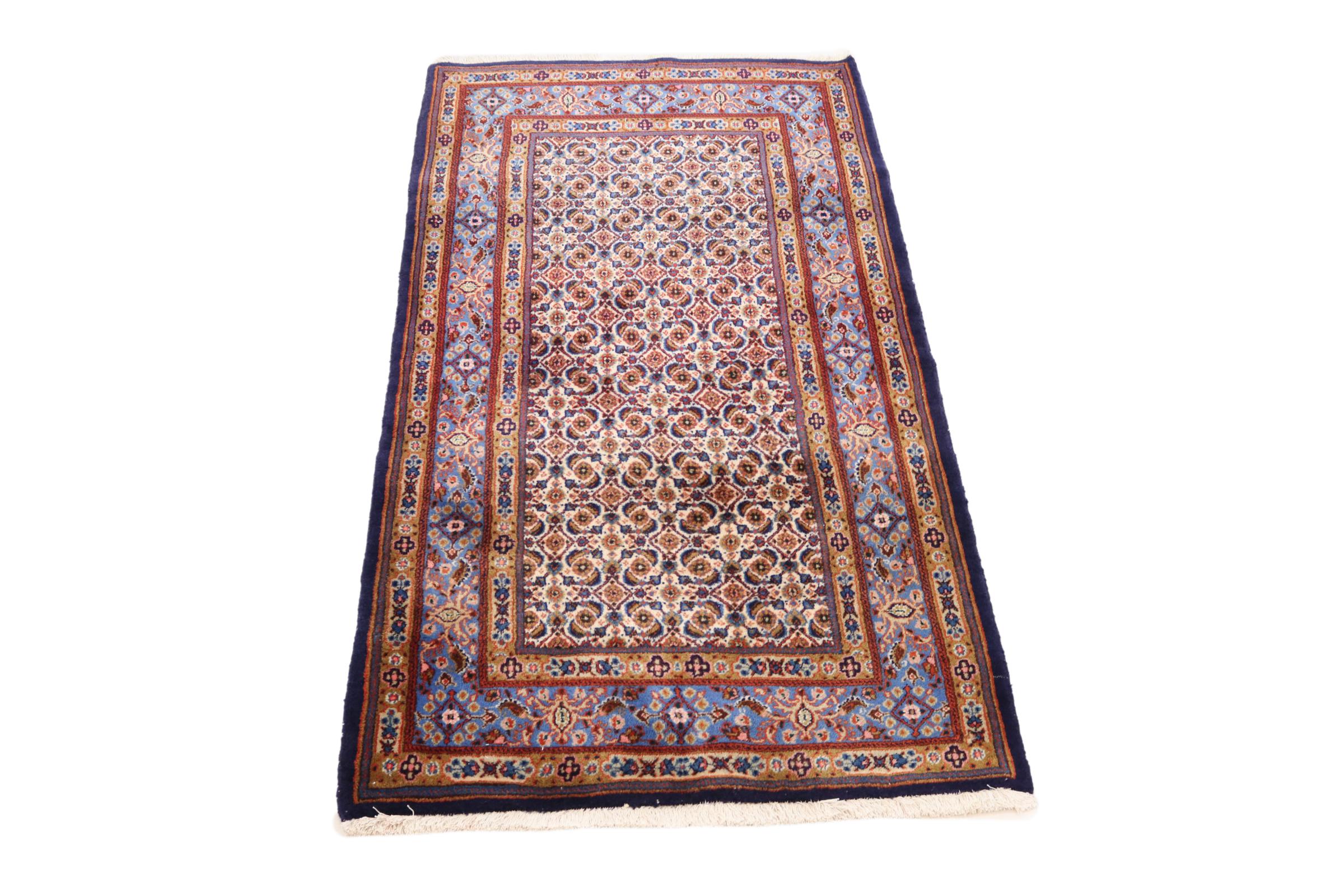 Moud está no Irão, a sul de Mashhad. Como cidade da antiga Pérsia, a sua tradição de nó de tapete remonta a muitos séculos, se não milhares de anos. Os tapetes de Moud têm uma excelente reputação. São feitos com o famoso nó persa. Tipicamente, os tapetes Persas Moud têm um padrão de cobertura total. O padrão Jardim com motivos dos jardins persas ou o padrão Herati.