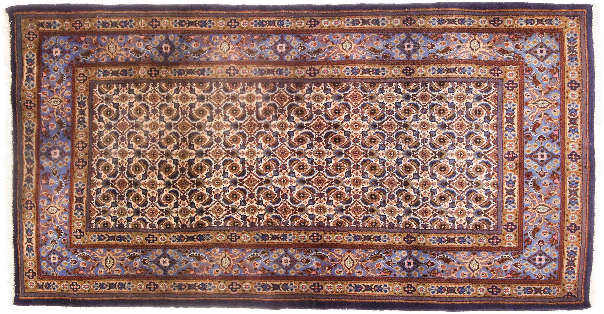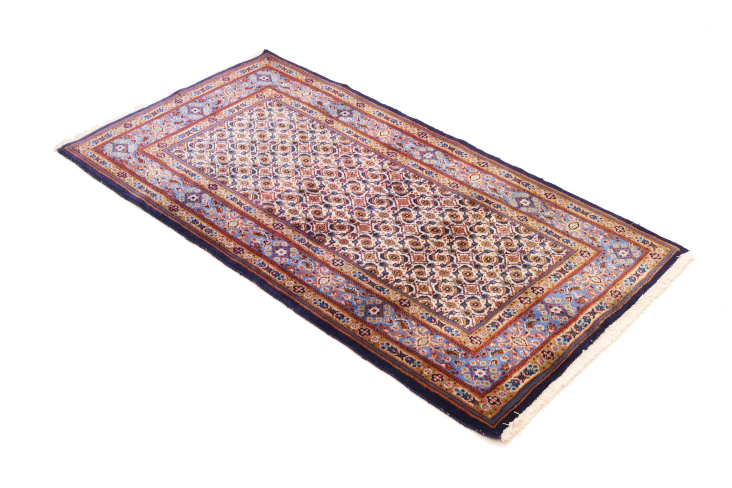 Nº do Tapete: 192260001169672 Tamanho: 204x108 cm Espessura: aproximadamente 12 mm Nós: 320 000 - 360 000 / m² Processamento: Atado à mão Veludo: Lã tecida à mão Urdidura: Algodão Origem: Pérsia / Iran Idade: Novo Peso: aproximadamente 8 kg Em armazém: Único - Apenas 1 em stock
