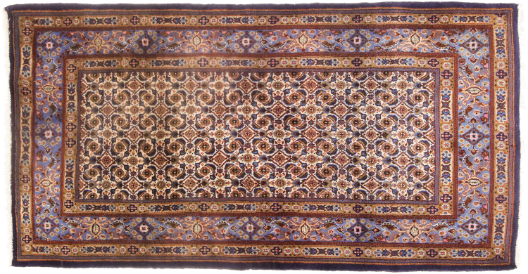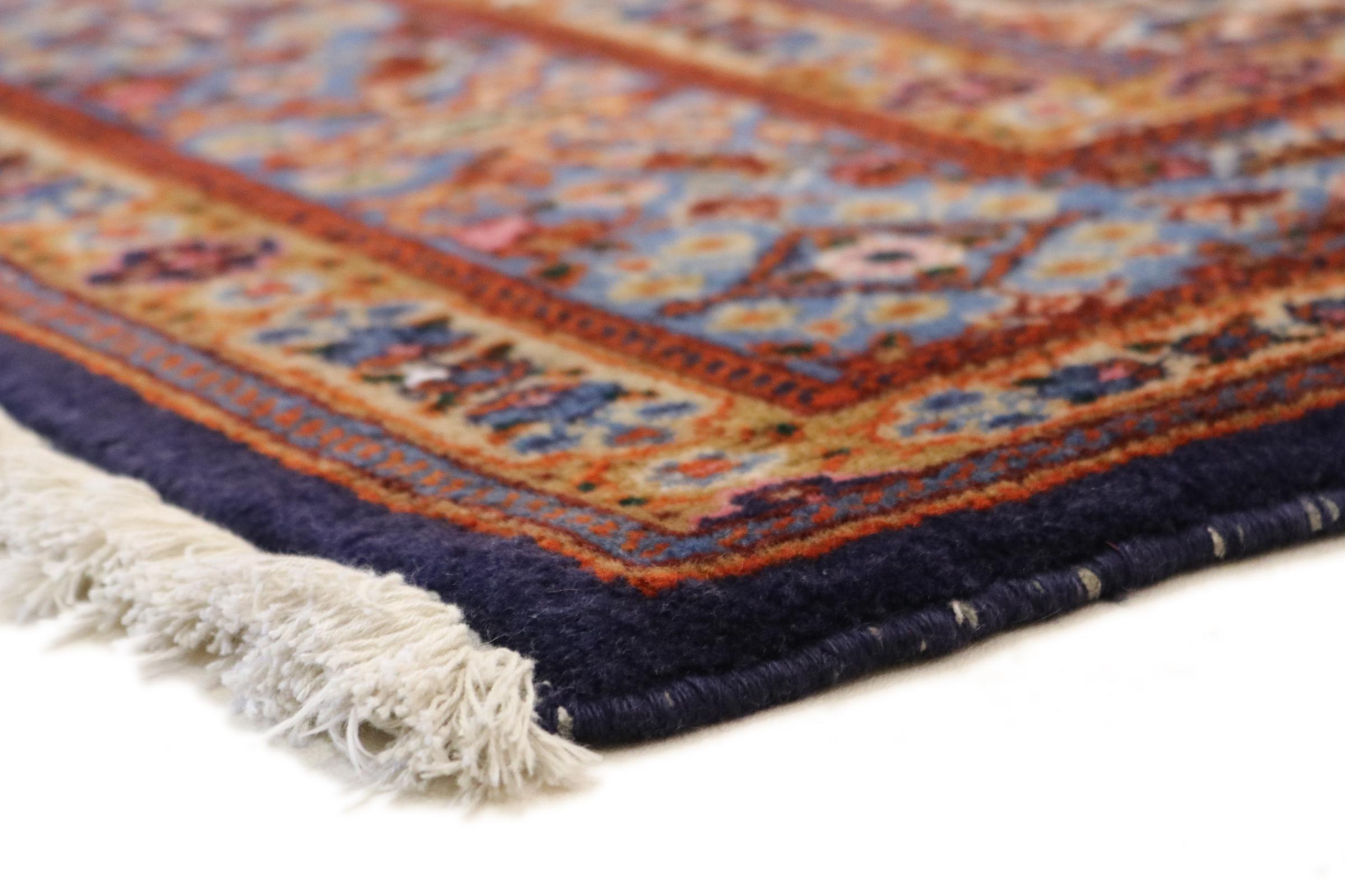 Este tapete de Moud, uma cidade situada 300 km a sul de Mashhad, impressiona à primeira vista. O padrão típico Herati ou desenho de jardim é apreciado por conhecedores e amantes de tapetes persas genuínos. Se procura um tapete feito à mão de excelente qualidade com um design muito distinto e caraterístico, está absolutamente certo com este tipo de tapete.