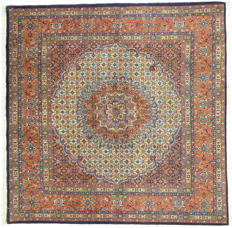 Nº do Tapete: 167923002843619 Tamanho: 204x204 cm Espessura: aproximadamente 12 mm Nós: 320 000 - 360 000 / m² Processamento: Atado à mão Veludo: Lã tecida à mão Urdidura: Algodão Origem: Pérsia / Iran Idade: Novo Peso: aproximadamente 15 kg Em armazém: Único - Apenas 1 em stock