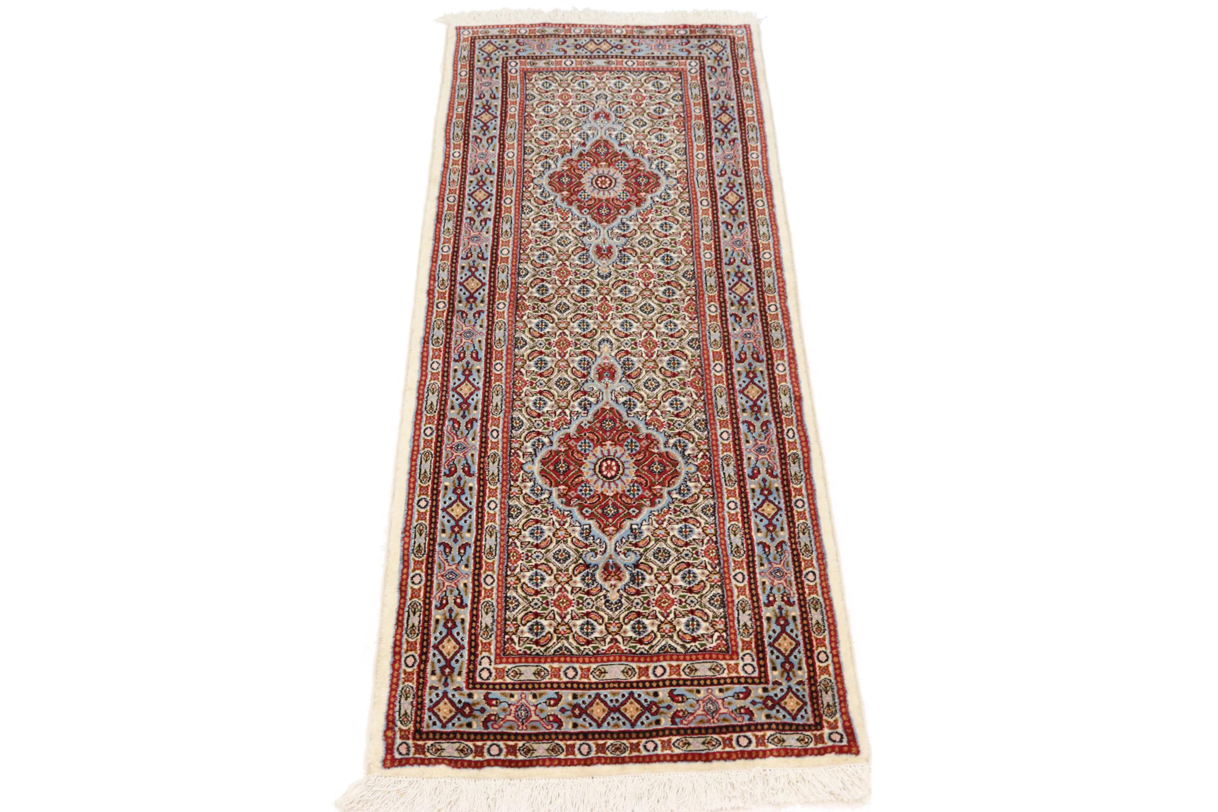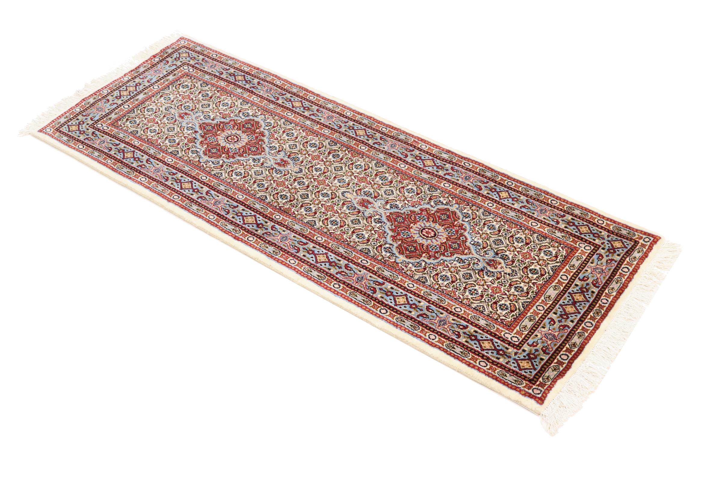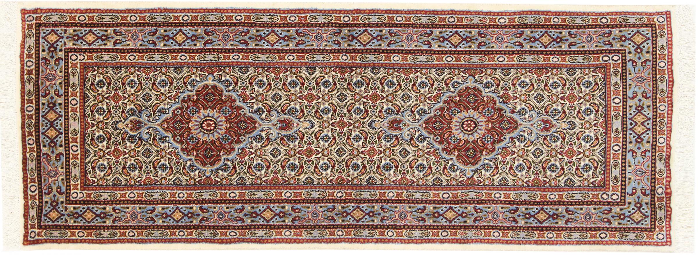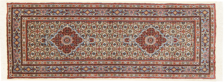 Nº do Tapete: 128526001452806 Tamanho: 204x75 cm Espessura: aproximadamente 12 mm Nós: 320 000 - 350 000 / m² Processamento: Atado à mão Veludo: Lã com seda Urdidura: Algodão Origem: Pérsia / Iran Idade: Novo Peso: aproximadamente 5 kg Em armazém: Único - Apenas 1 em stock
