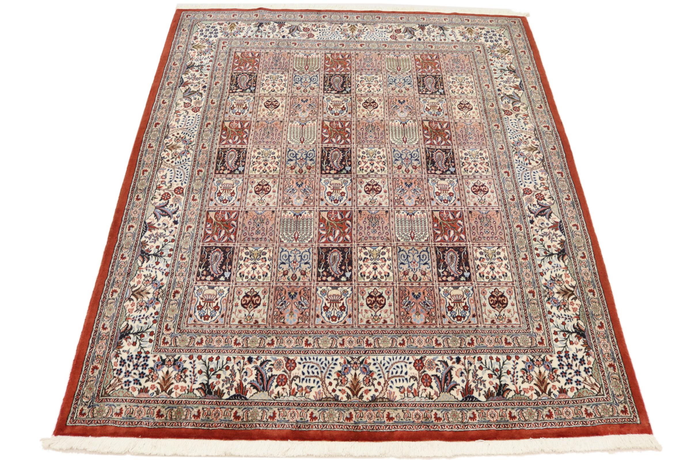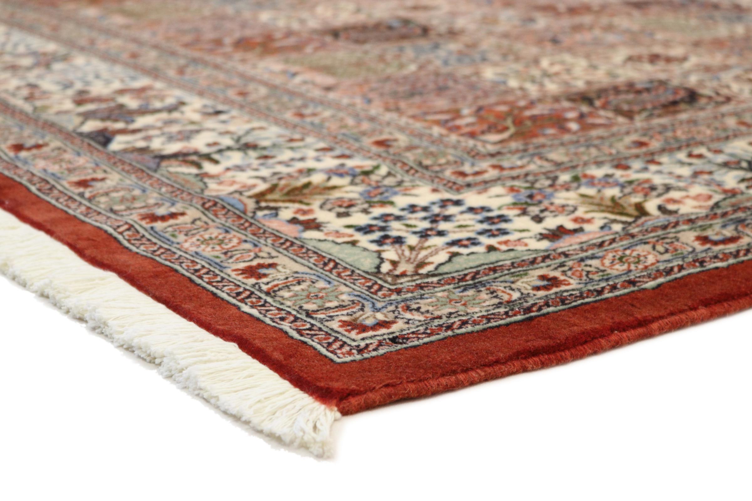 Este tapete de Moud, uma cidade situada 300 km a sul de Mashhad, impressiona à primeira vista. O padrão típico Herati ou desenho de jardim é apreciado por conhecedores e amantes de tapetes persas genuínos. Se procura um tapete feito à mão de excelente qualidade com um design muito distinto e caraterístico, está absolutamente certo com este tipo de tapete.