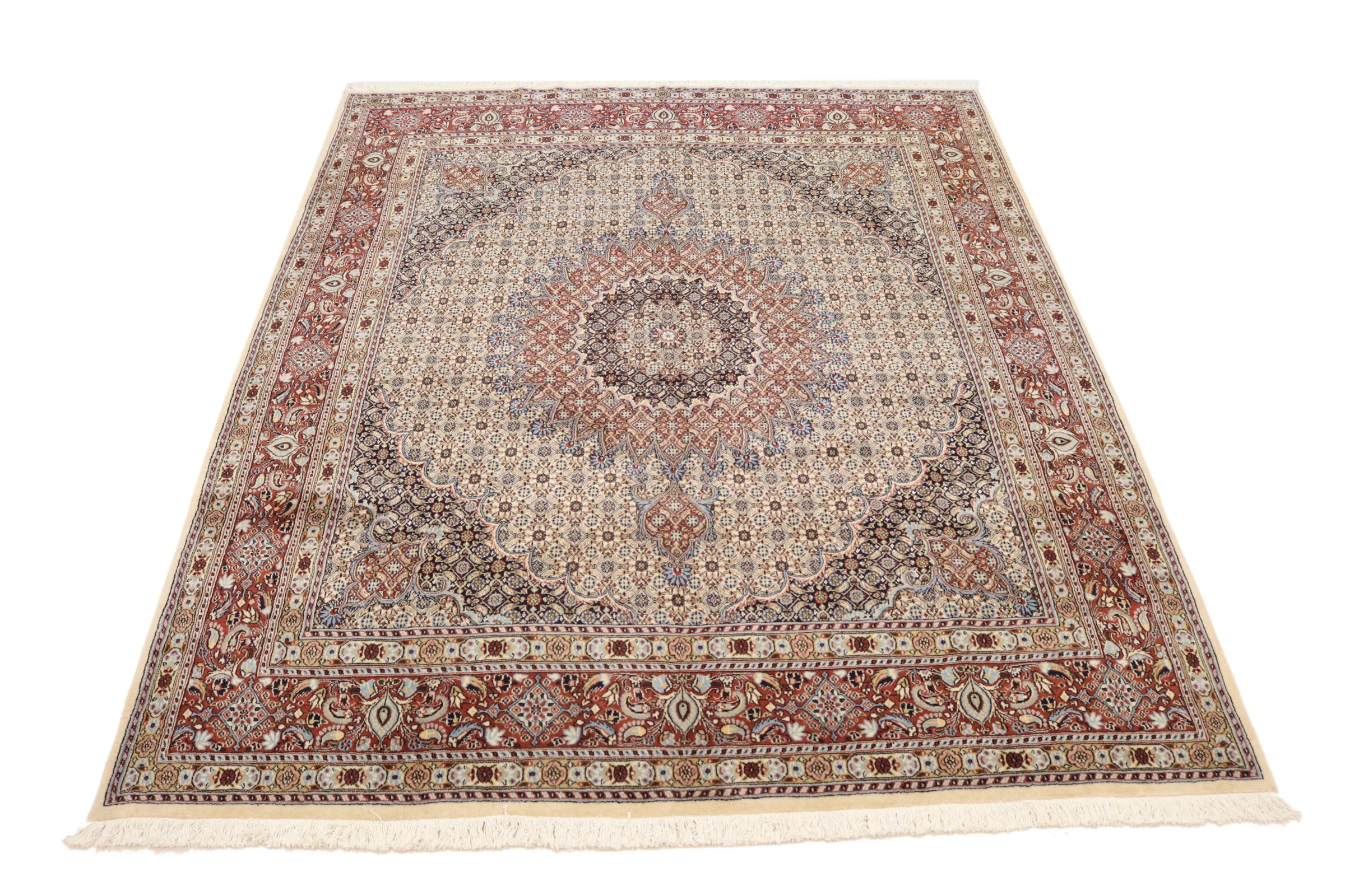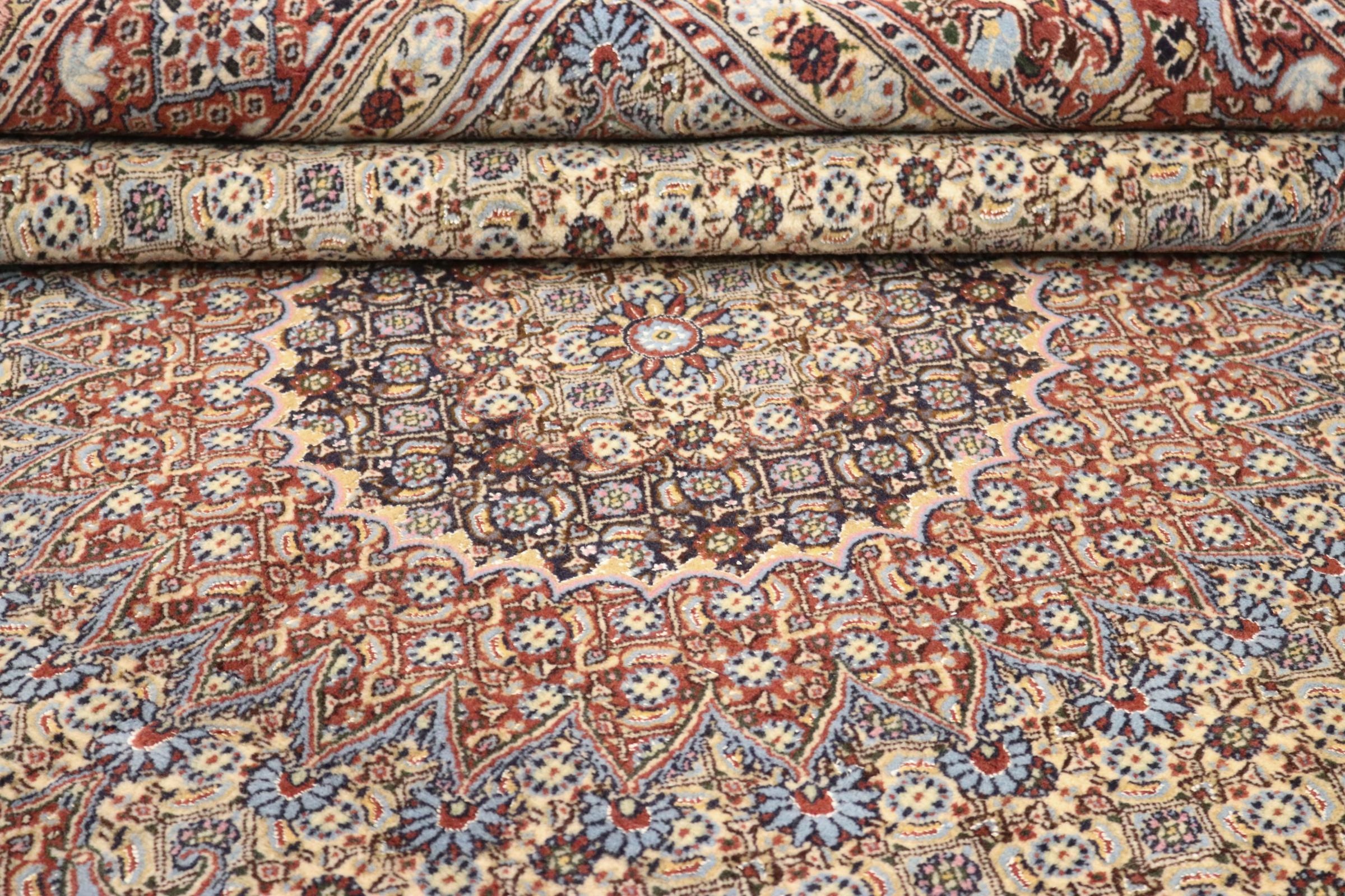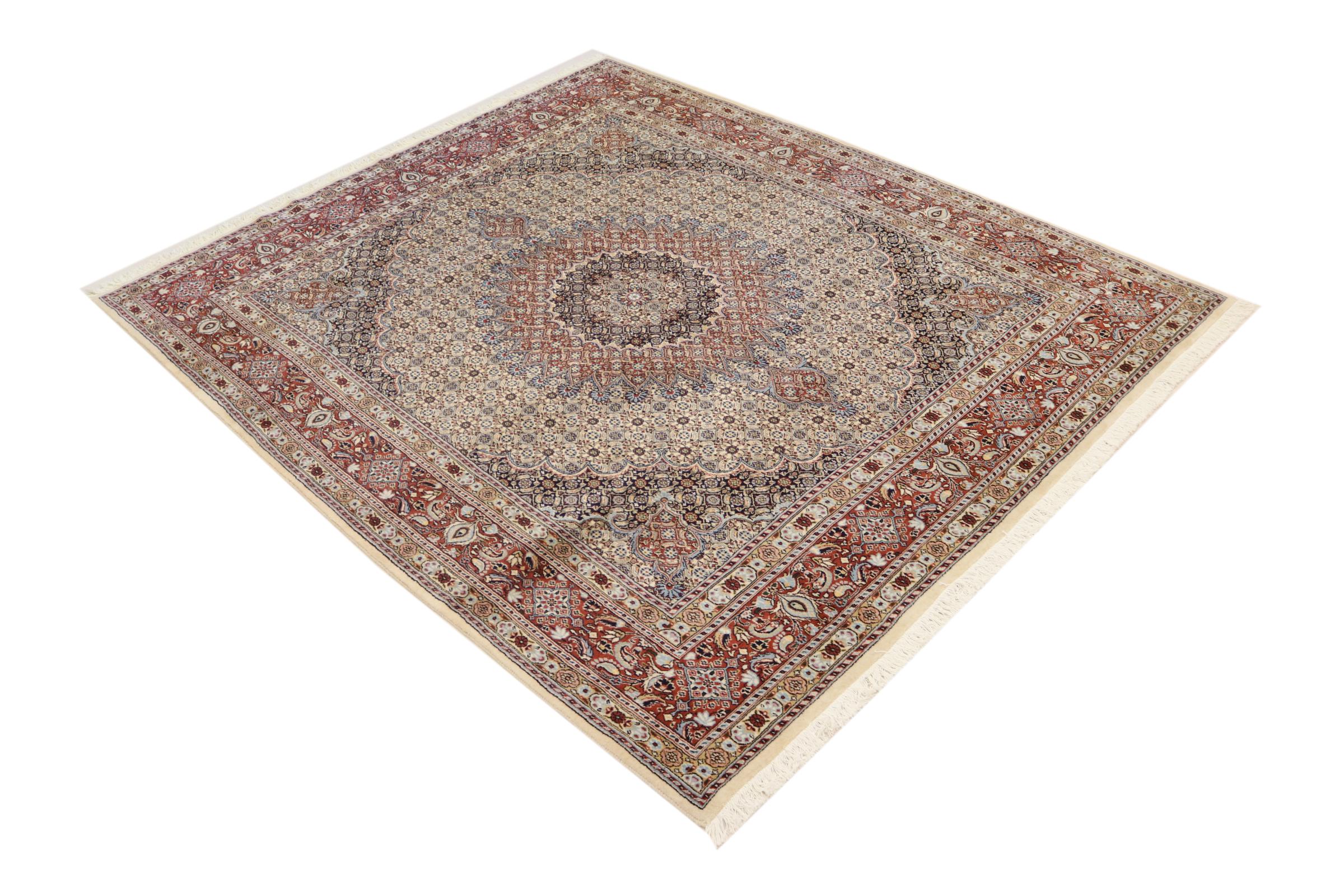 Moud está no Irão, a sul de Mashhad. Como cidade da antiga Pérsia, a sua tradição de nó de tapete remonta a muitos séculos, se não milhares de anos. Os tapetes de Moud têm uma excelente reputação. São feitos com o famoso nó persa. Tipicamente, os tapetes Persas Moud têm um padrão de cobertura total. O padrão Jardim com motivos dos jardins persas ou o padrão Herati.
