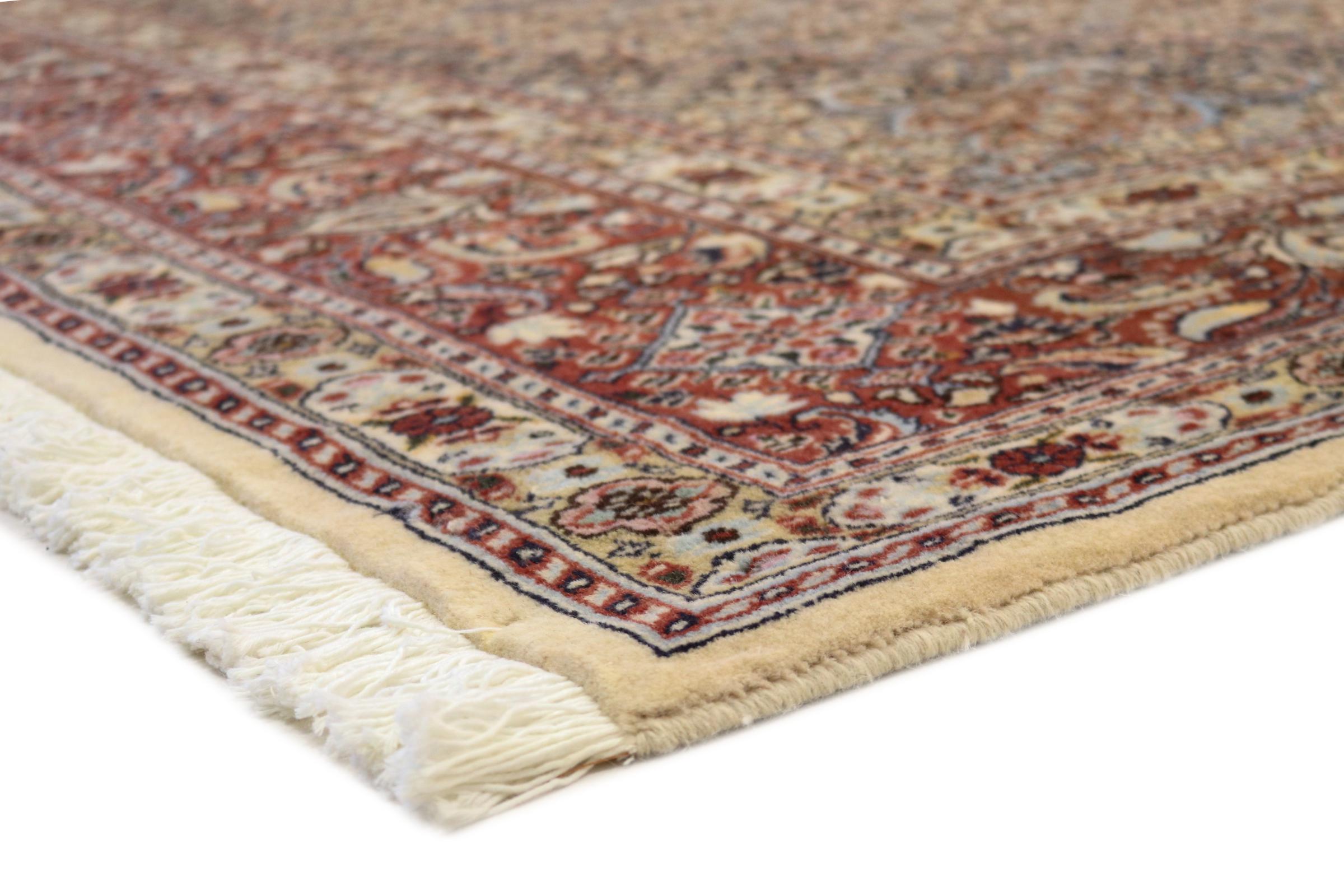 Este tapete de Moud, uma cidade situada 300 km a sul de Mashhad, impressiona à primeira vista. O padrão típico Herati ou desenho de jardim é apreciado por conhecedores e amantes de tapetes persas genuínos. Se procura um tapete feito à mão de excelente qualidade com um design muito distinto e caraterístico, está absolutamente certo com este tipo de tapete.