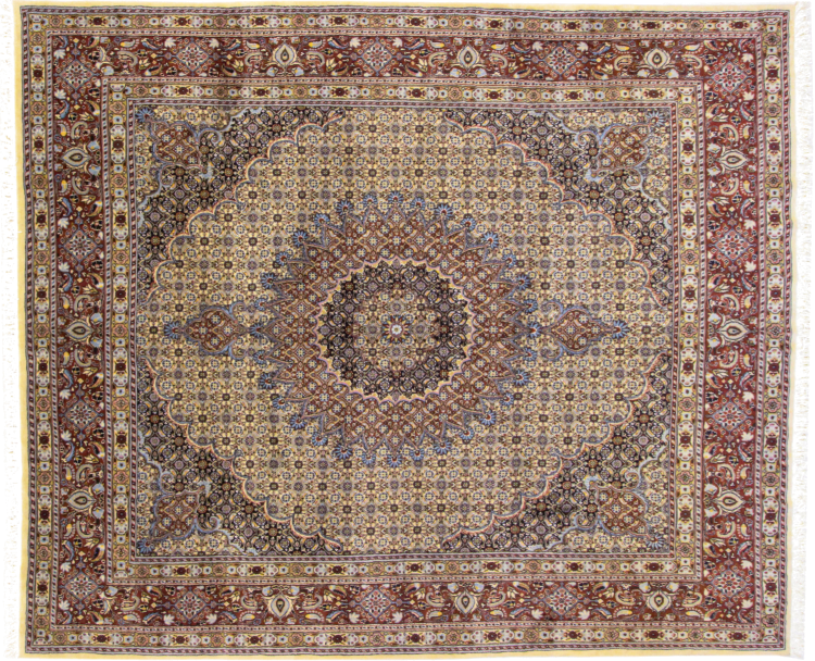 Nº do Tapete: 191898003970530 Tamanho: 292x241 cm Espessura: aproximadamente 12 mm Nós: 320 000 - 360 000 / m² Processamento: Atado à mão Veludo: Lã tecida à mão Urdidura: Algodão Origem: Pérsia / Iran Idade: Novo Peso: aproximadamente 25 kg Em armazém: Único - Apenas 1 em stock