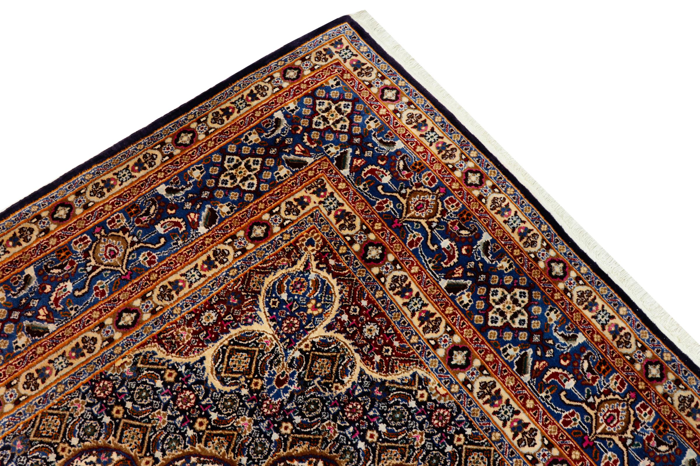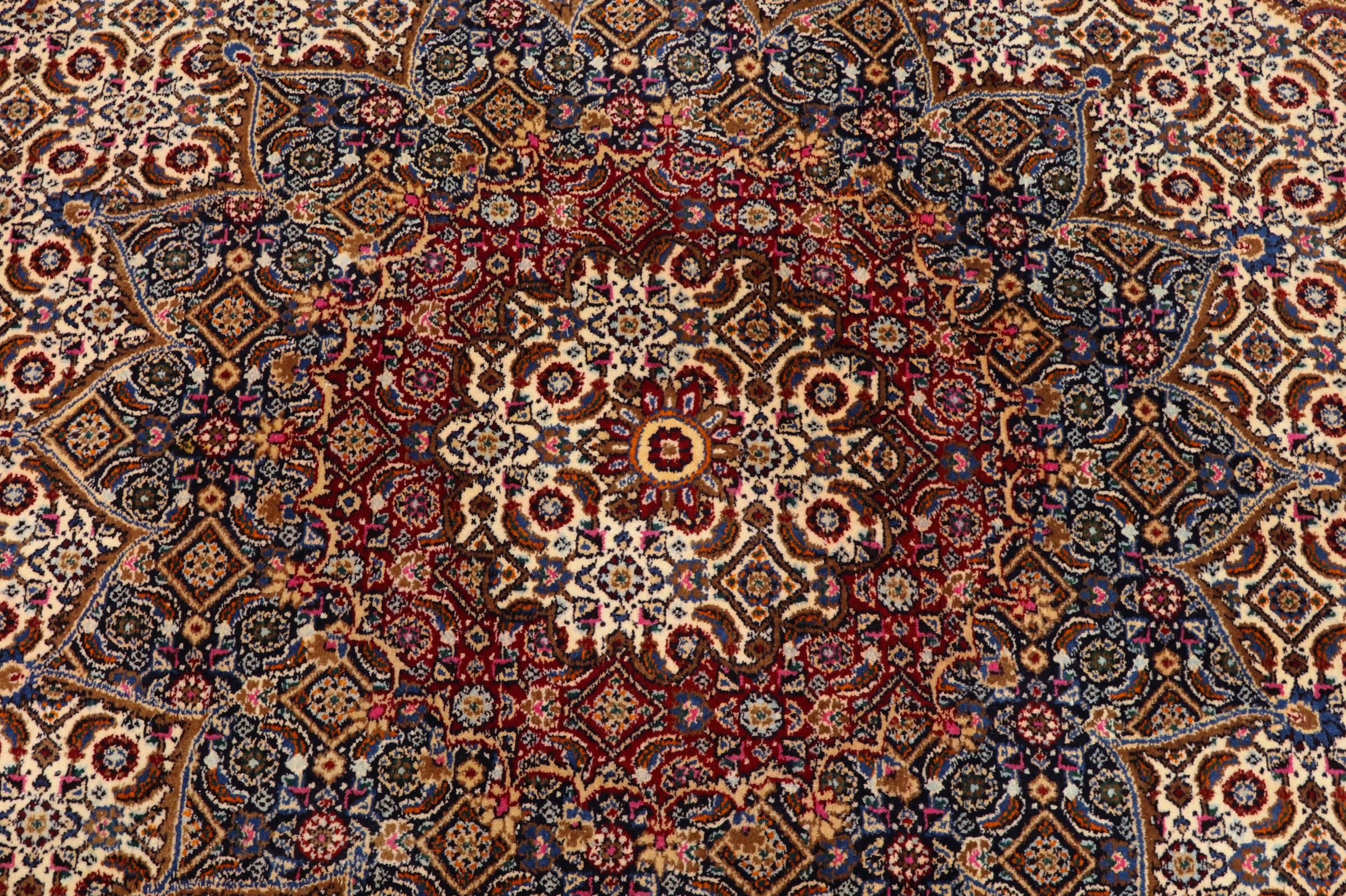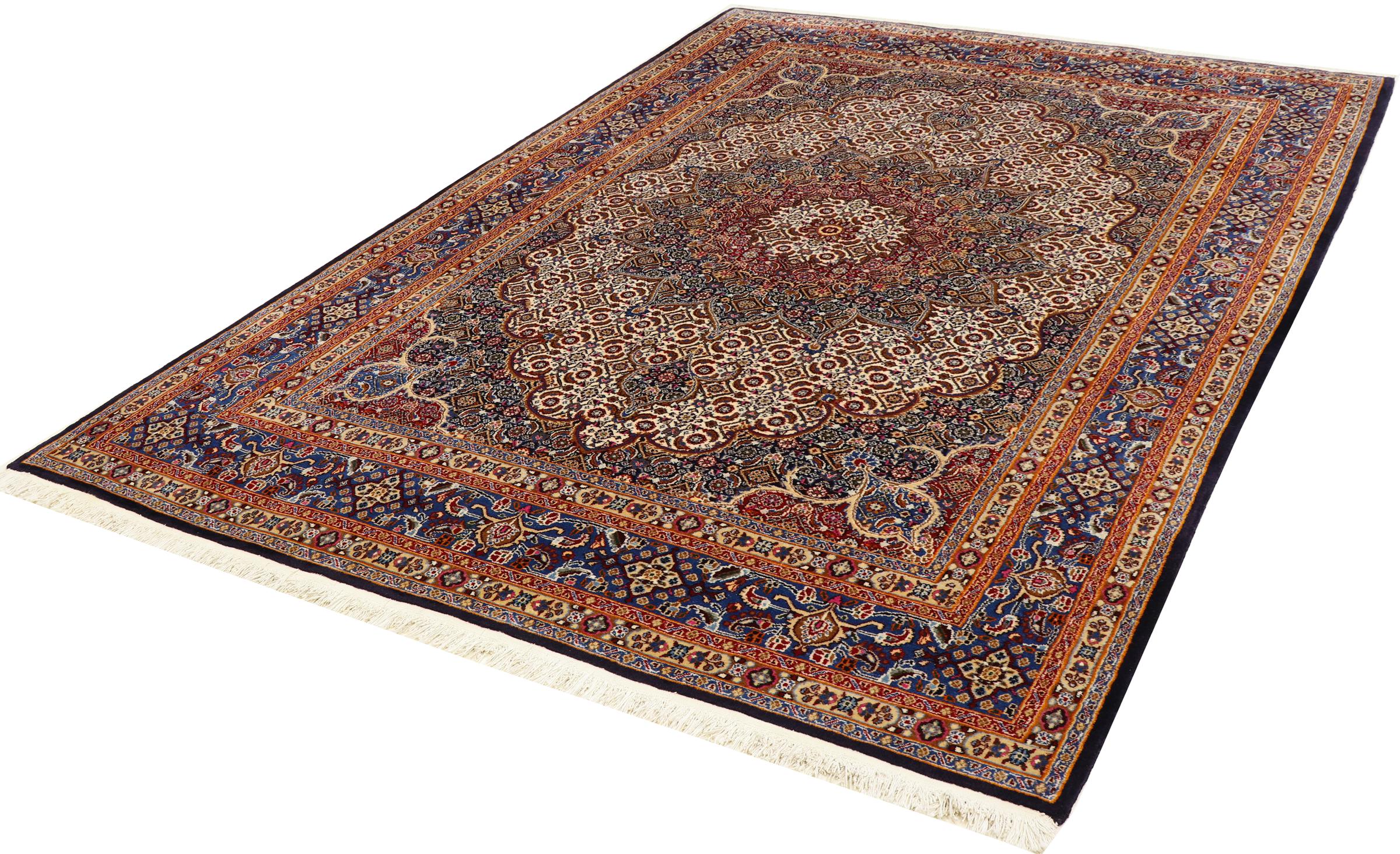 Este tapete de Moud, uma cidade situada 300 km a sul de Mashhad, impressiona à primeira vista. O padrão típico Herati ou desenho de jardim é apreciado por conhecedores e amantes de tapetes persas genuínos. Se procura um tapete feito à mão de excelente qualidade com um design muito distinto e caraterístico, está absolutamente certo com este tipo de tapete.