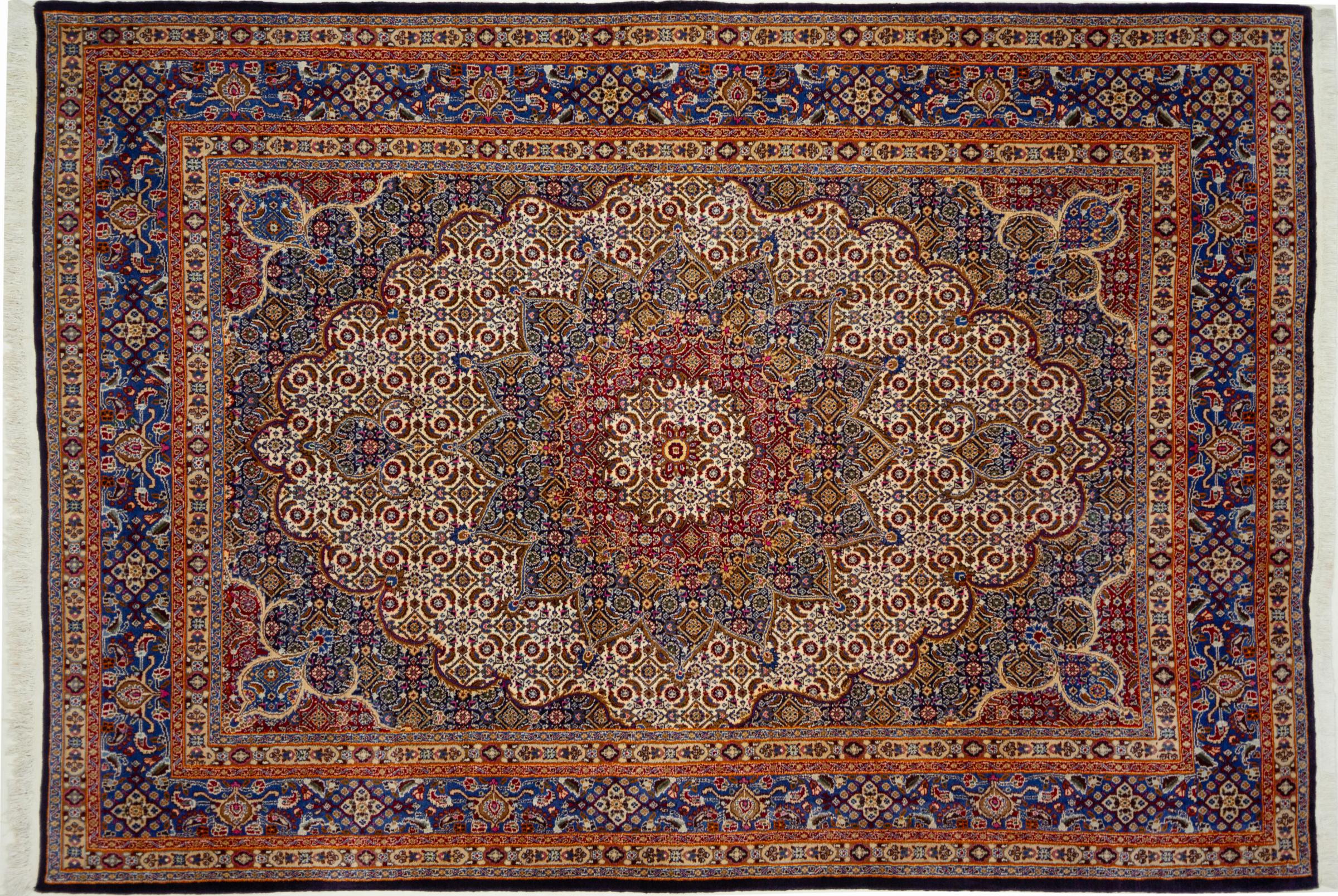 Moud está no Irão, a sul de Mashhad. Como cidade da antiga Pérsia, a sua tradição de nó de tapete remonta a muitos séculos, se não milhares de anos. Os tapetes de Moud têm uma excelente reputação. São feitos com o famoso nó persa. Tipicamente, os tapetes Persas Moud têm um padrão de cobertura total. O padrão Jardim com motivos dos jardins persas ou o padrão Herati.