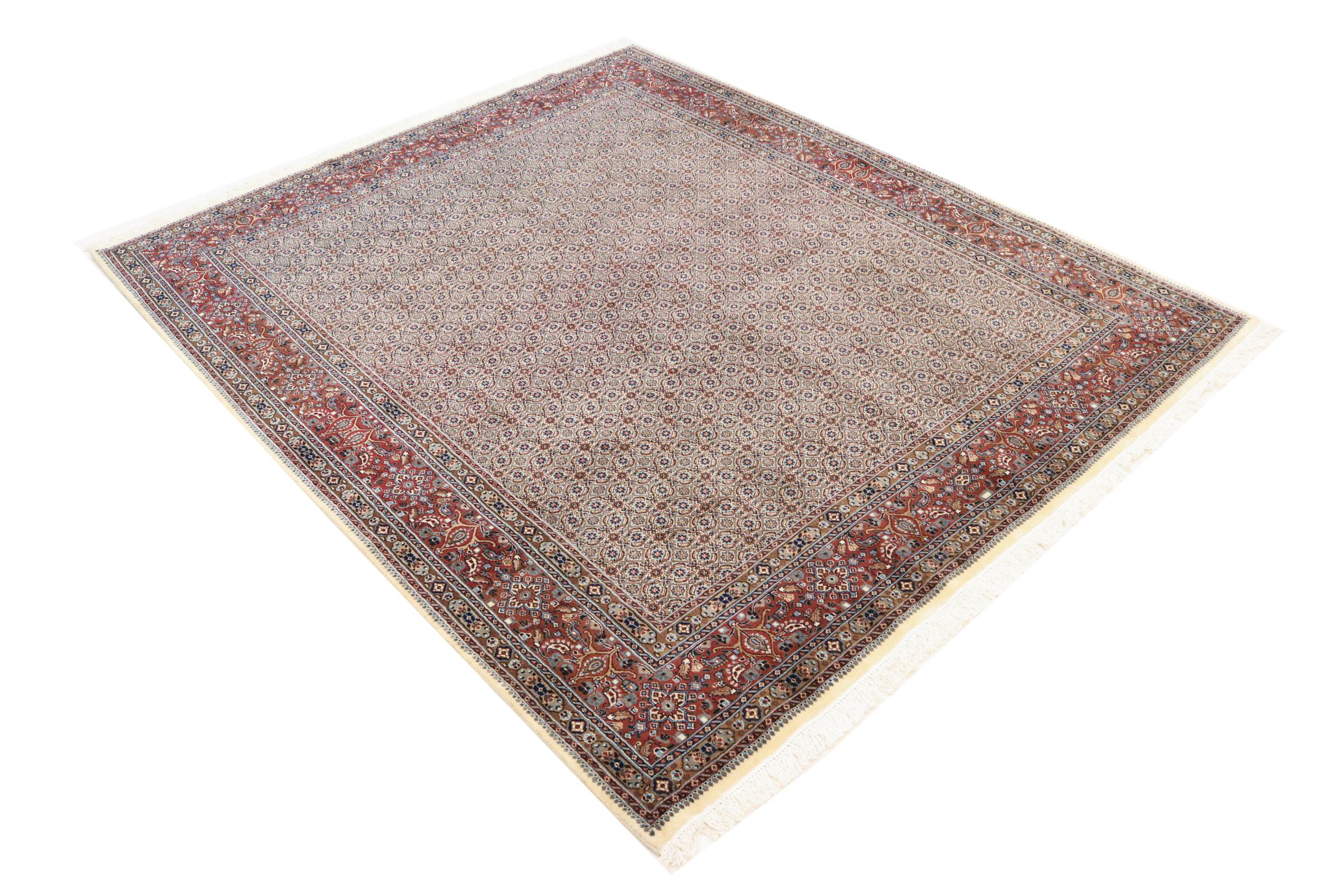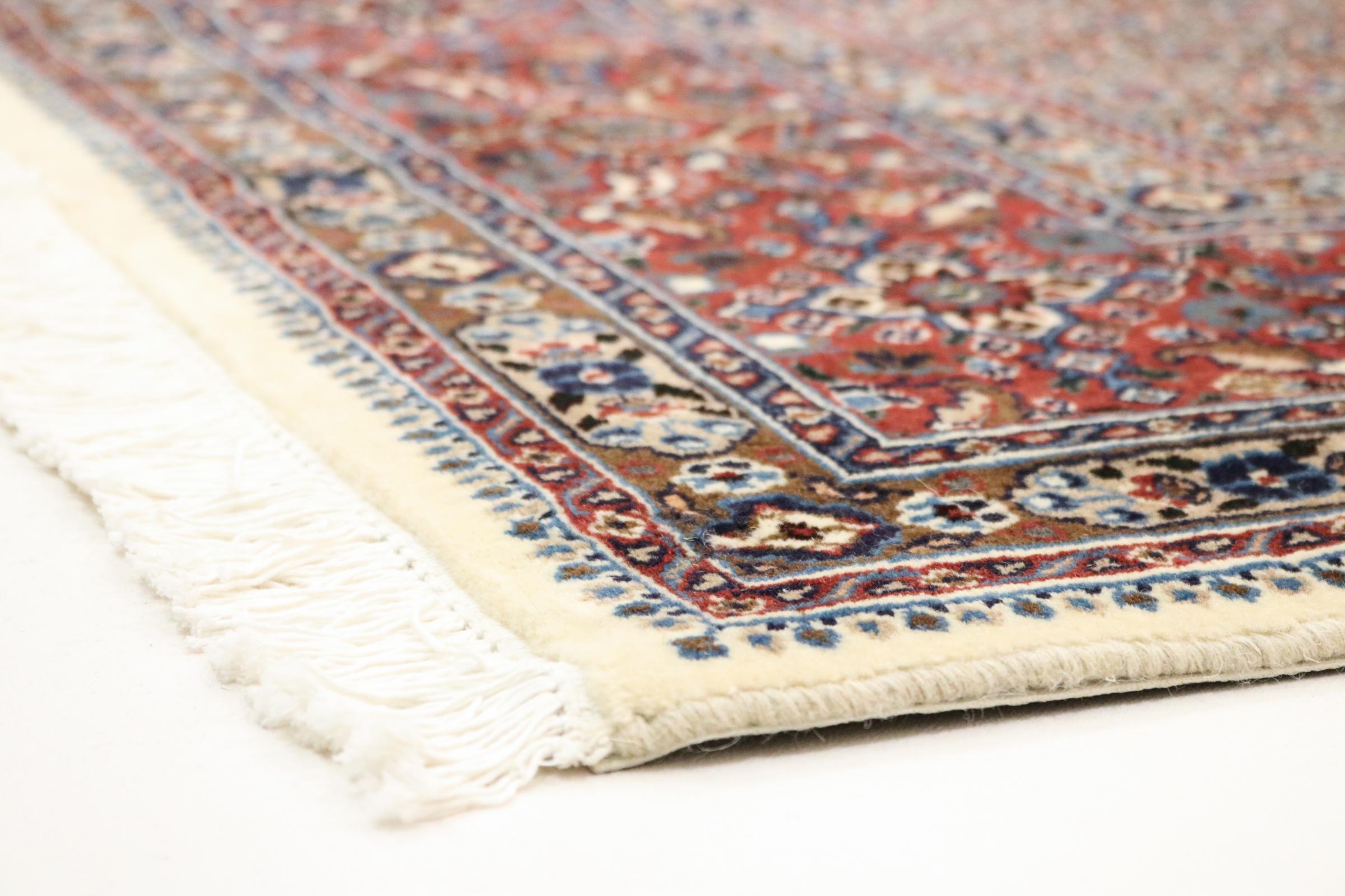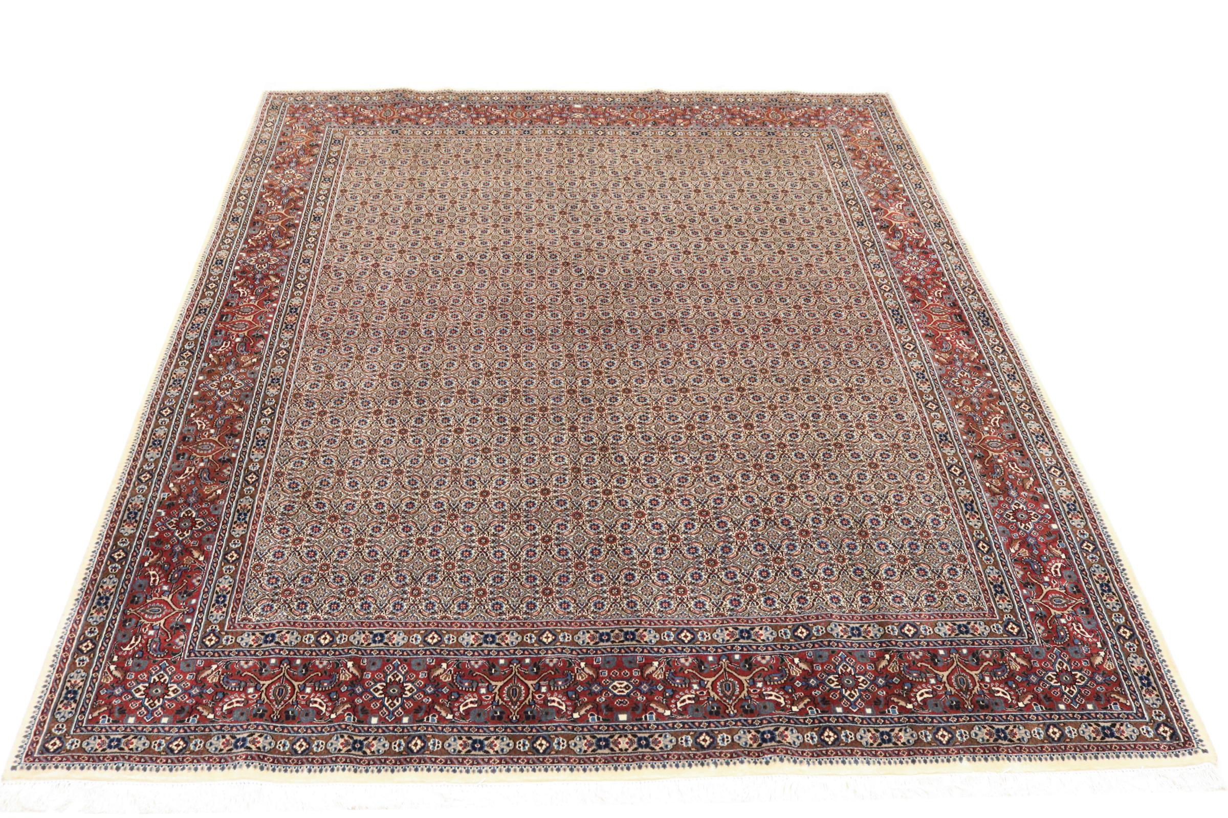 Este tapete de Moud, uma cidade situada 300 km a sul de Mashhad, impressiona à primeira vista. O padrão típico Herati ou desenho de jardim é apreciado por conhecedores e amantes de tapetes persas genuínos. Se procura um tapete feito à mão de excelente qualidade com um design muito distinto e caraterístico, está absolutamente certo com este tipo de tapete.