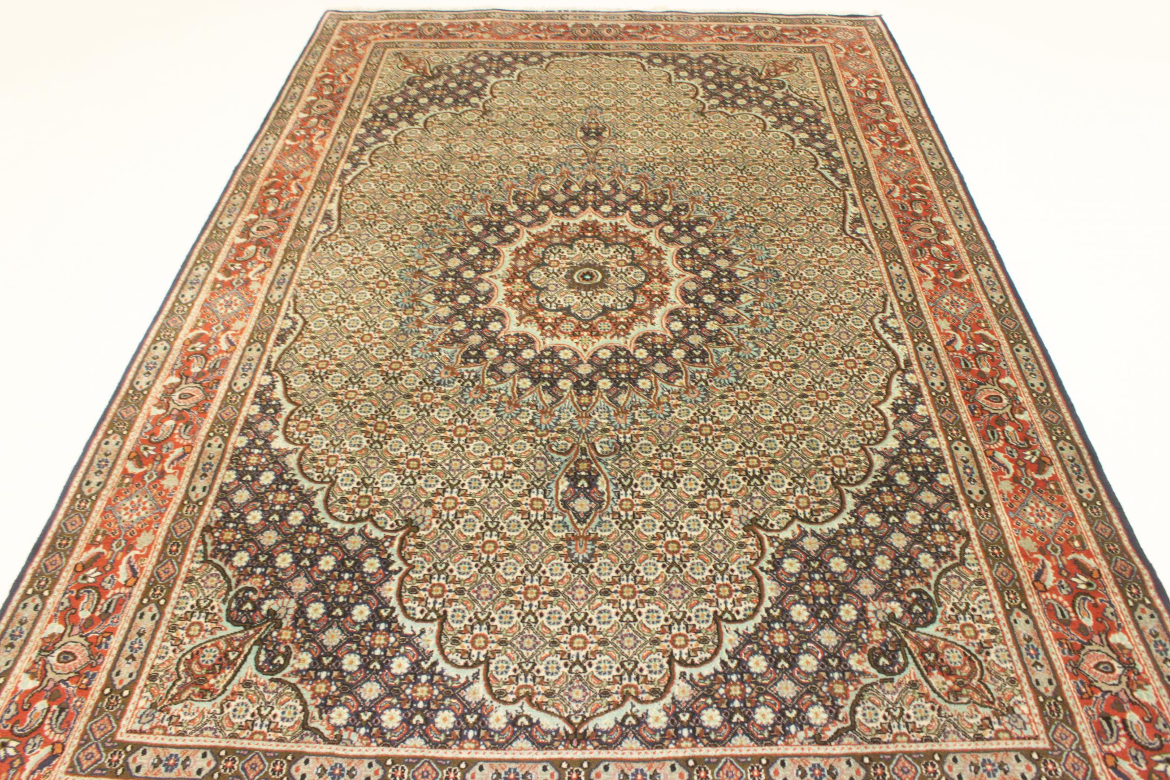 Moud está no Irão, a sul de Mashhad. Como cidade da antiga Pérsia, a sua tradição de nó de tapete remonta a muitos séculos, se não milhares de anos. Os tapetes de Moud têm uma excelente reputação. São feitos com o famoso nó persa. Tipicamente, os tapetes Persas Moud têm um padrão de cobertura total. O padrão Jardim com motivos dos jardins persas ou o padrão Herati.