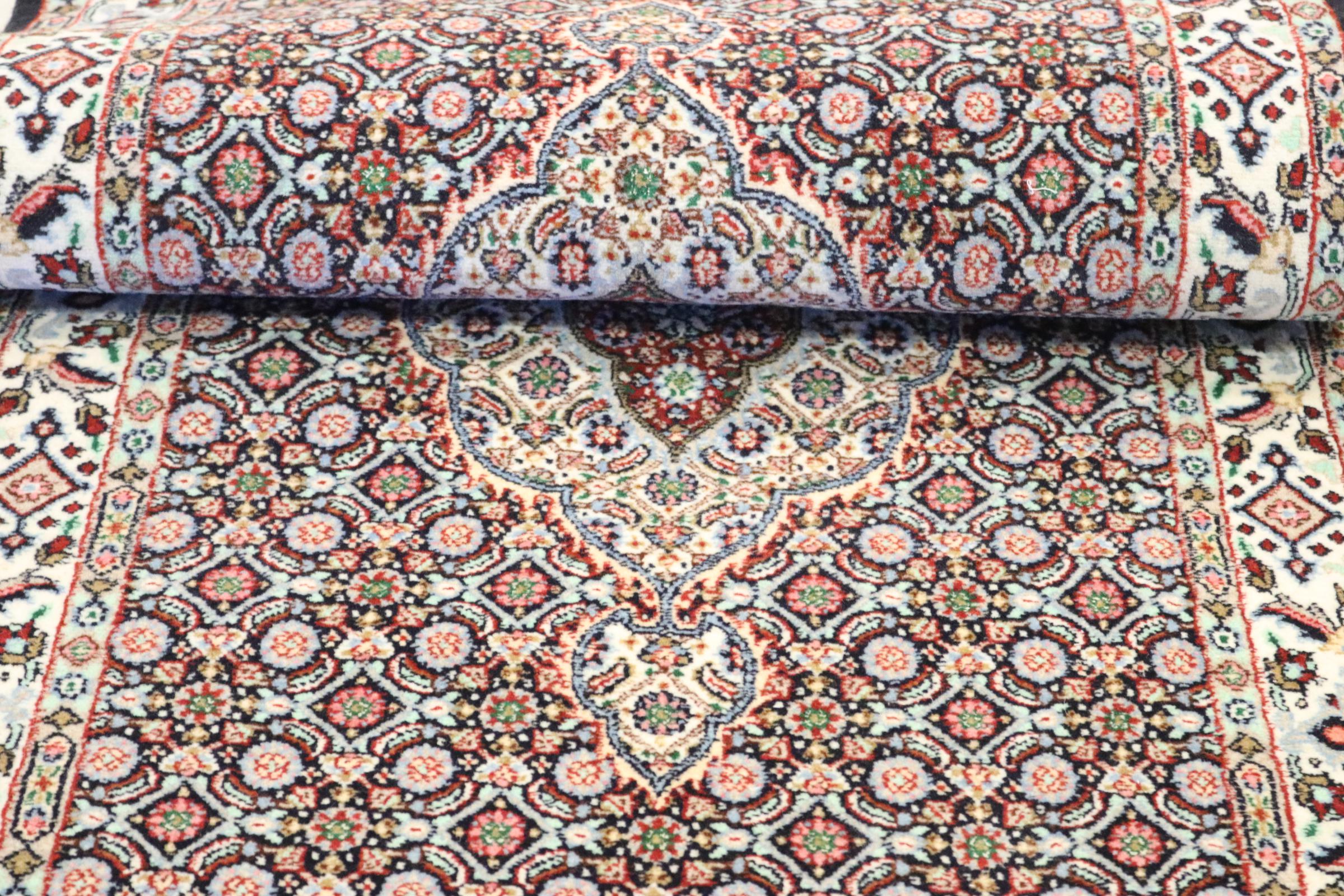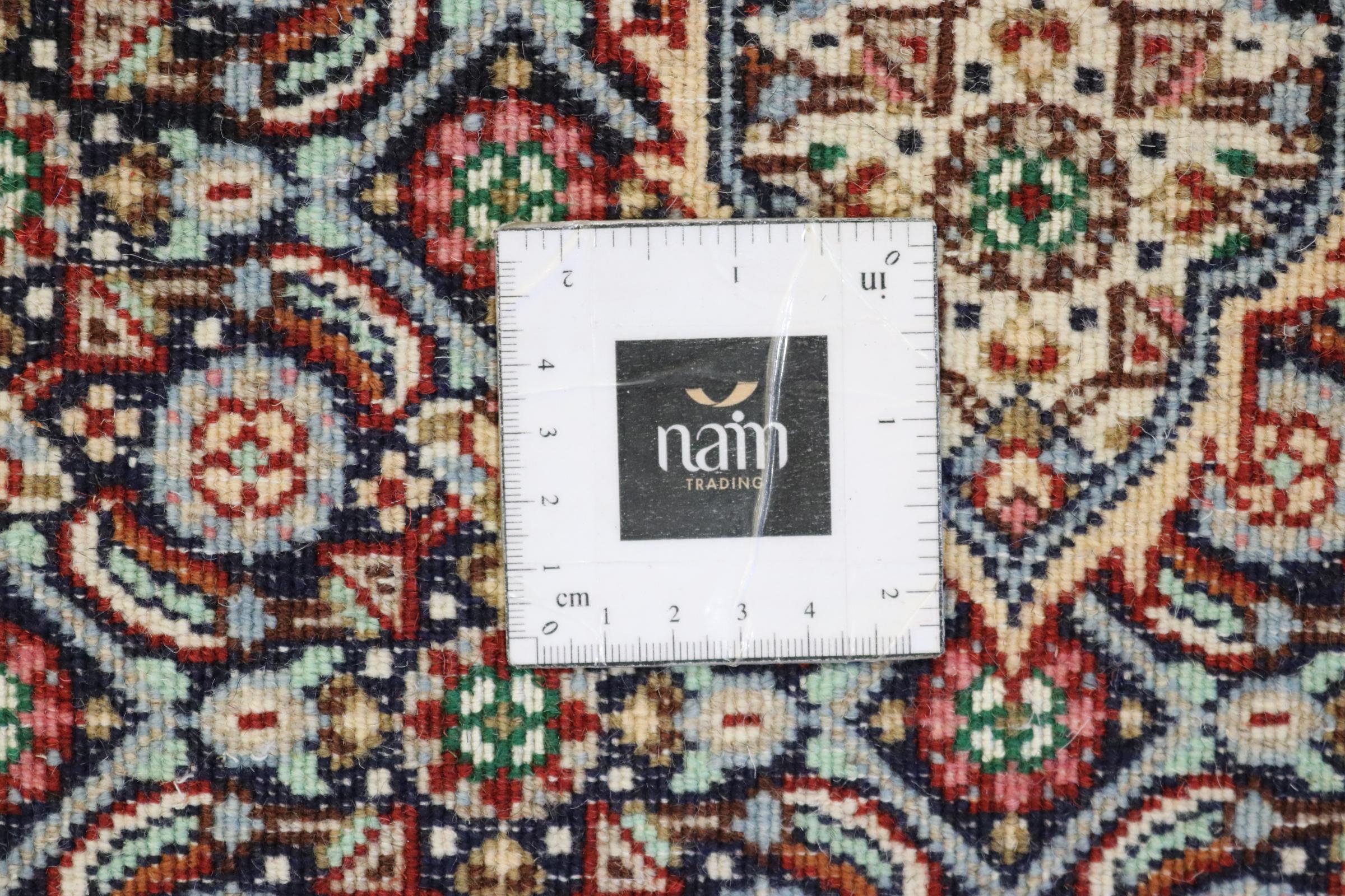 Este tapete de Moud, uma cidade situada 300 km a sul de Mashhad, impressiona à primeira vista. O padrão típico Herati ou desenho de jardim é apreciado por conhecedores e amantes de tapetes persas genuínos. Se procura um tapete feito à mão de excelente qualidade com um design muito distinto e caraterístico, está absolutamente certo com este tipo de tapete.
