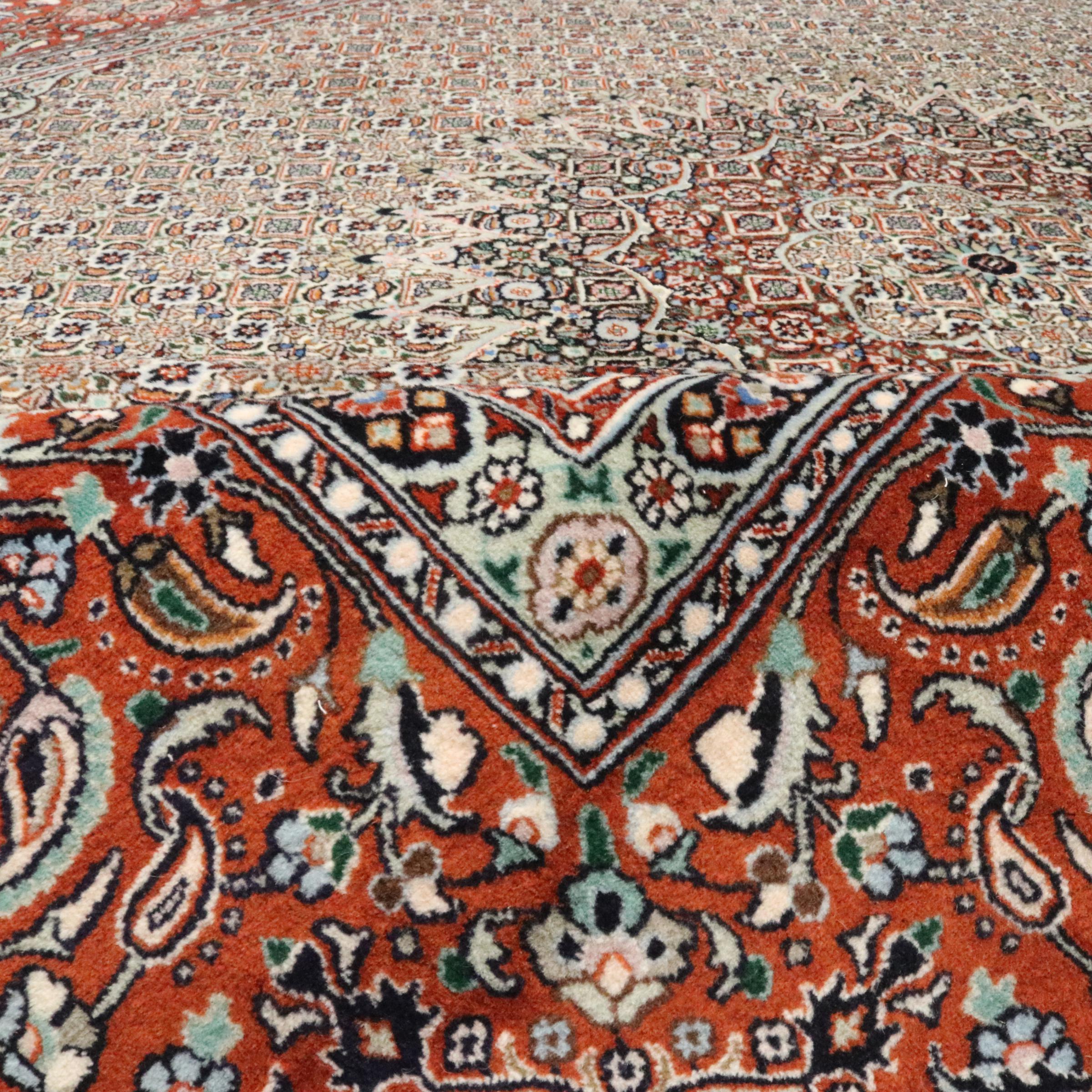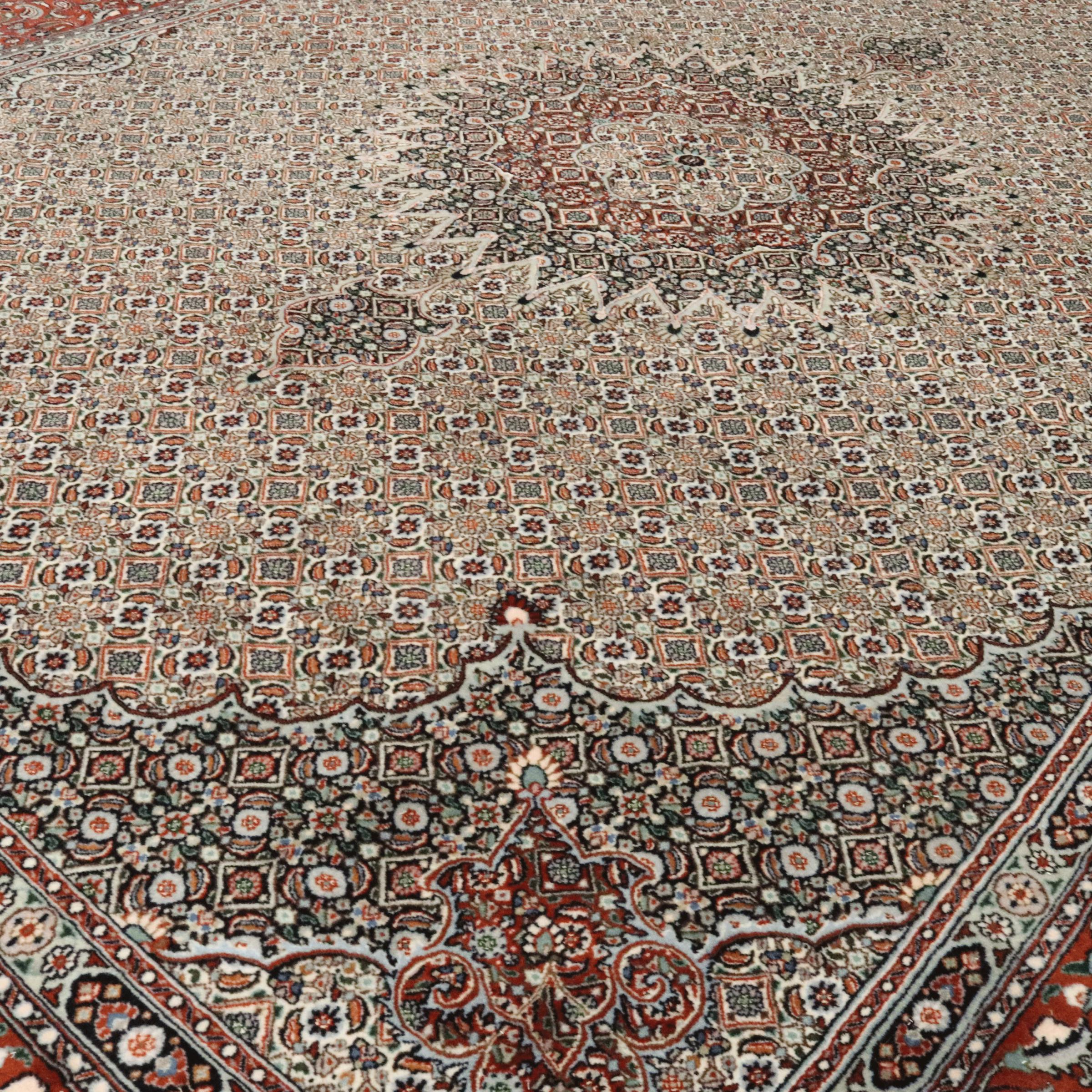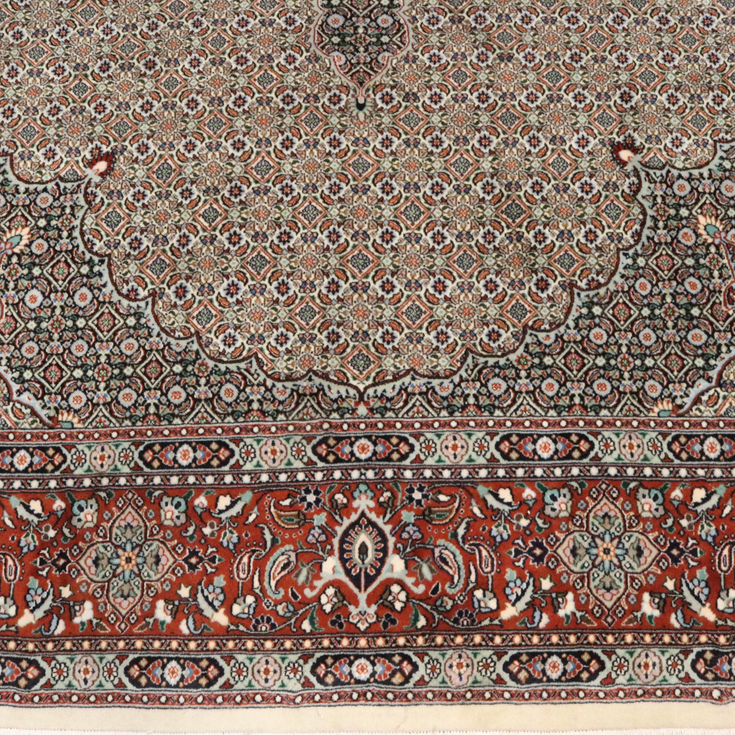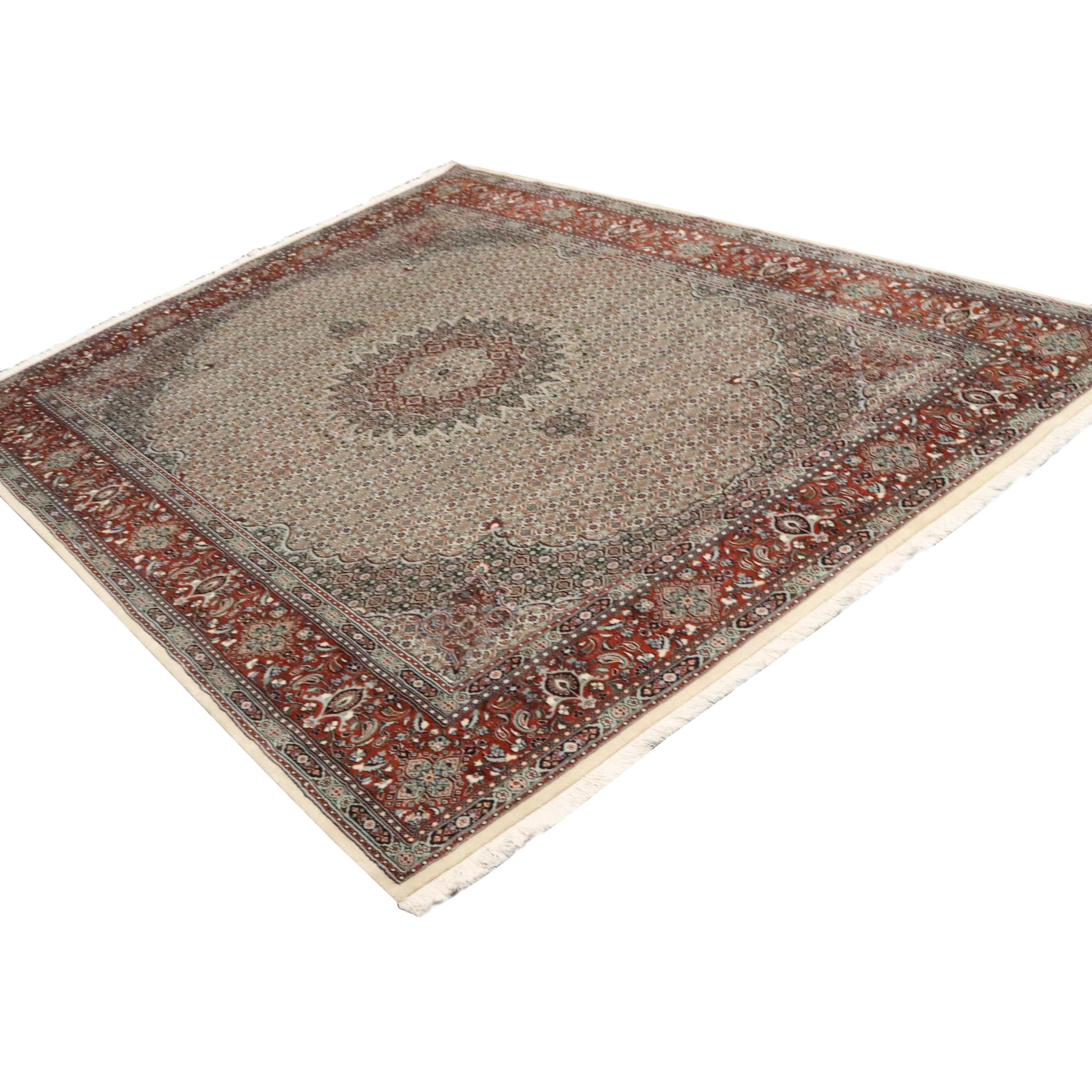 Este tapete de Moud, uma cidade situada 300 km a sul de Mashhad, impressiona à primeira vista. O padrão típico Herati ou desenho de jardim é apreciado por conhecedores e amantes de tapetes persas genuínos. Se procura um tapete feito à mão de excelente qualidade com um design muito distinto e caraterístico, está absolutamente certo com este tipo de tapete.