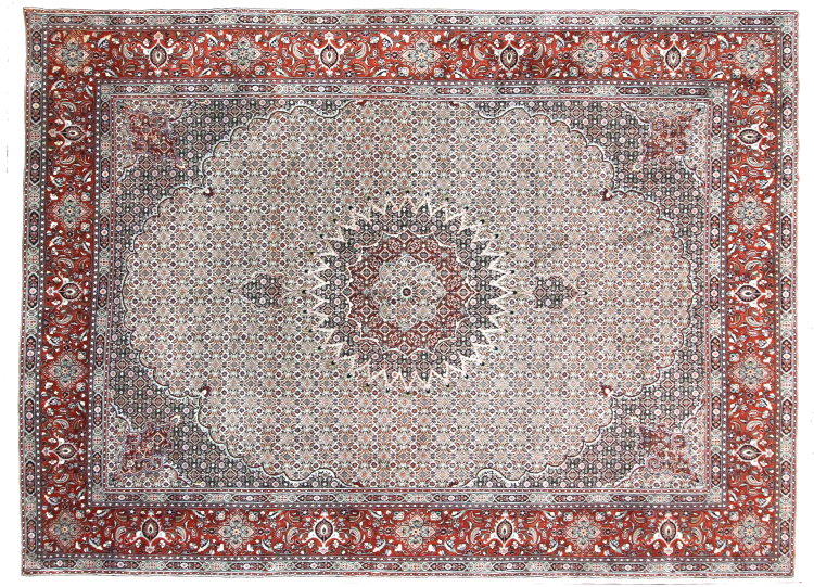 Moud está no Irão, a sul de Mashhad. Como cidade da antiga Pérsia, a sua tradição de nó de tapete remonta a muitos séculos, se não milhares de anos. Os tapetes de Moud têm uma excelente reputação. São feitos com o famoso nó persa. Tipicamente, os tapetes Persas Moud têm um padrão de cobertura total. O padrão Jardim com motivos dos jardins persas ou o padrão Herati.
