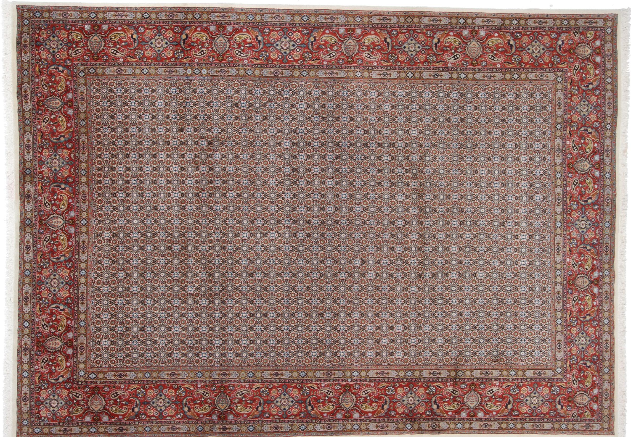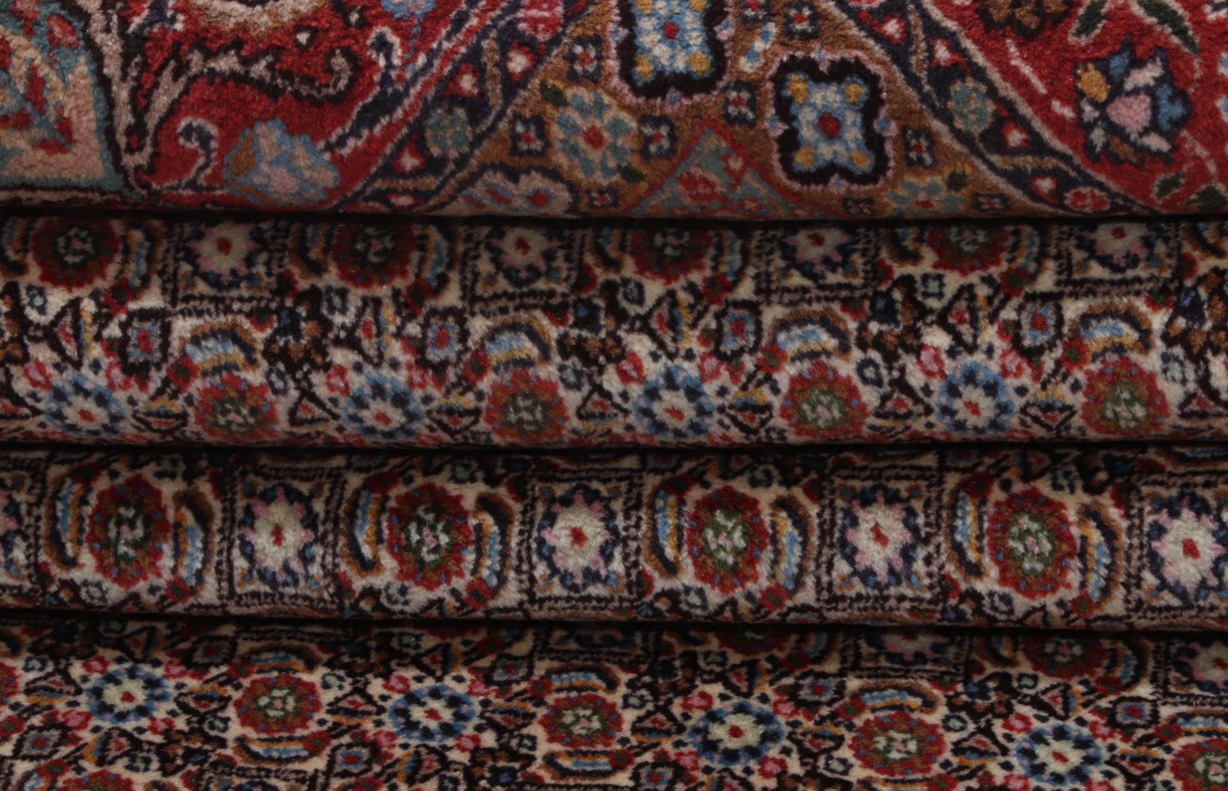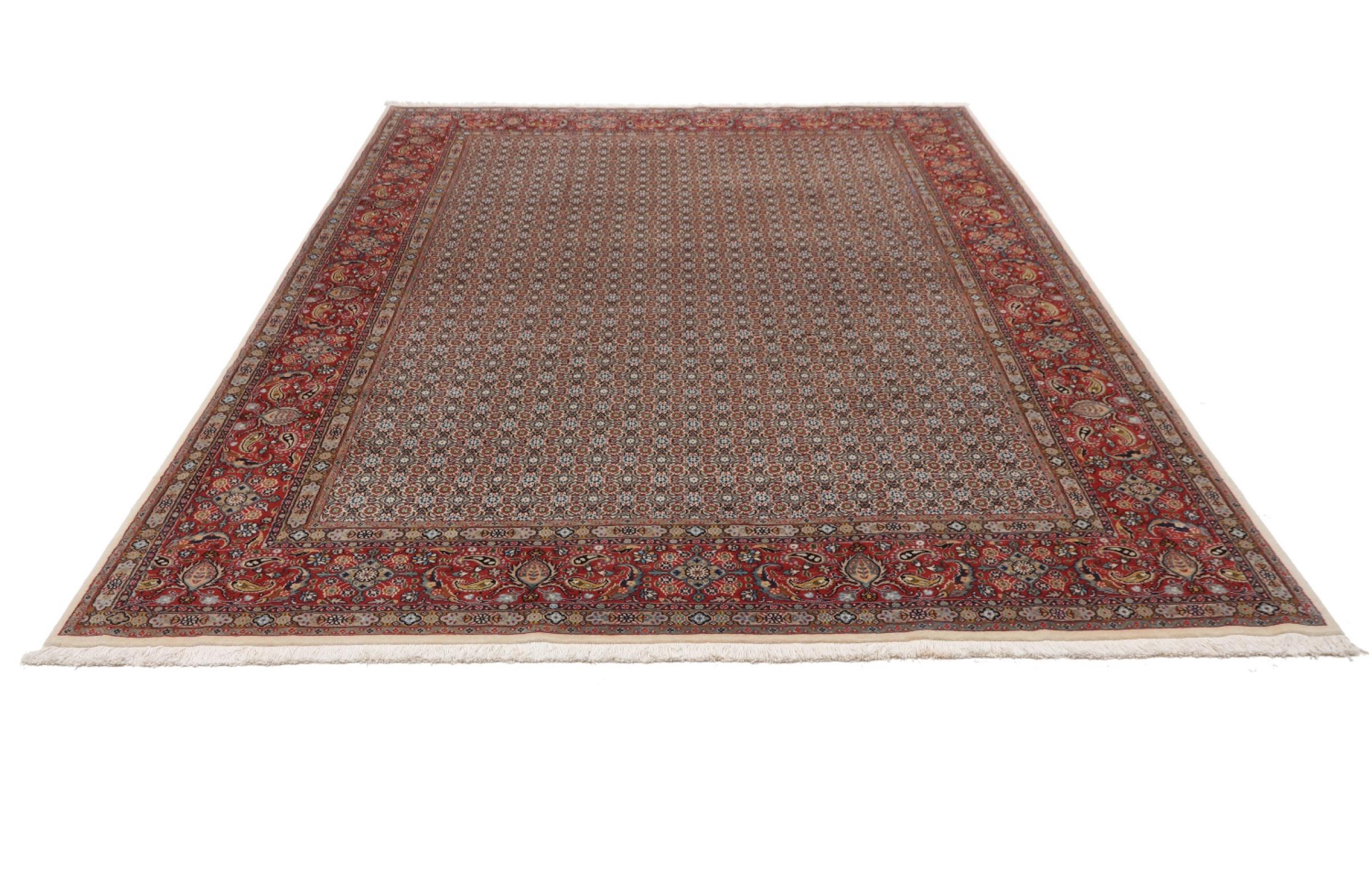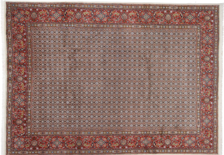 Este tapete de Moud, uma cidade situada 300 km a sul de Mashhad, impressiona à primeira vista. O padrão típico Herati ou desenho de jardim é apreciado por conhecedores e amantes de tapetes persas genuínos. Se procura um tapete feito à mão de excelente qualidade com um design muito distinto e caraterístico, está absolutamente certo com este tipo de tapete.
