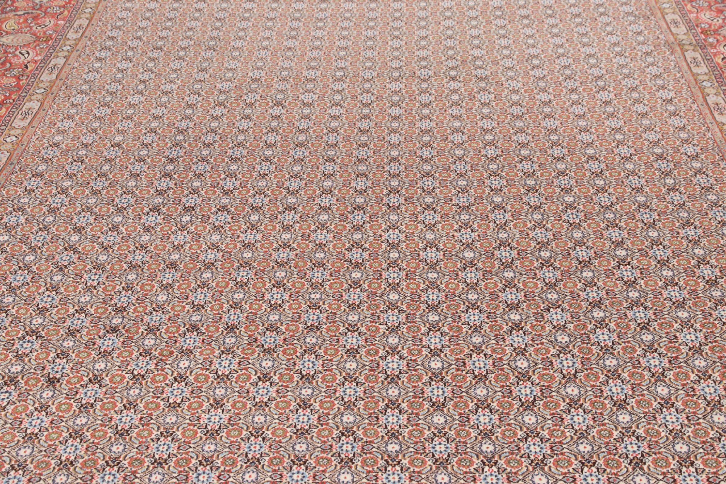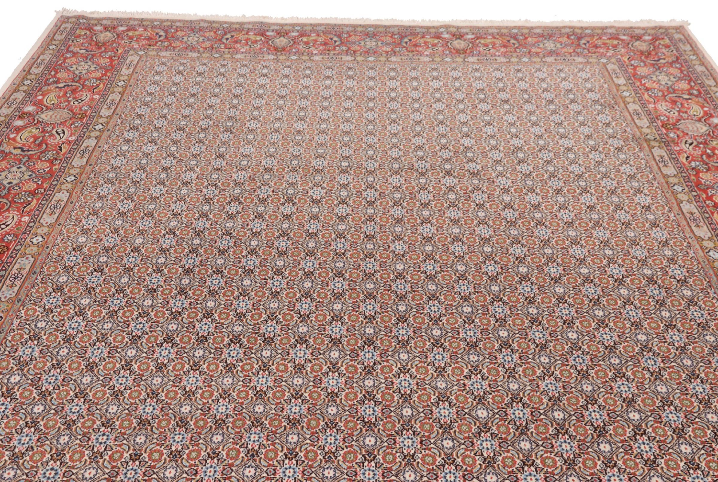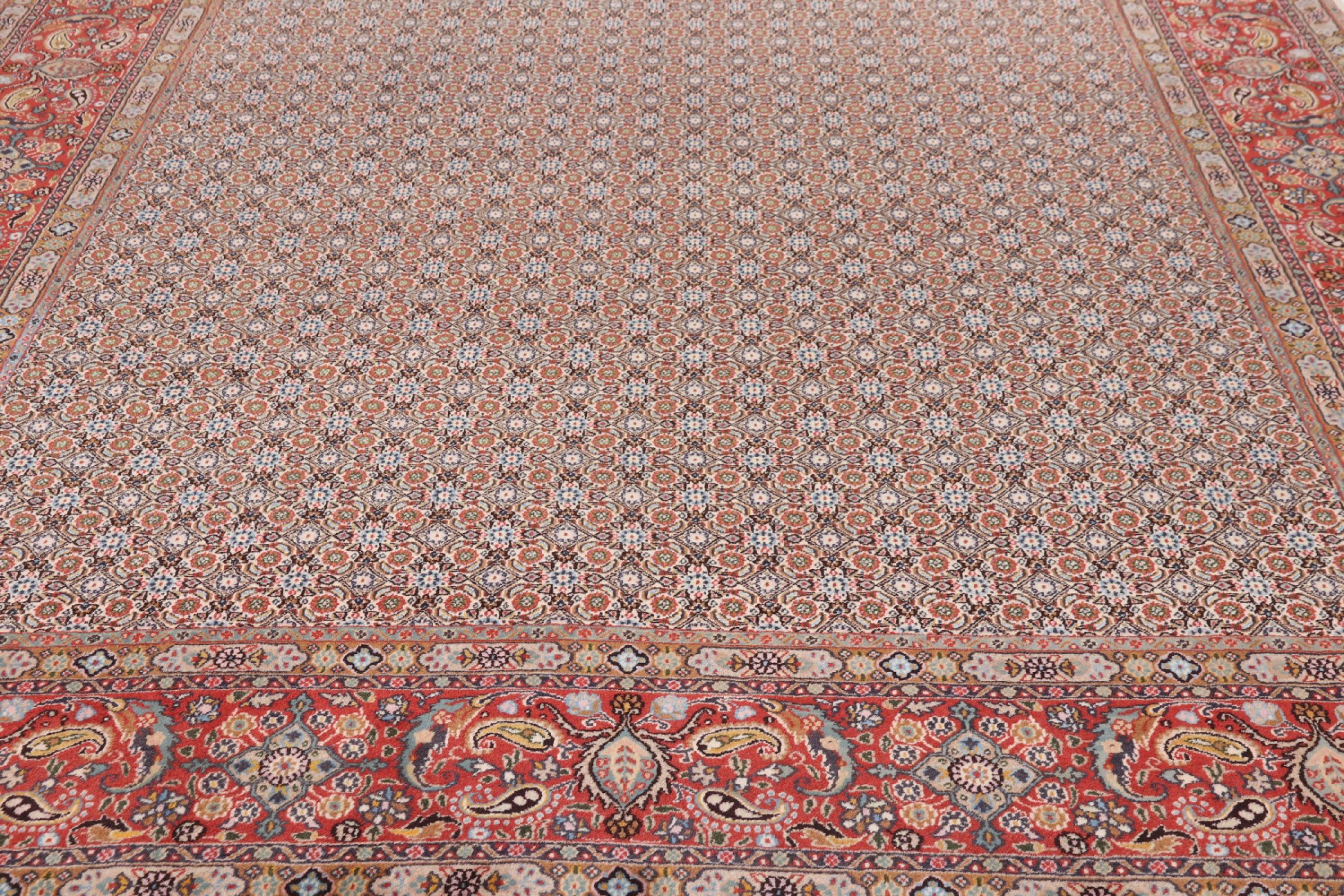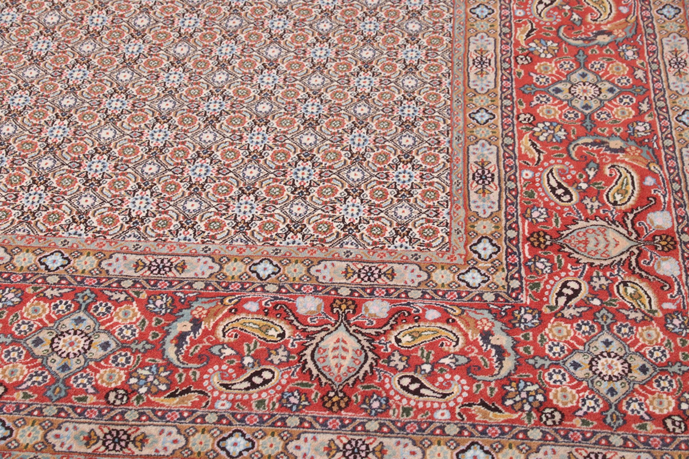 Este tapete de Moud, uma cidade situada 300 km a sul de Mashhad, impressiona à primeira vista. O padrão típico Herati ou desenho de jardim é apreciado por conhecedores e amantes de tapetes persas genuínos. Se procura um tapete feito à mão de excelente qualidade com um design muito distinto e caraterístico, está absolutamente certo com este tipo de tapete.