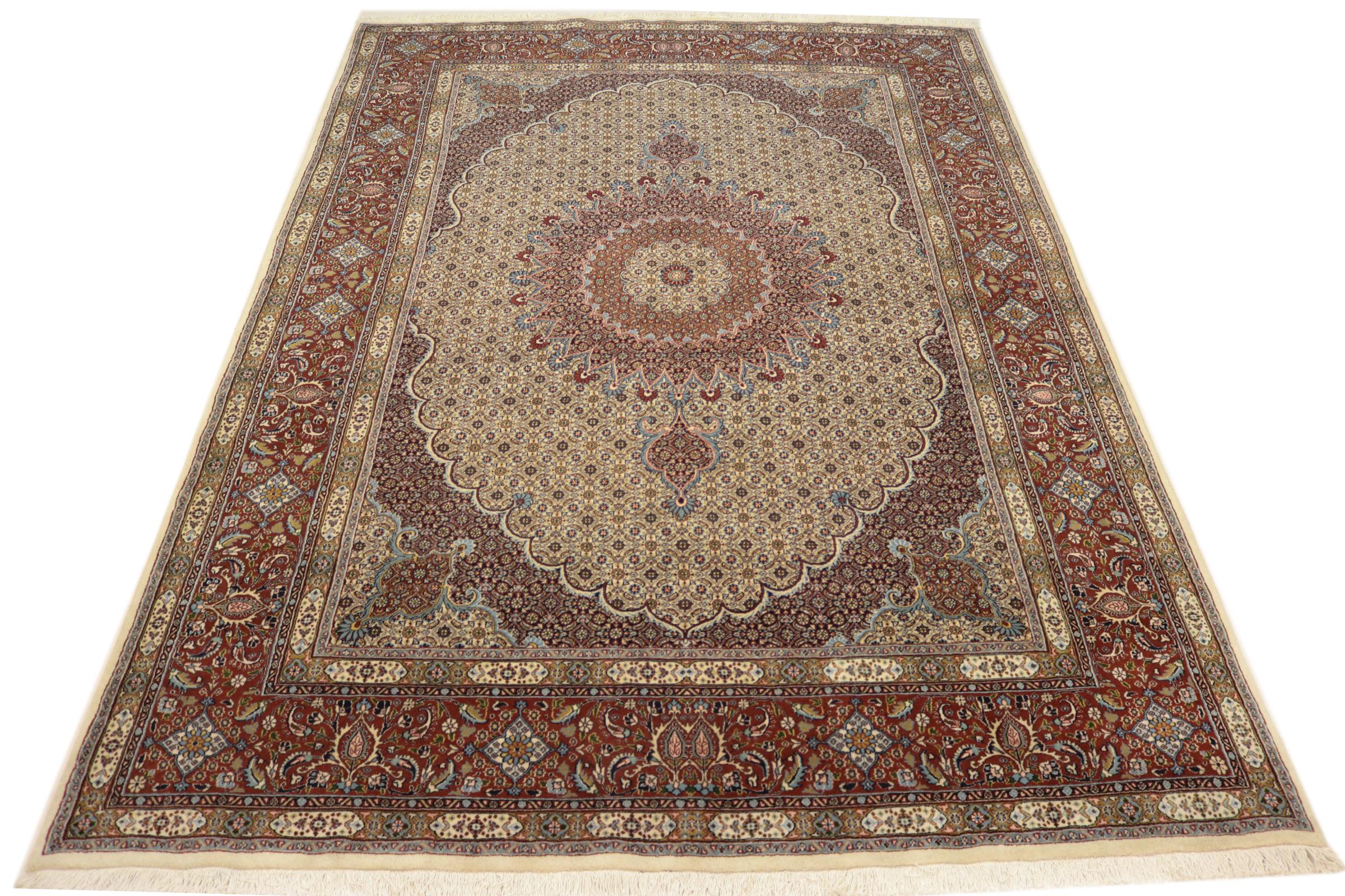 Moud está no Irão, a sul de Mashhad. Como cidade da antiga Pérsia, a sua tradição de nó de tapete remonta a muitos séculos, se não milhares de anos. Os tapetes de Moud têm uma excelente reputação. São feitos com o famoso nó persa. Tipicamente, os tapetes Persas Moud têm um padrão de cobertura total. O padrão Jardim com motivos dos jardins persas ou o padrão Herati.