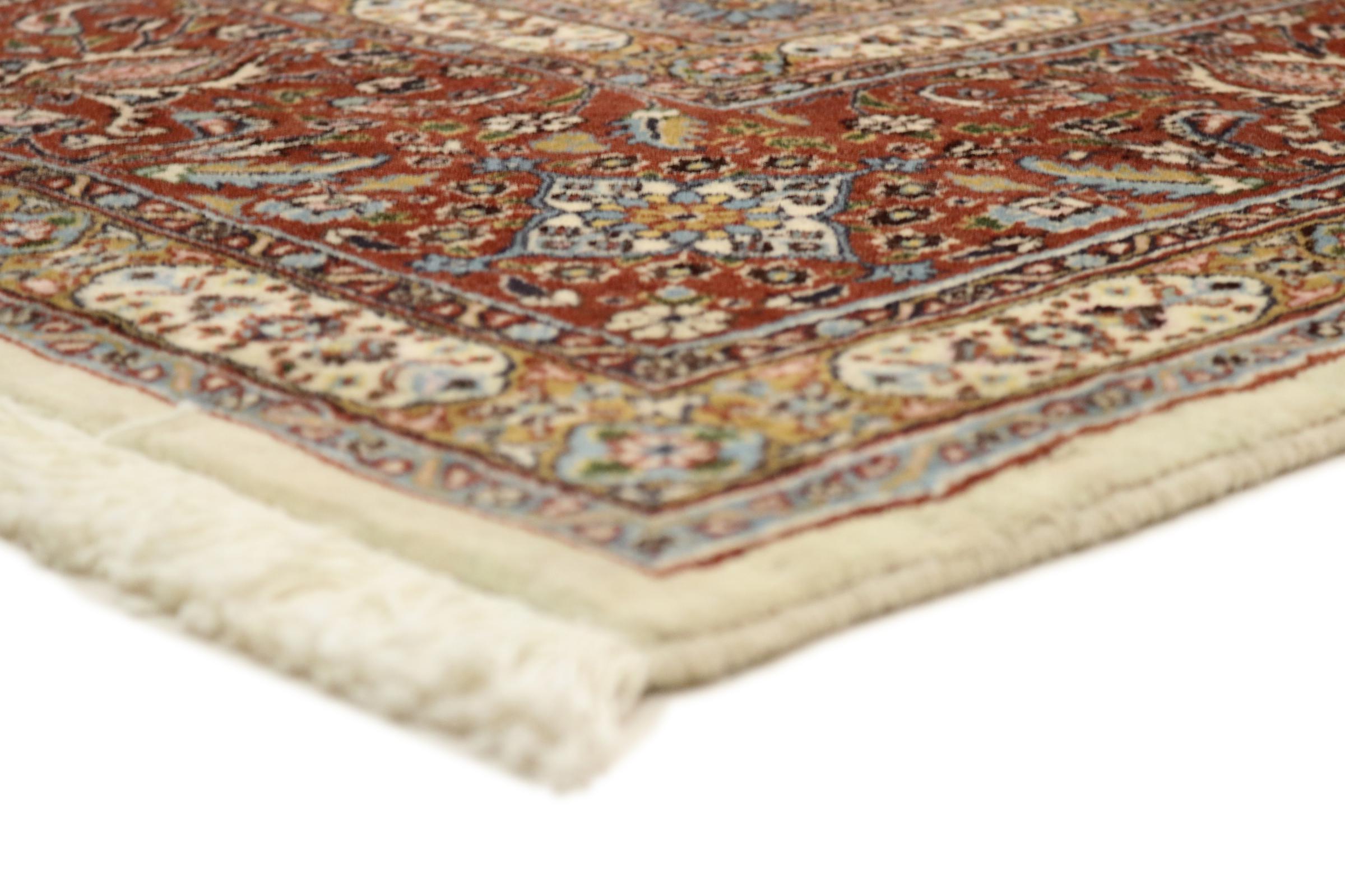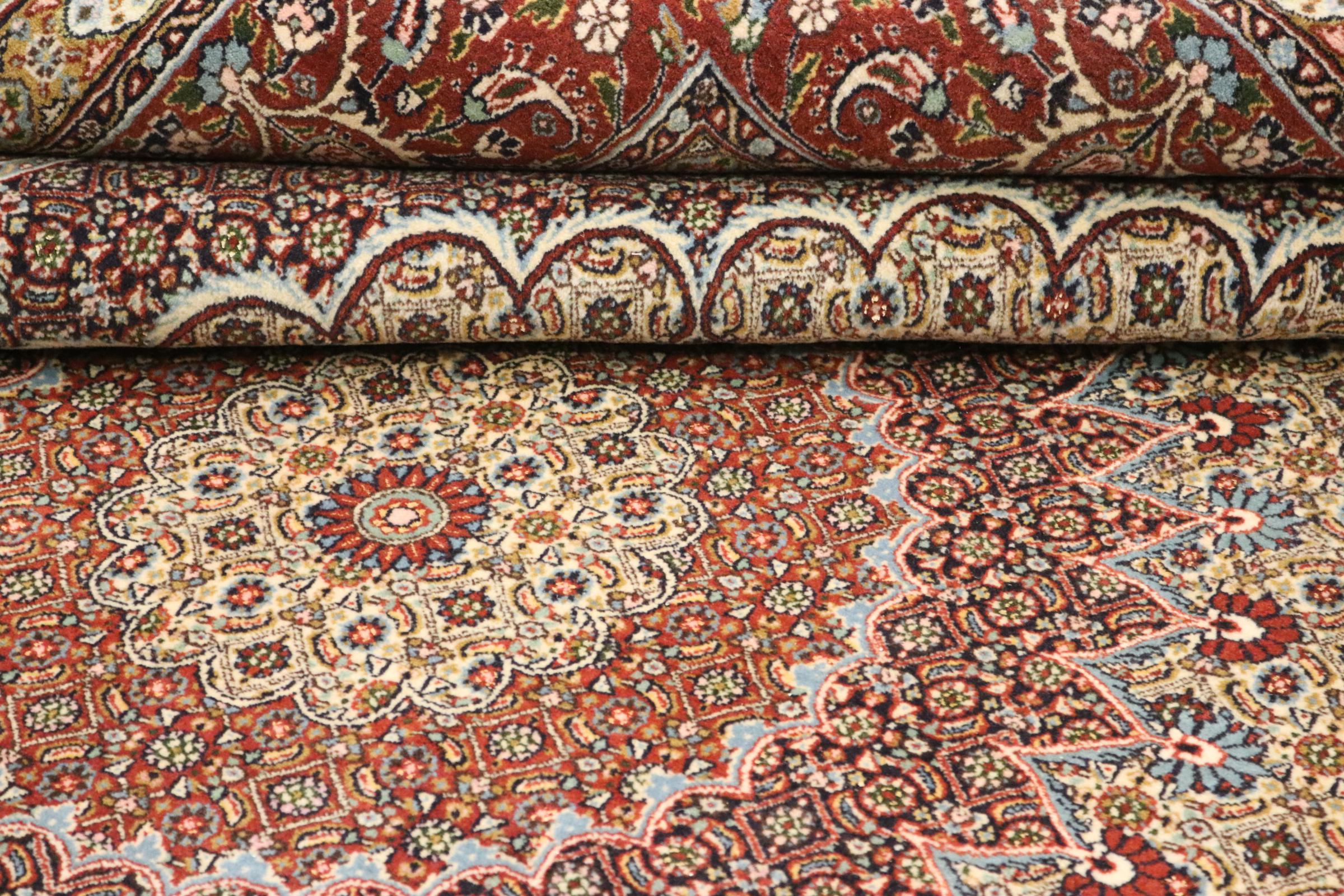 Este tapete de Moud, uma cidade situada 300 km a sul de Mashhad, impressiona à primeira vista. O padrão típico Herati ou desenho de jardim é apreciado por conhecedores e amantes de tapetes persas genuínos. Se procura um tapete feito à mão de excelente qualidade com um design muito distinto e caraterístico, está absolutamente certo com este tipo de tapete.