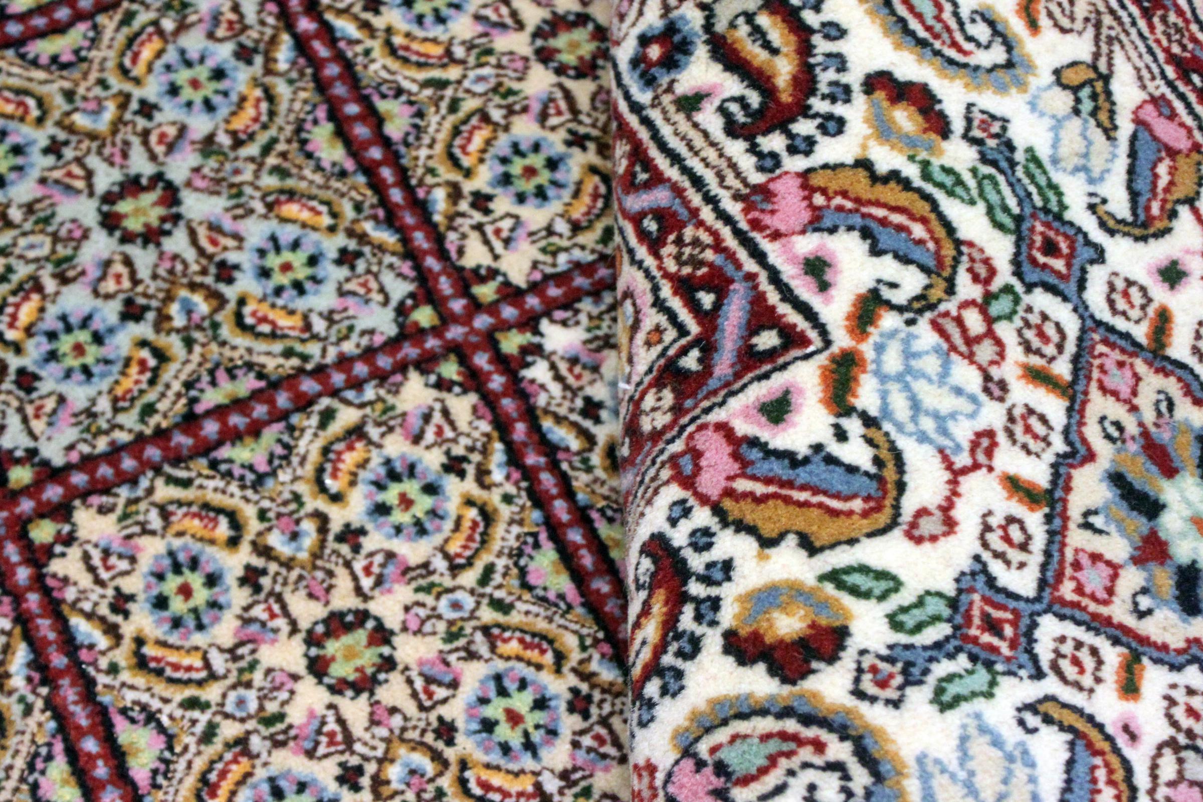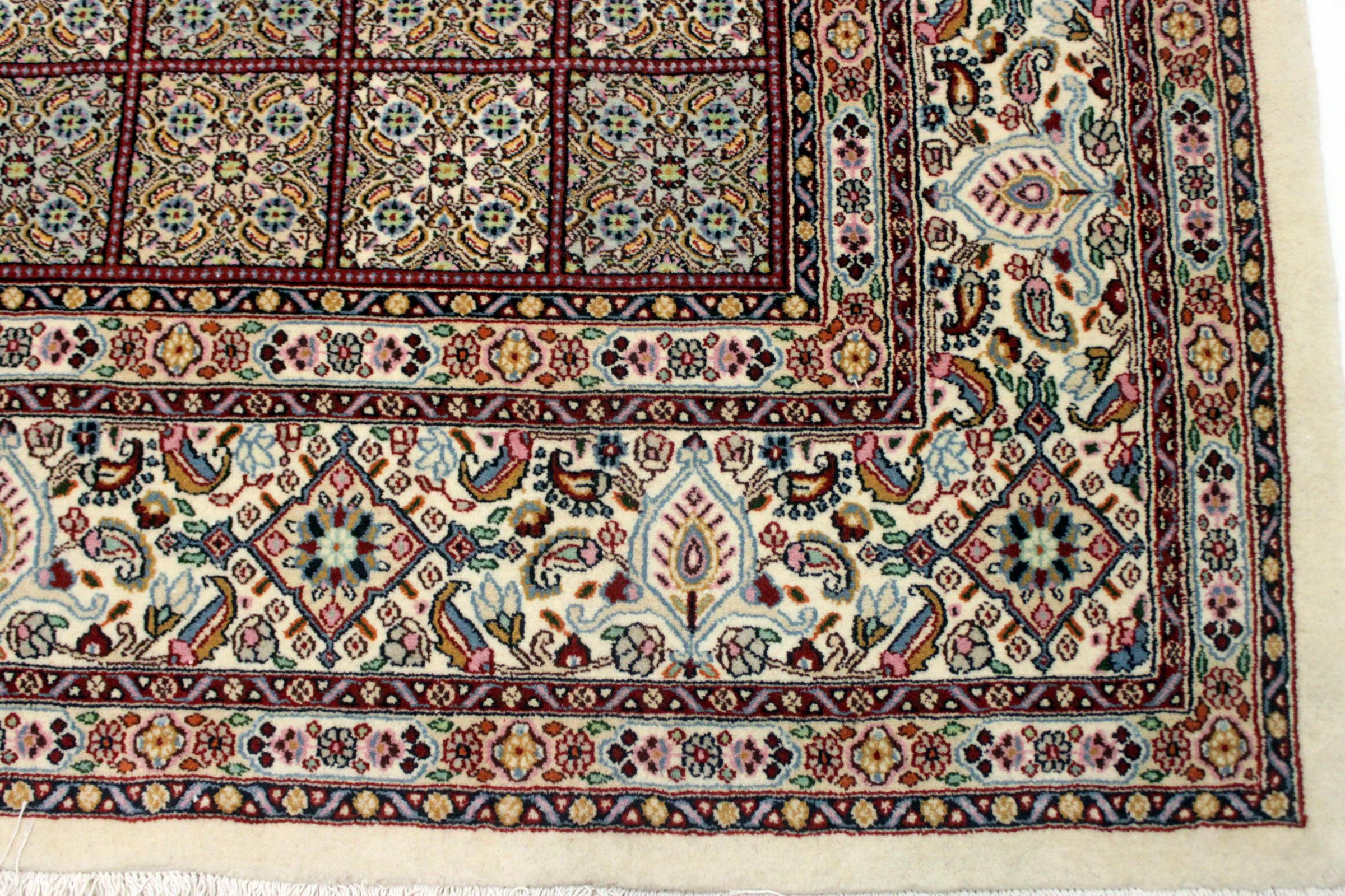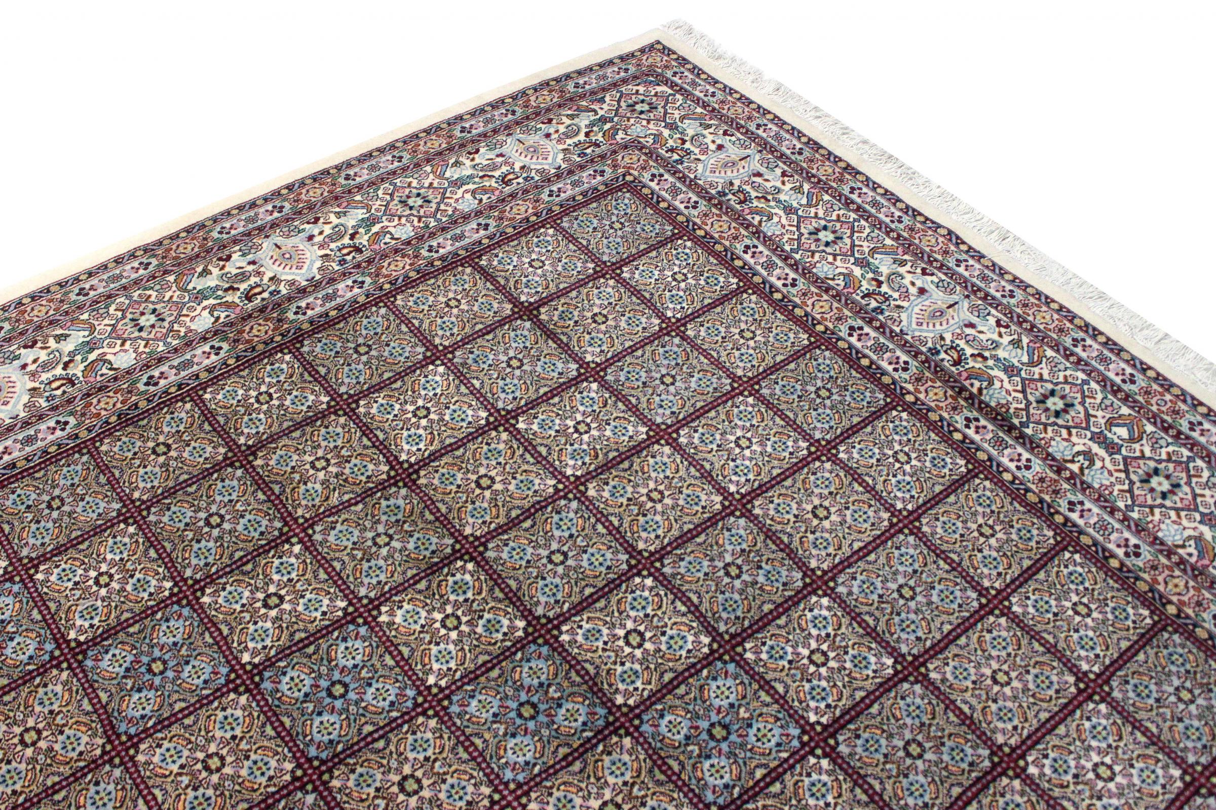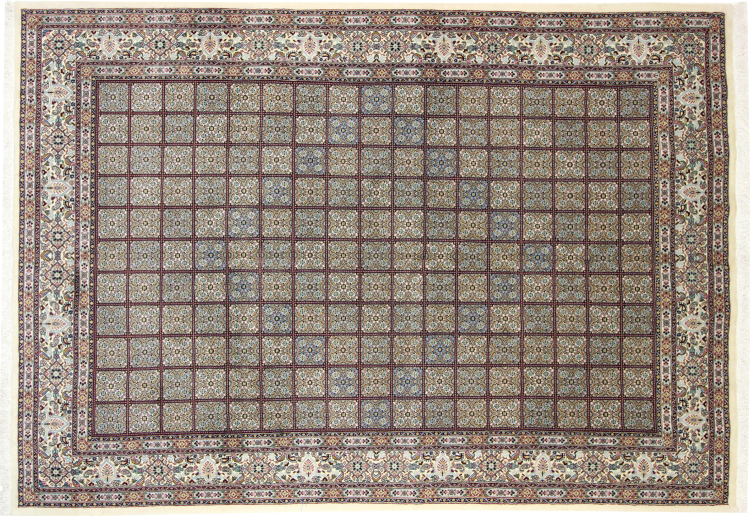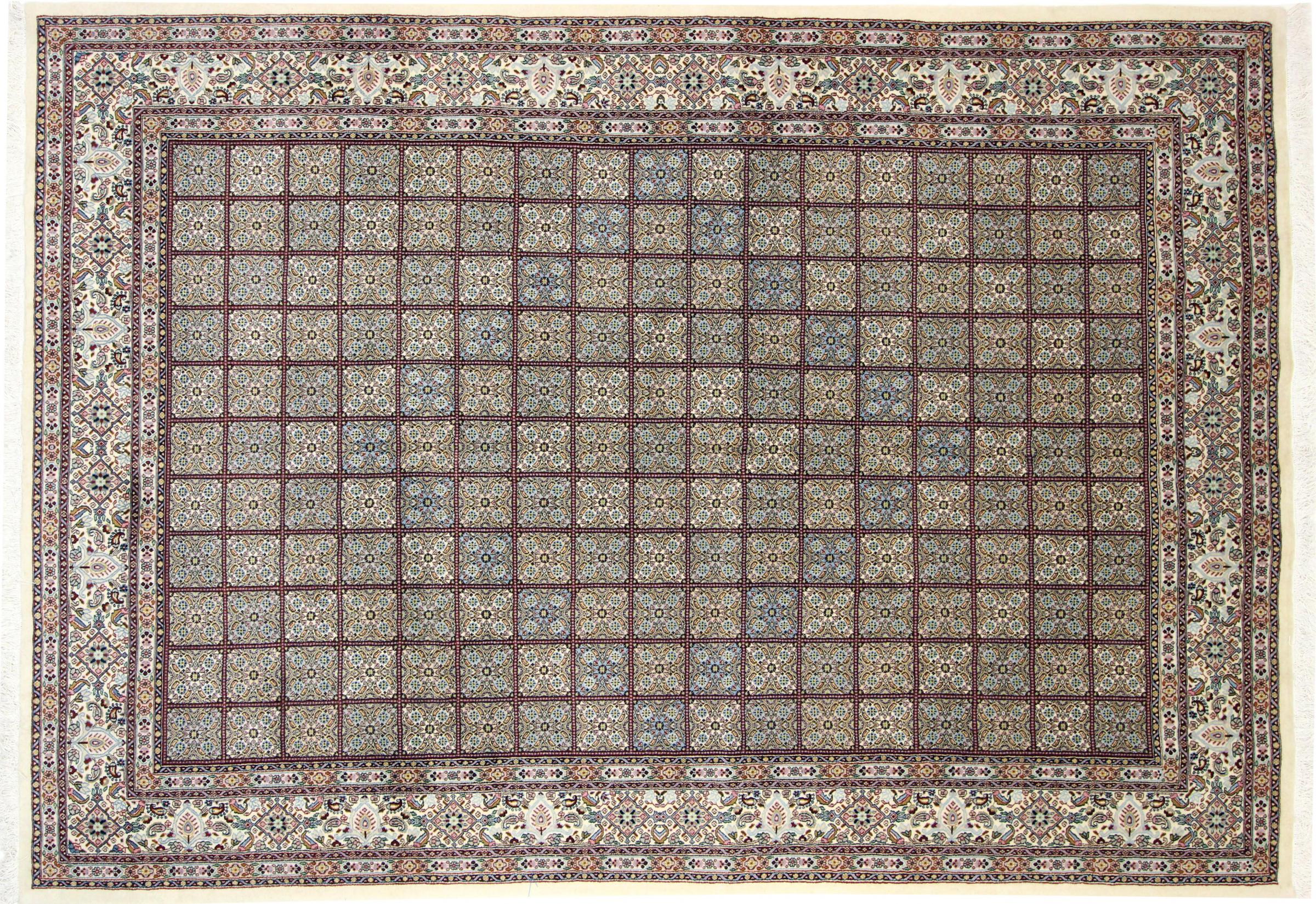 Este tapete de Moud, uma cidade situada 300 km a sul de Mashhad, impressiona à primeira vista. O padrão típico Herati ou desenho de jardim é apreciado por conhecedores e amantes de tapetes persas genuínos. Se procura um tapete feito à mão de excelente qualidade com um design muito distinto e caraterístico, está absolutamente certo com este tipo de tapete.