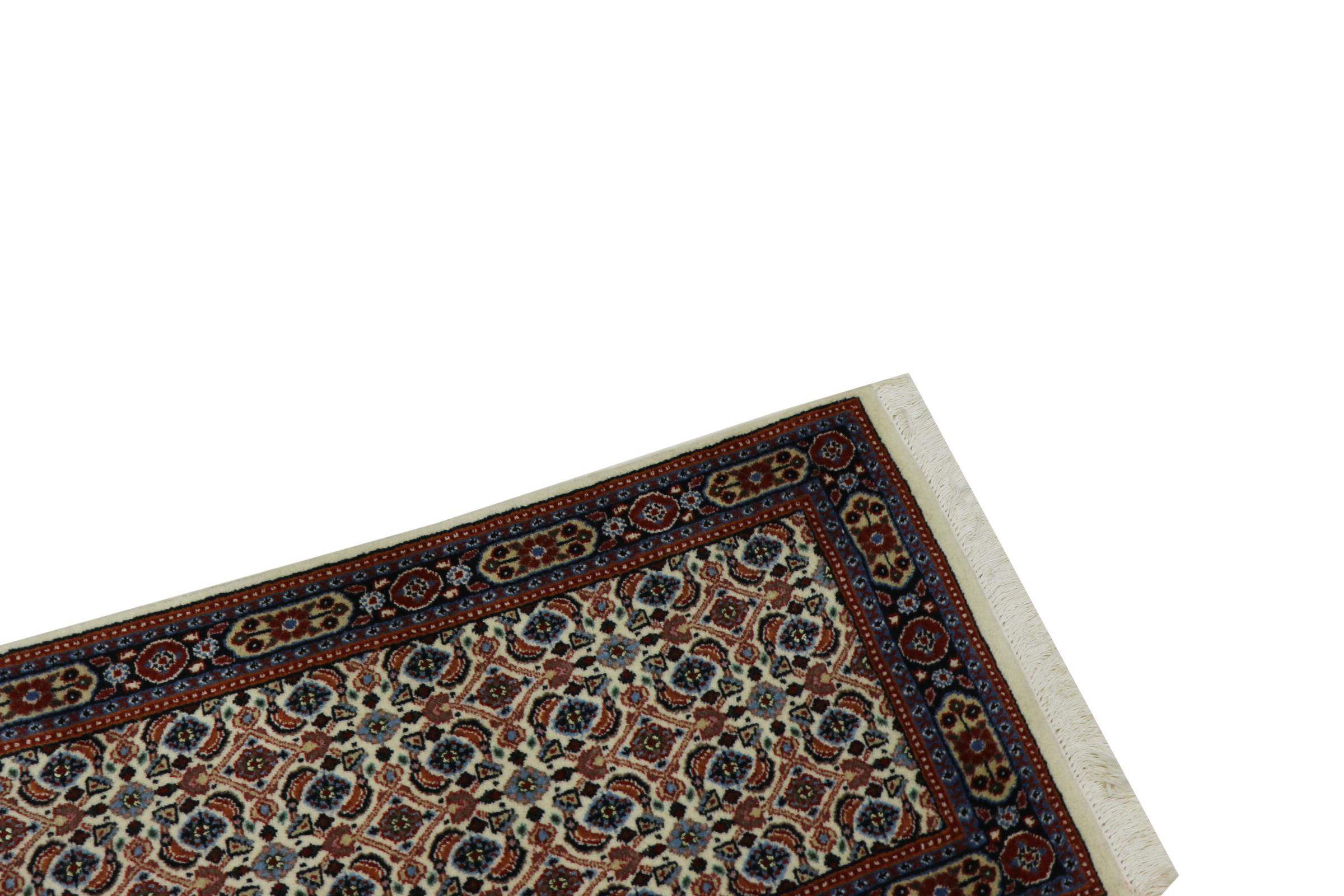 Este tapete de Moud, uma cidade situada 300 km a sul de Mashhad, impressiona à primeira vista. O padrão típico Herati ou desenho de jardim é apreciado por conhecedores e amantes de tapetes persas genuínos. Se procura um tapete feito à mão de excelente qualidade com um design muito distinto e caraterístico, está absolutamente certo com este tipo de tapete.