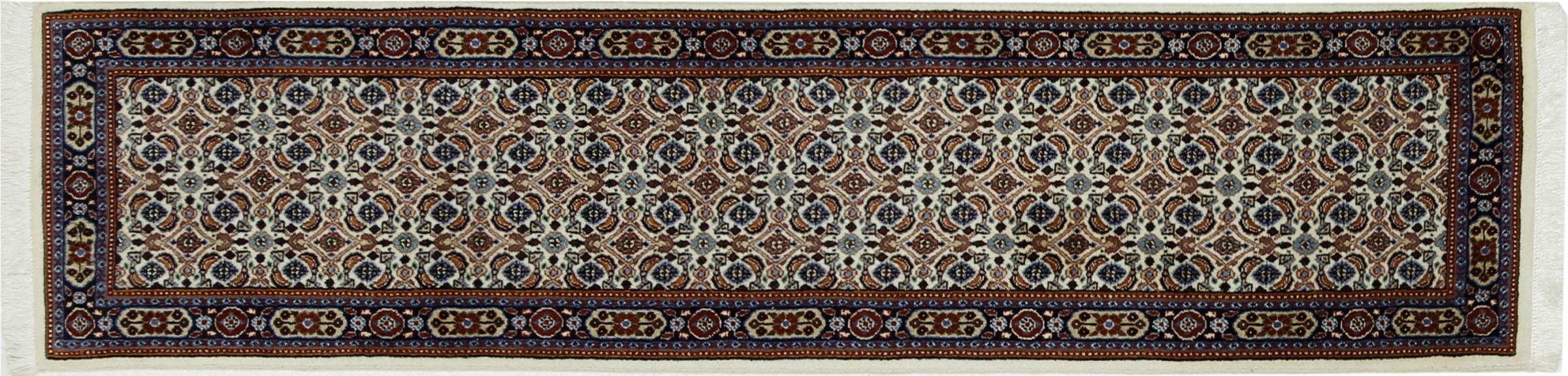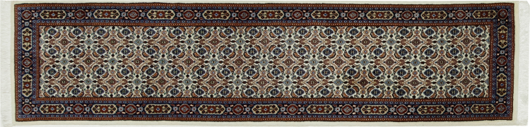 Nº do Tapete: 303995001022044 Tamanho: 191x46 cm Espessura: aproximadamente 5 mm Nós: 440 000 - 490 000 / m² Processamento: Atado à mão Veludo: Lã com seda Urdidura: Algodão Origem: Pérsia / Iran Idade: Novo Peso: aproximadamente 3 kg Em armazém: Único - Apenas 1 em stock