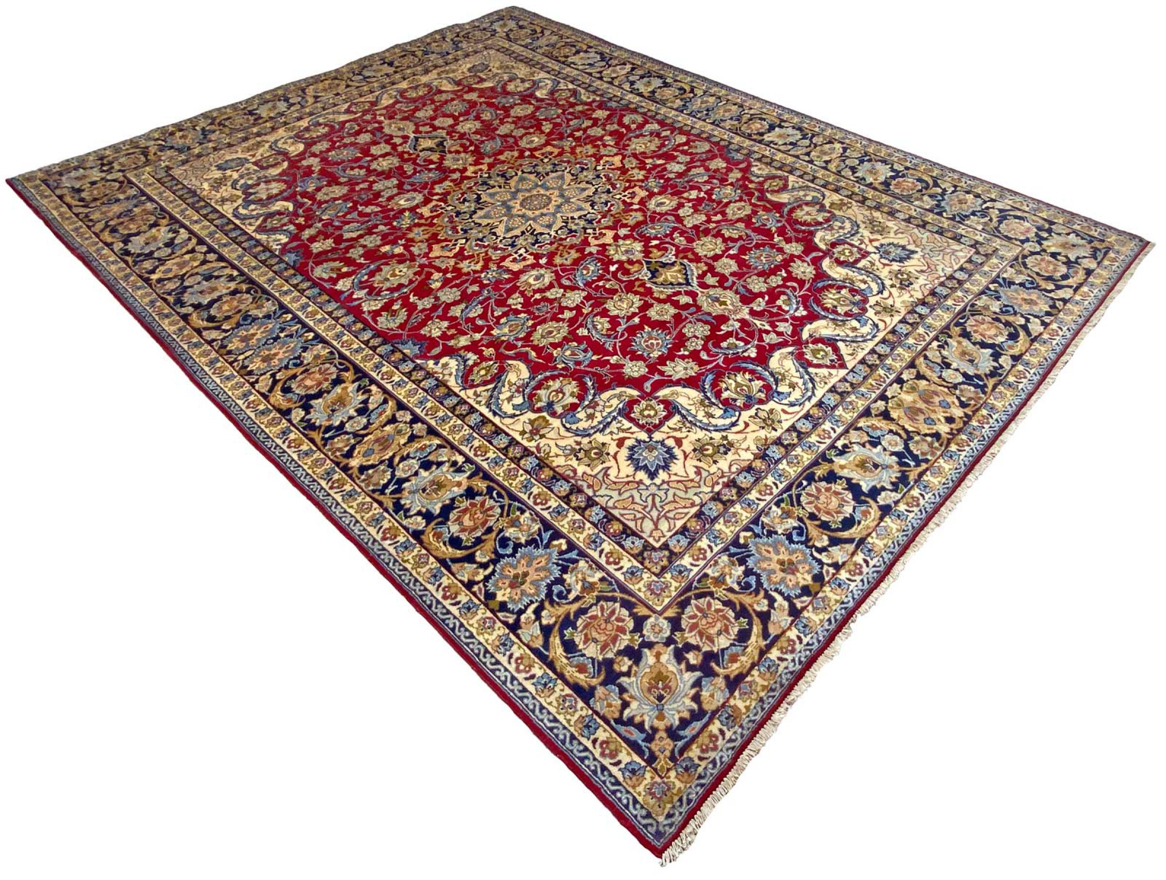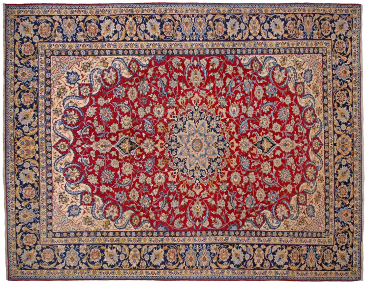 Este tapete vem do Irão (antiga Pérsia) e, como tapete persa, goza da reputação provavelmente mais elevada entre todos os tipos de tapetes de malha à mão. Nenhuma outra região se debruça sobre uma tradição tão longa de atadura de tapetes como o Irão. Por isso, os tapetes provavelmente mais finos e elaborados vêm aqui. A robustez, durabilidade e qualidade do nó persa são ainda hoje inigualáveis. Os tapetes persas têm geralmente o nome da sua região de origem. Assim, um Nain, um Ghom, bem como um tapete Isfahan vem da cidade do mesmo nome no Irão.