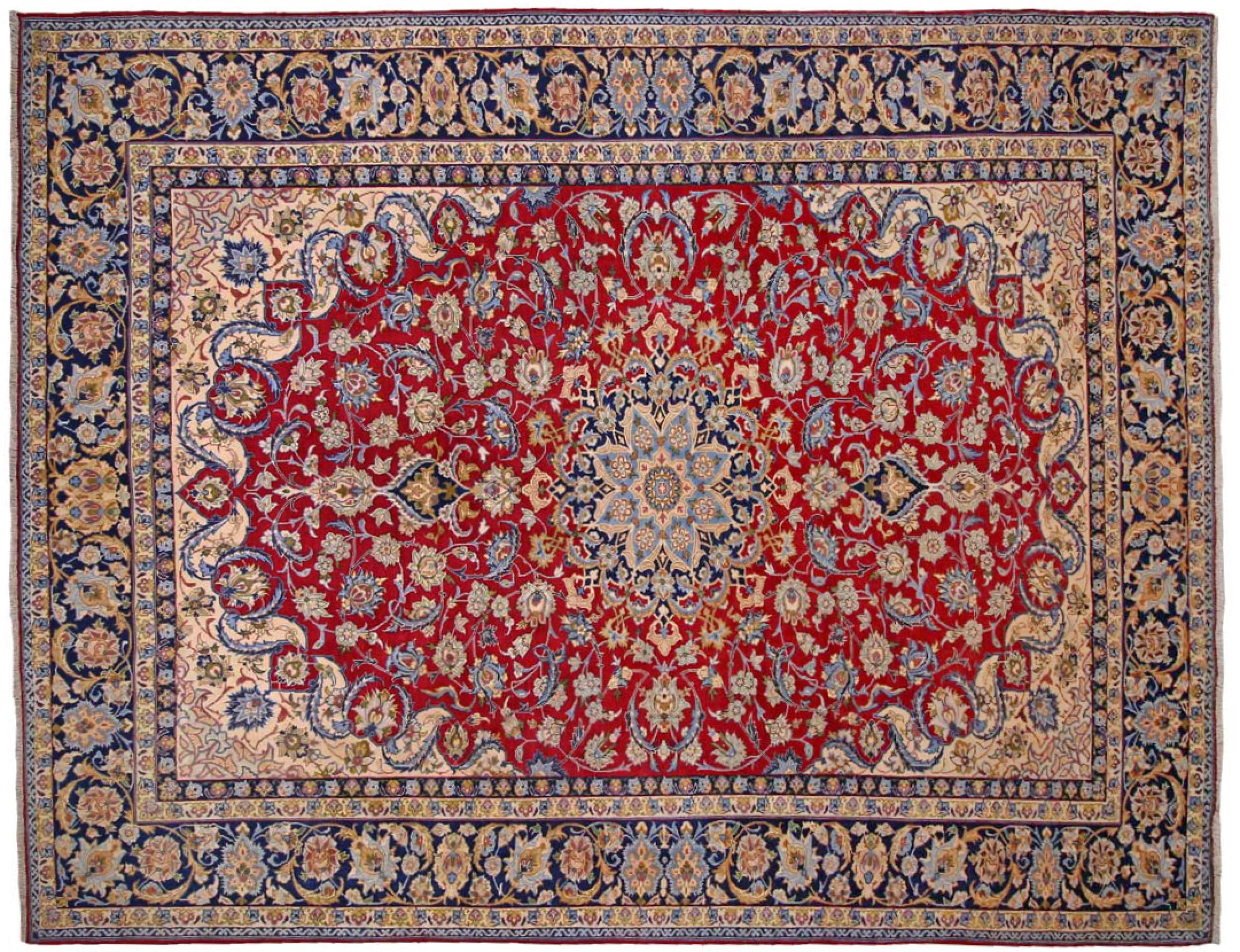 Nº do Tapete: 303133001030194 Tamanho: 383x301 cm Espessura: aproximadamente 12 mm Nós: 128 000 - 160 000 / m² Processamento: Atado à mão Veludo: Lã tecida à mão Urdidura: Algodão Origem: Pérsia / Iran Idade: Novo Peso: aproximadamente 40 kg Em armazém: Único - Apenas 1 em stock