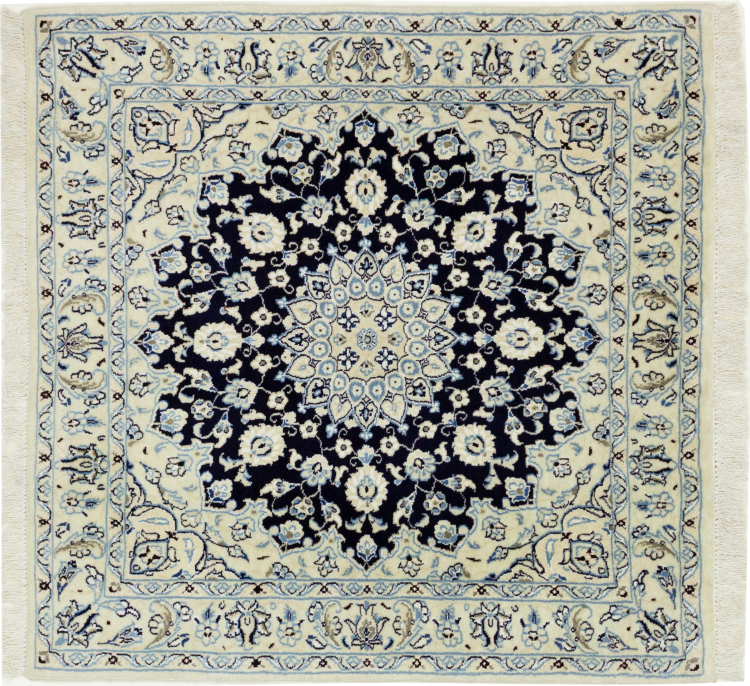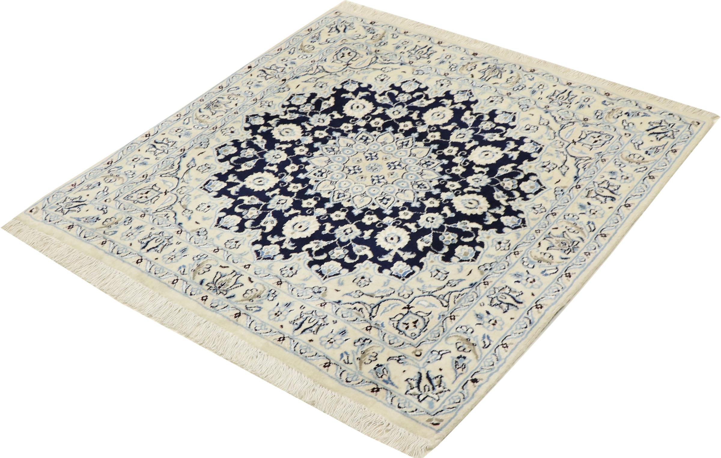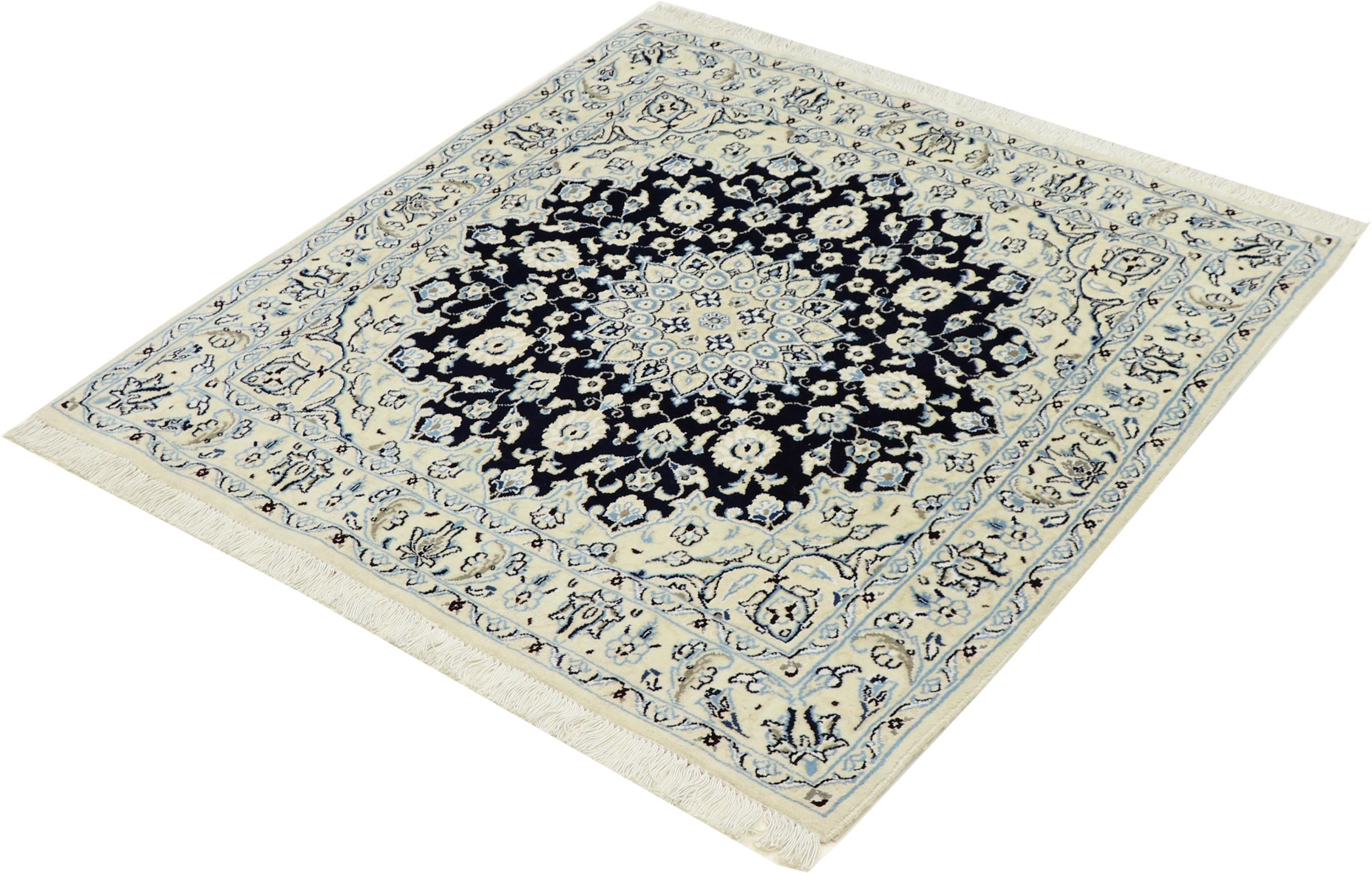Este tapete Nain é classificado como 9La. A excelente qualidade e o belo desenho oriental com os seus padrões curvilíneos farão as delícias de qualquer comprador. Este tapete persa foi feito à mão na cidade de Nain, que fica na extremidade ocidental do deserto de Dasht-e-Kavir, a partir de lã de alta qualidade e seda natural. 9La Nain são claramente mais finos do que um 12La e já mostram belos detalhes.