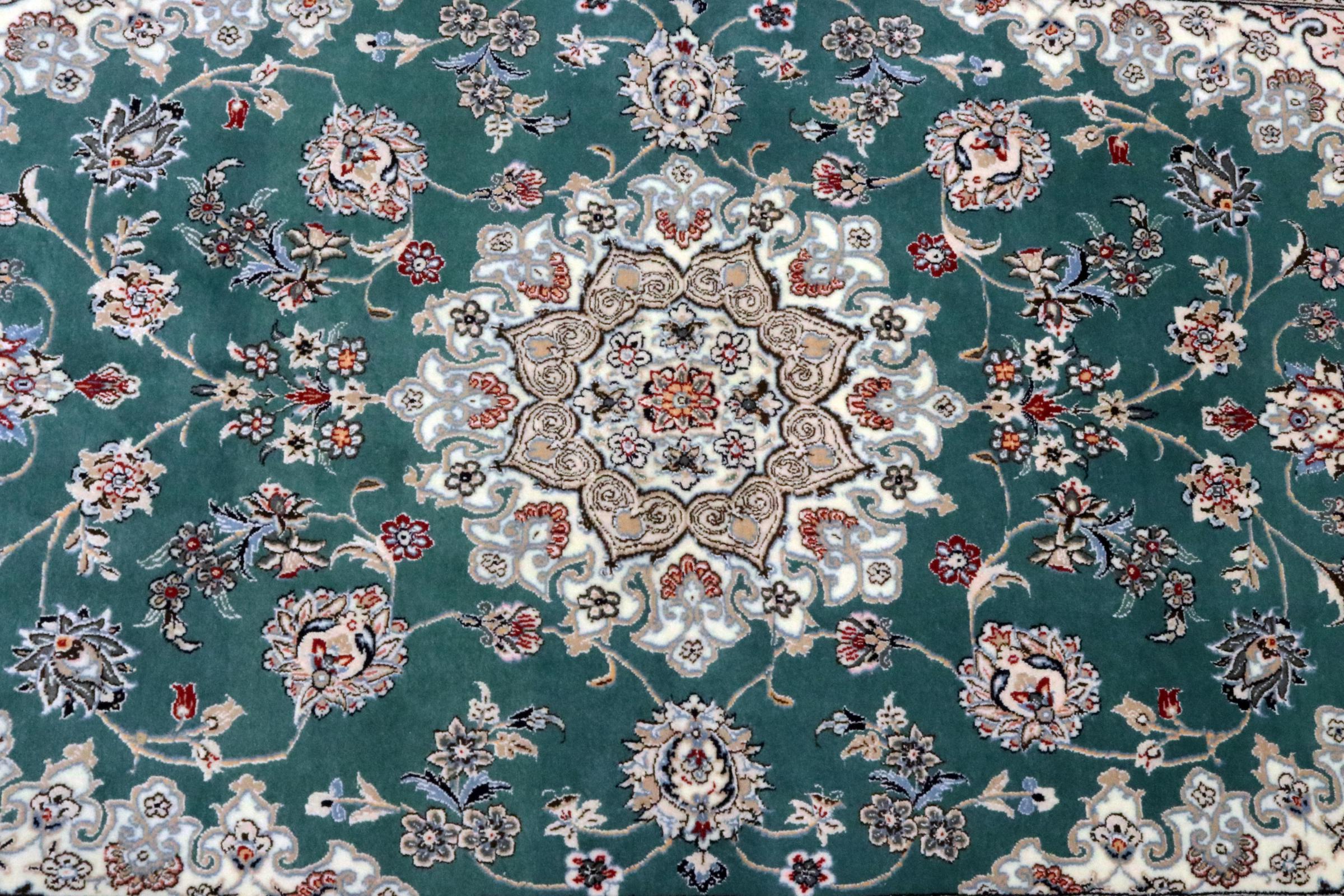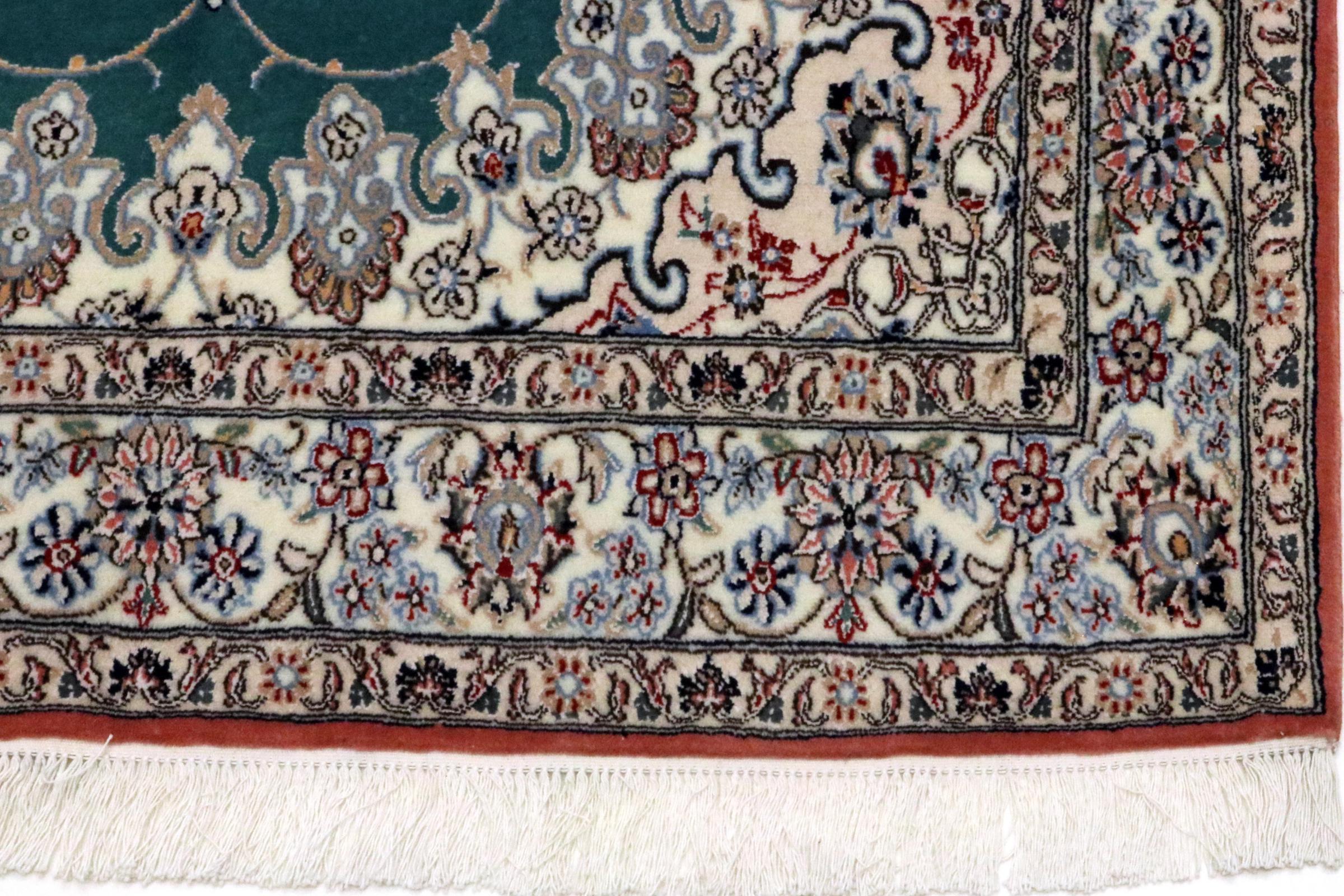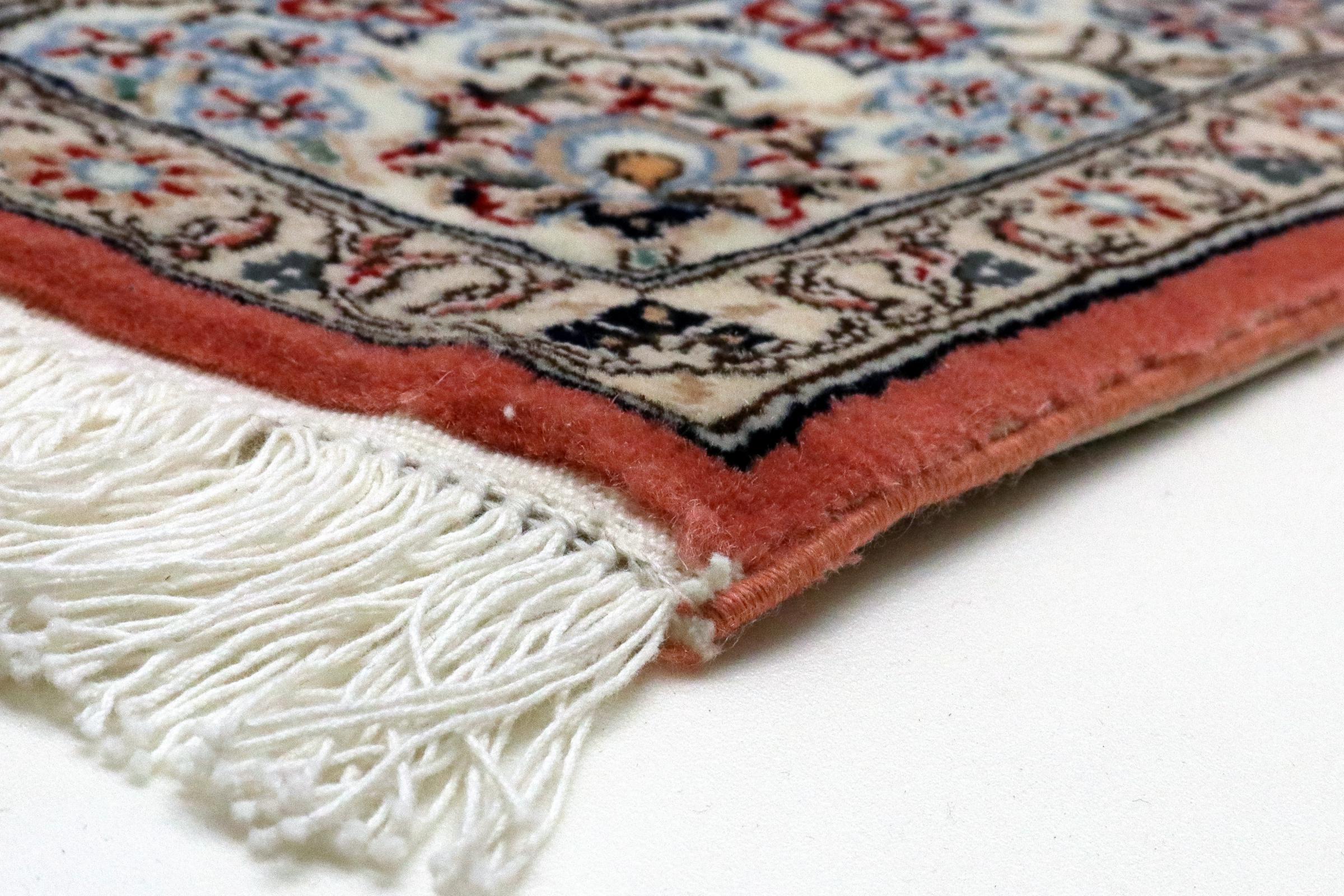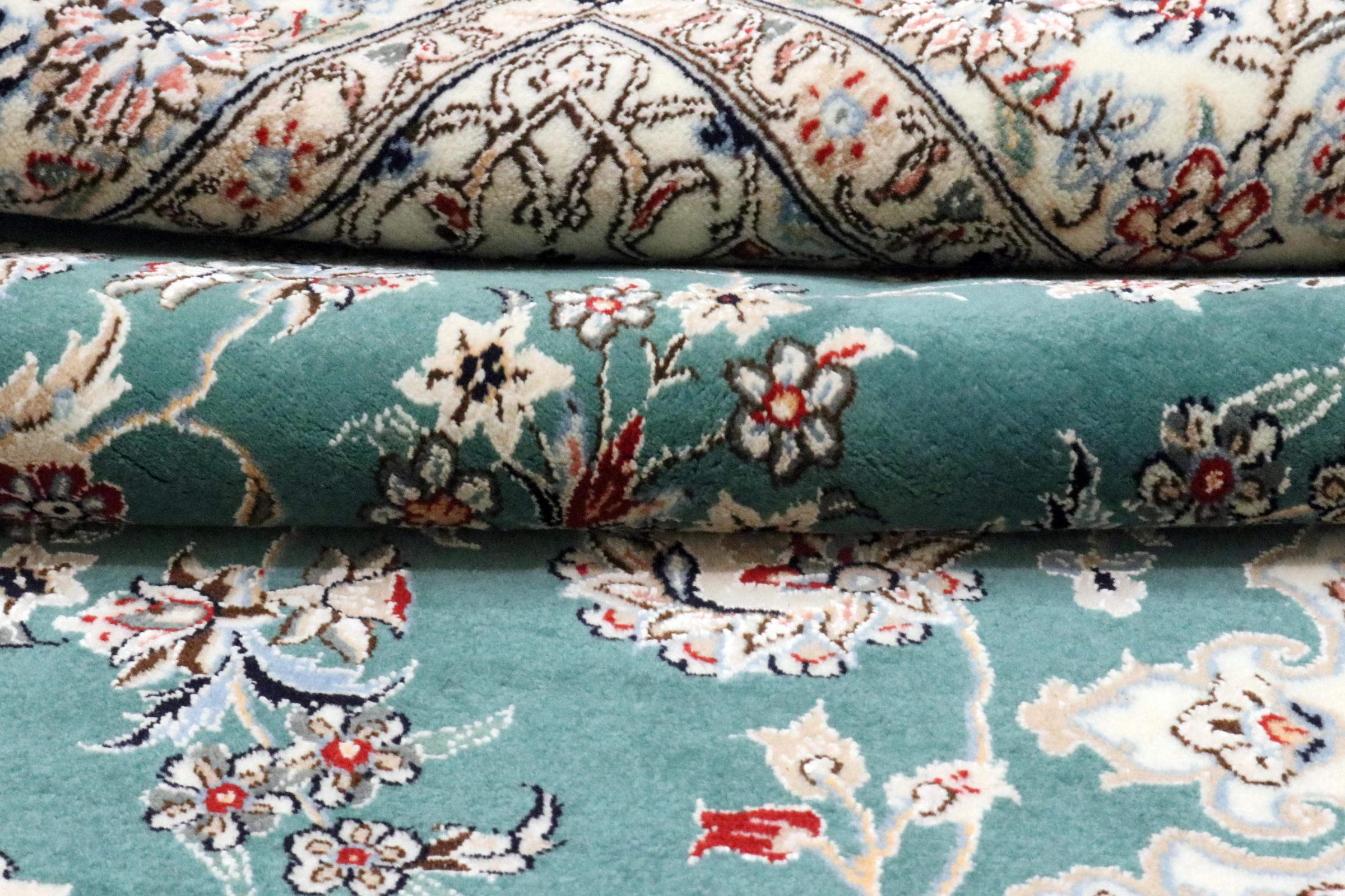 Este tapete Nain combina qualidade, tradição e um design inconfundível. Foi feito à mão na cidade deserta de mesmo nome, Nain, com lã de cortiça de alta qualidade e seda natural. Os amantes dos tapetes valiosos do Irã vão gostar deste tapete persa. Com os tapetes Nain da classificação 6La e 4La você tem uma verdadeira obra de arte com um nível de detalhe incrível na qual você pode literalmente se perder. Os tapetes Nain 4La são difíceis de encontrar hoje porque são extremamente complexos de produzir.