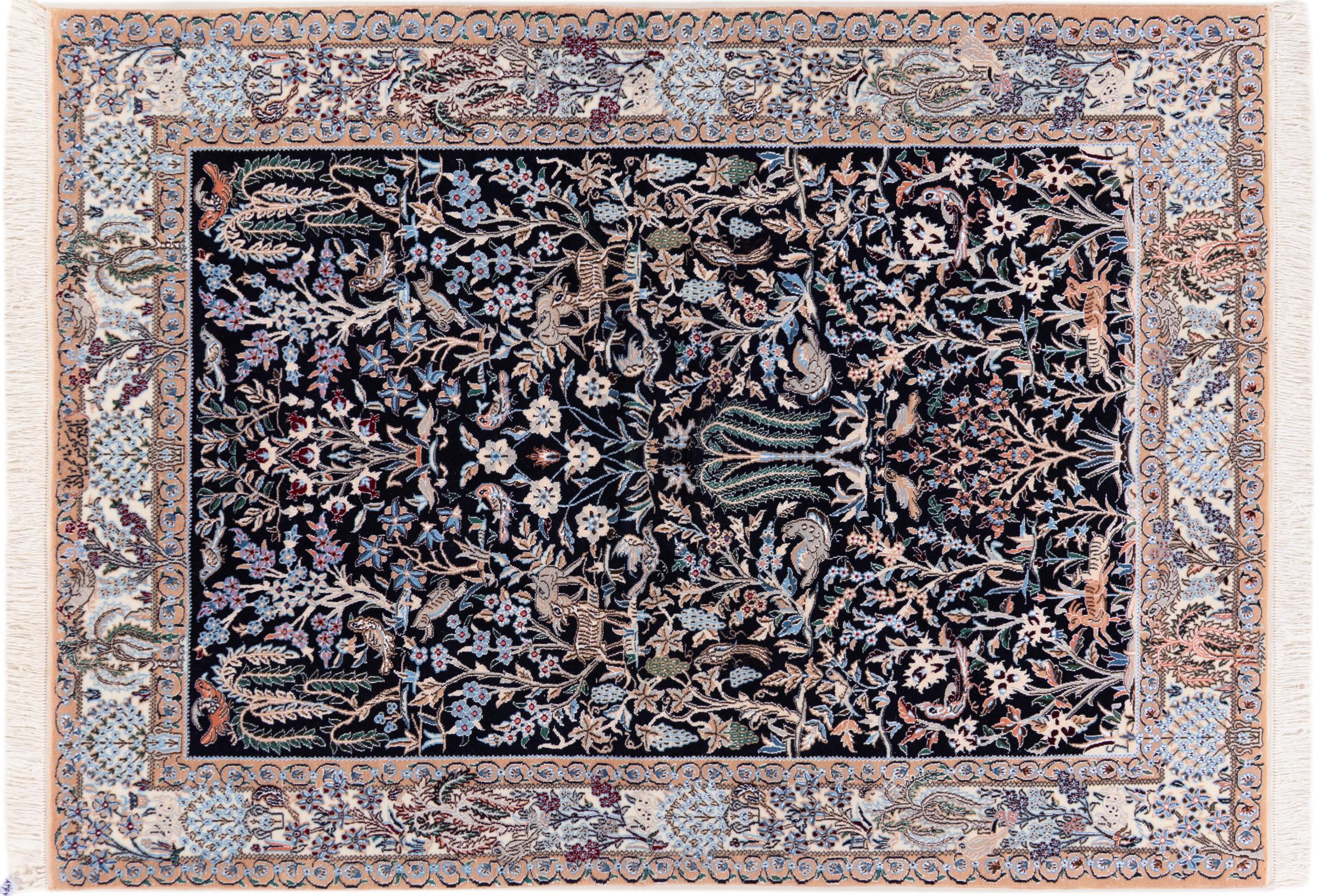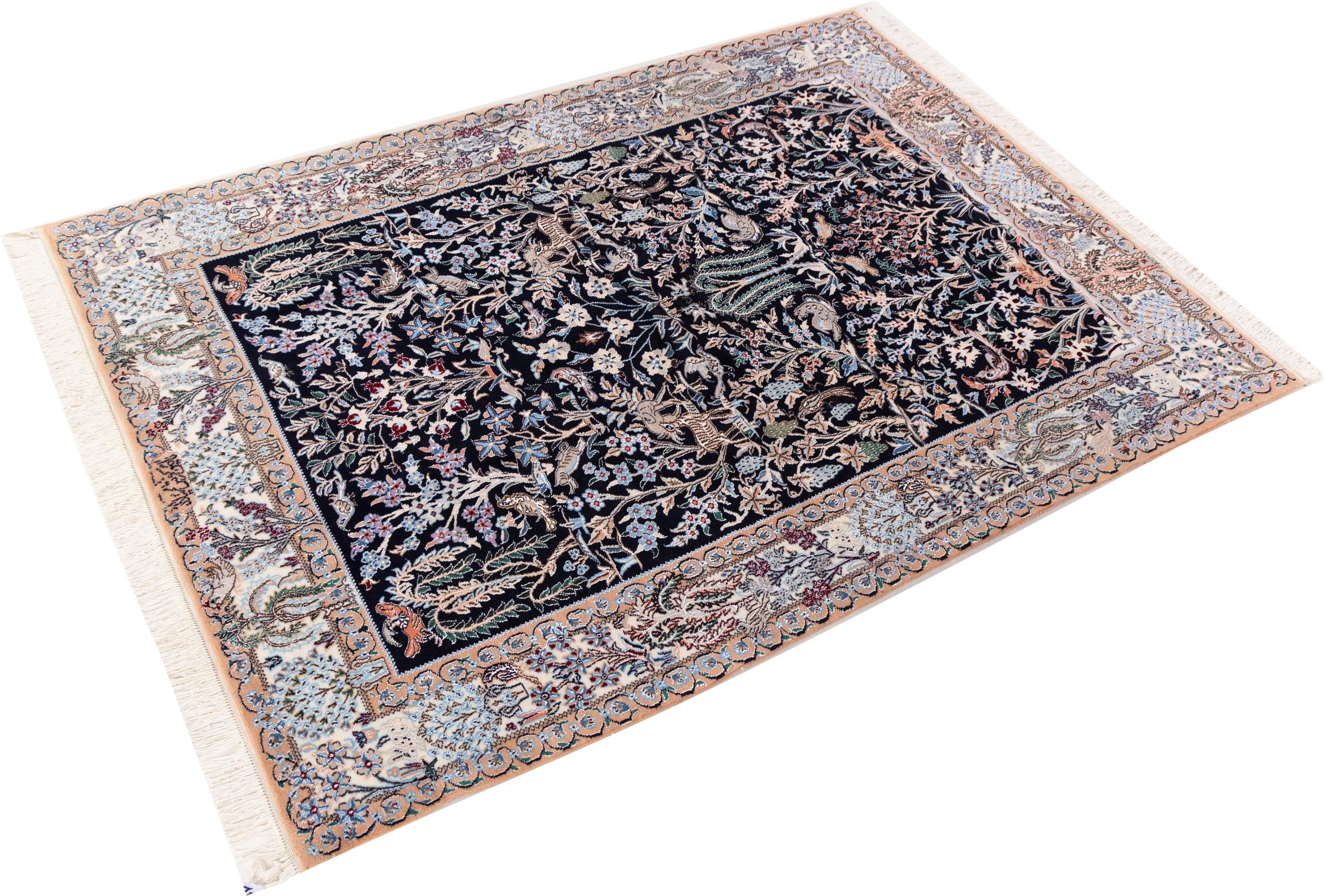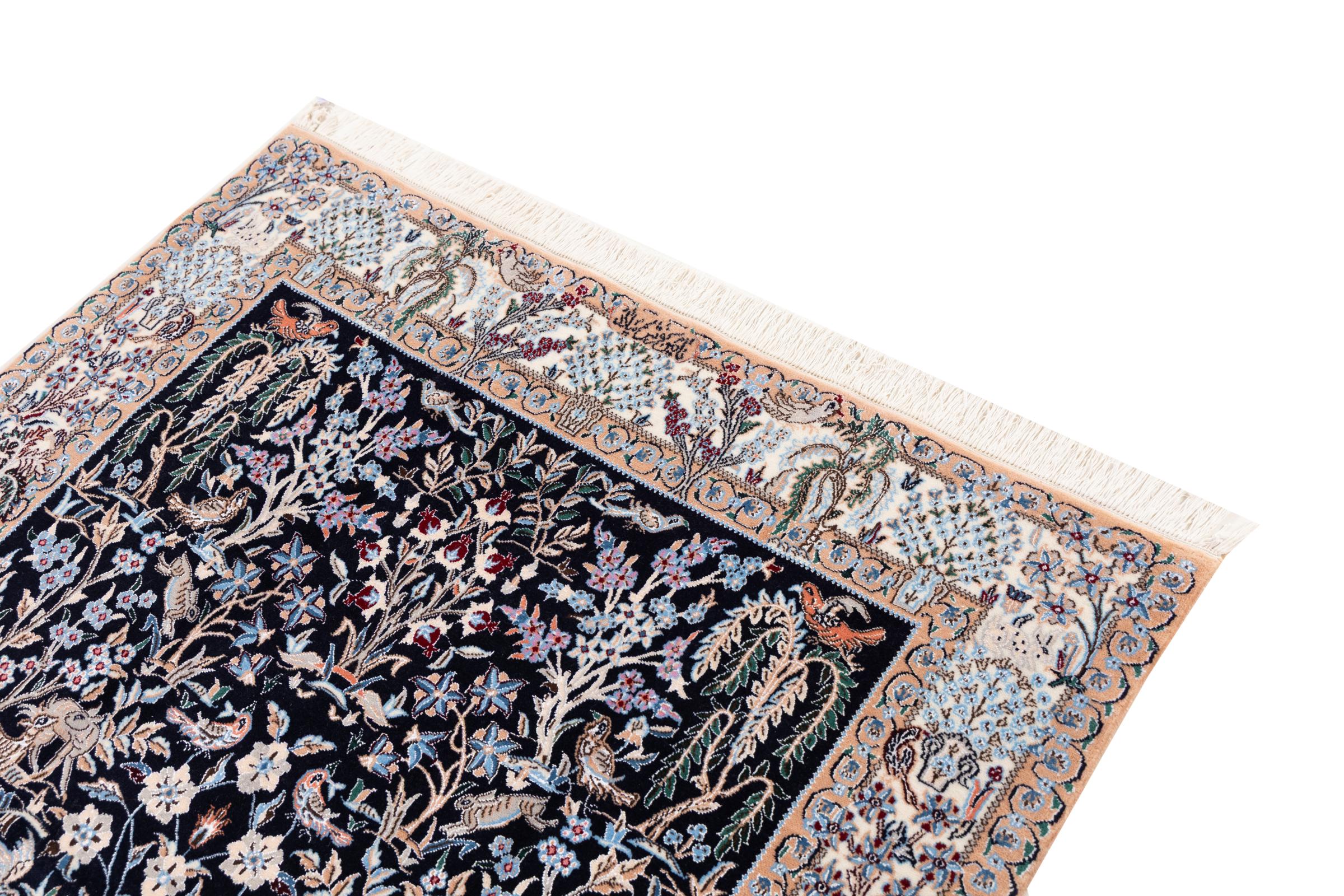 Nº do Tapete: 3069180021694 Tamanho: 200x140 cm Espessura: aproximadamente 8 mm Nós: 440 000 - 490 000 / m² Processamento: Atado à mão Veludo: Lã com seda Urdidura: Algodão Origem: Pérsia / Iran Idade: Novo Peso: aproximadamente 10 kg Em armazém: Único - Apenas 1 em stock