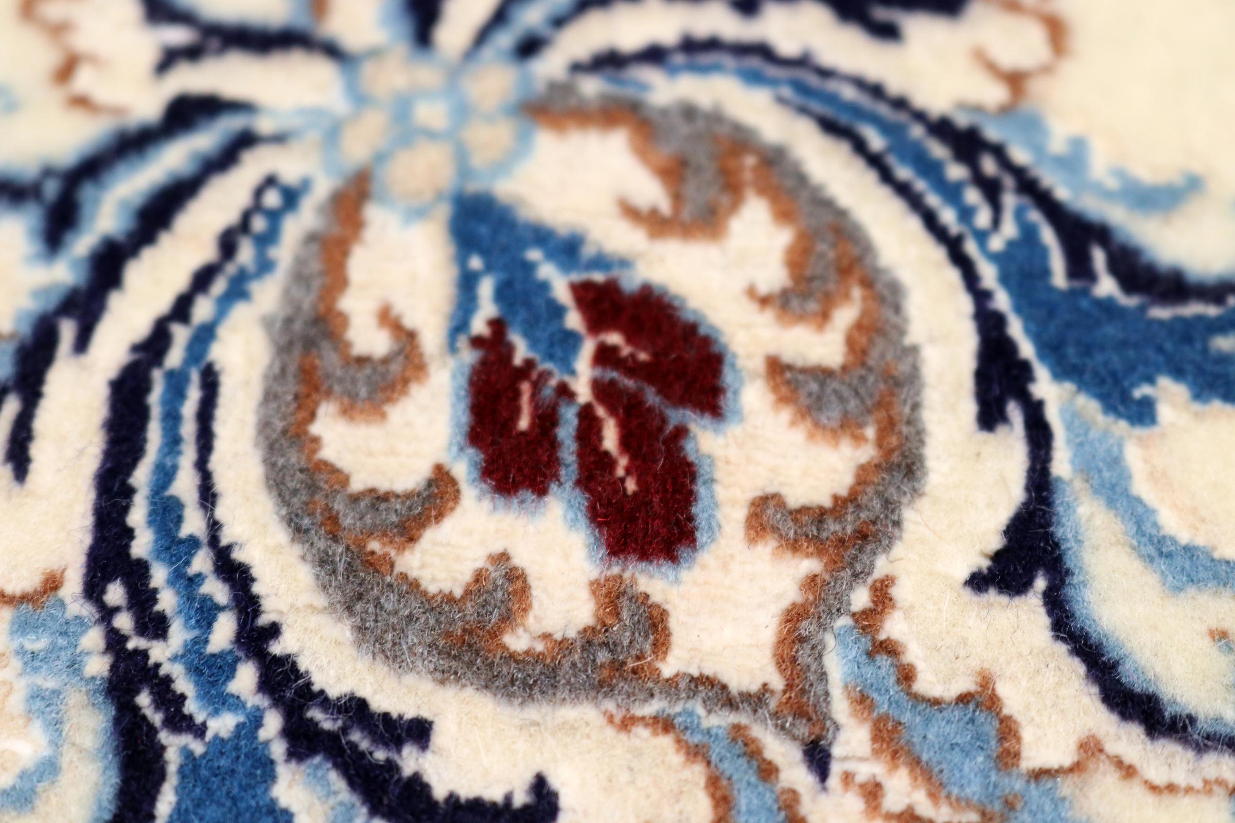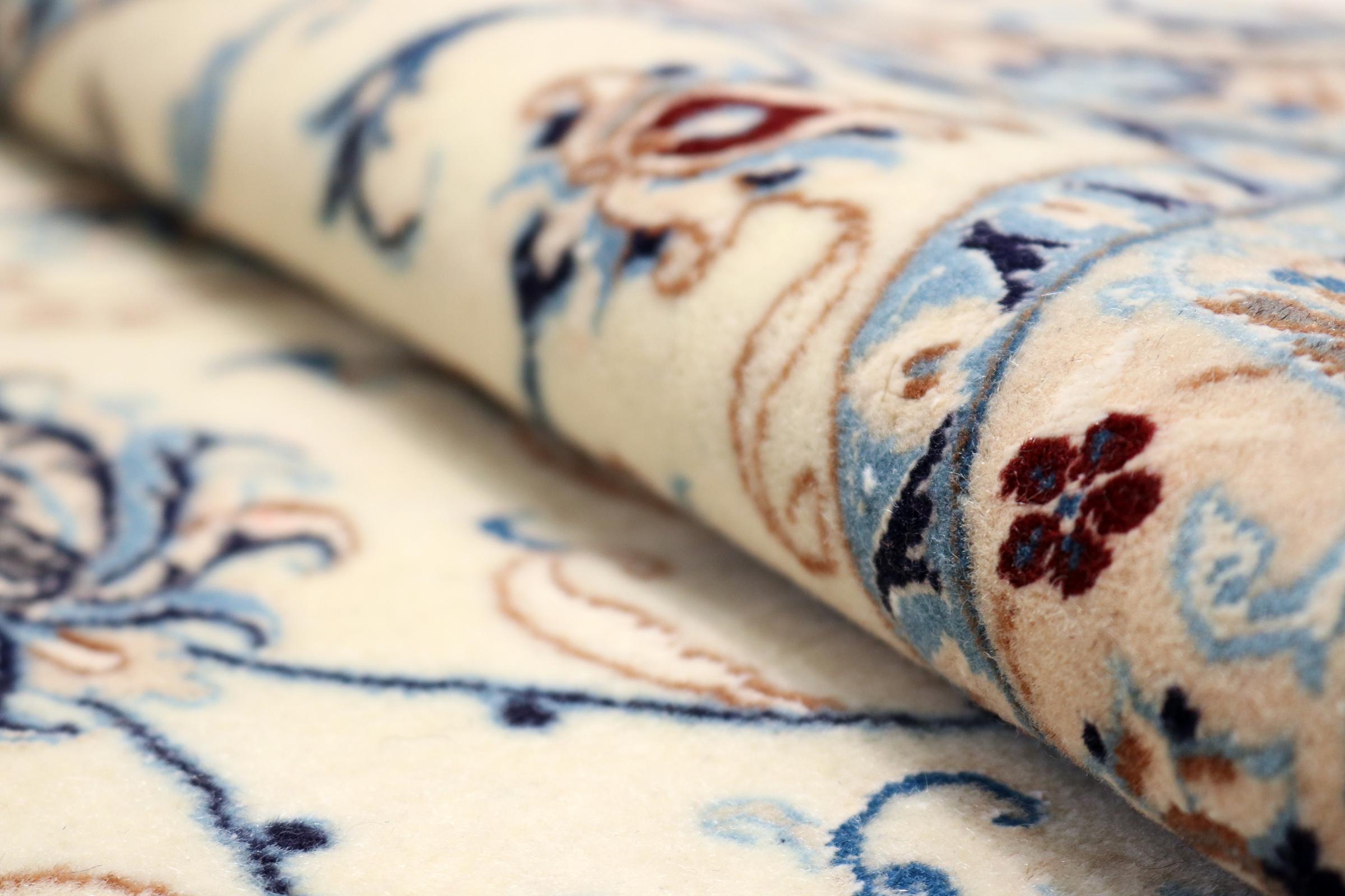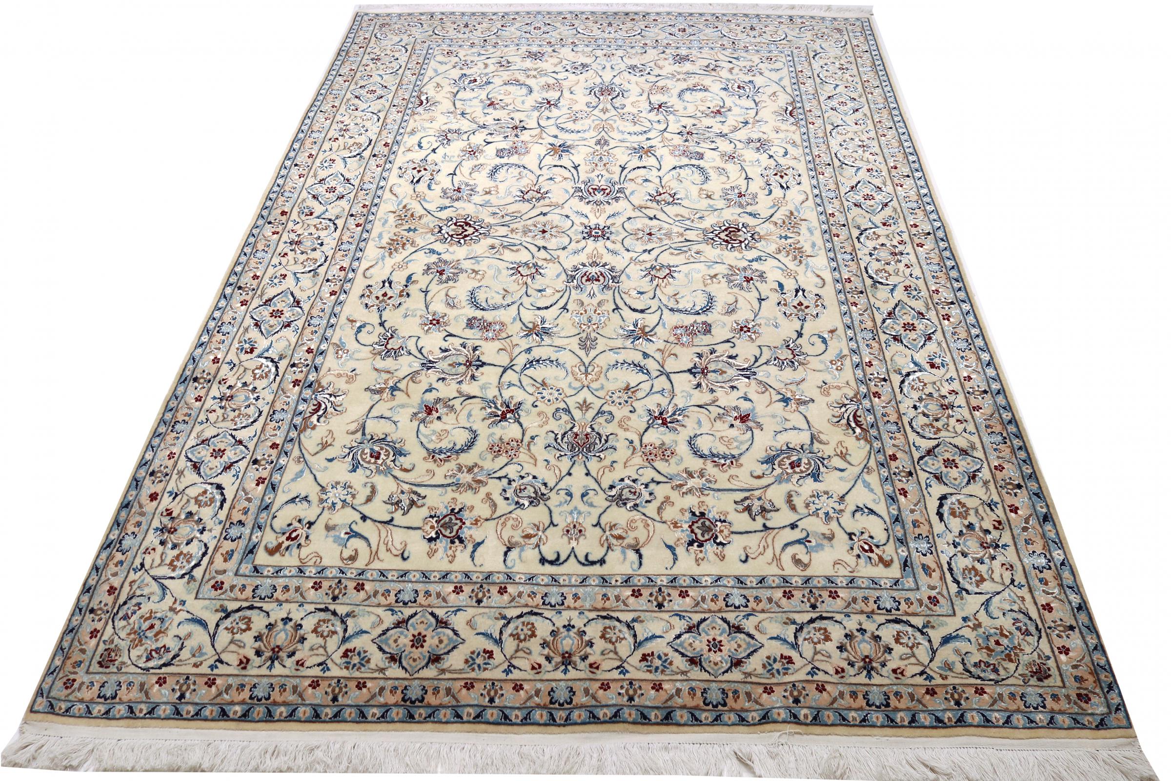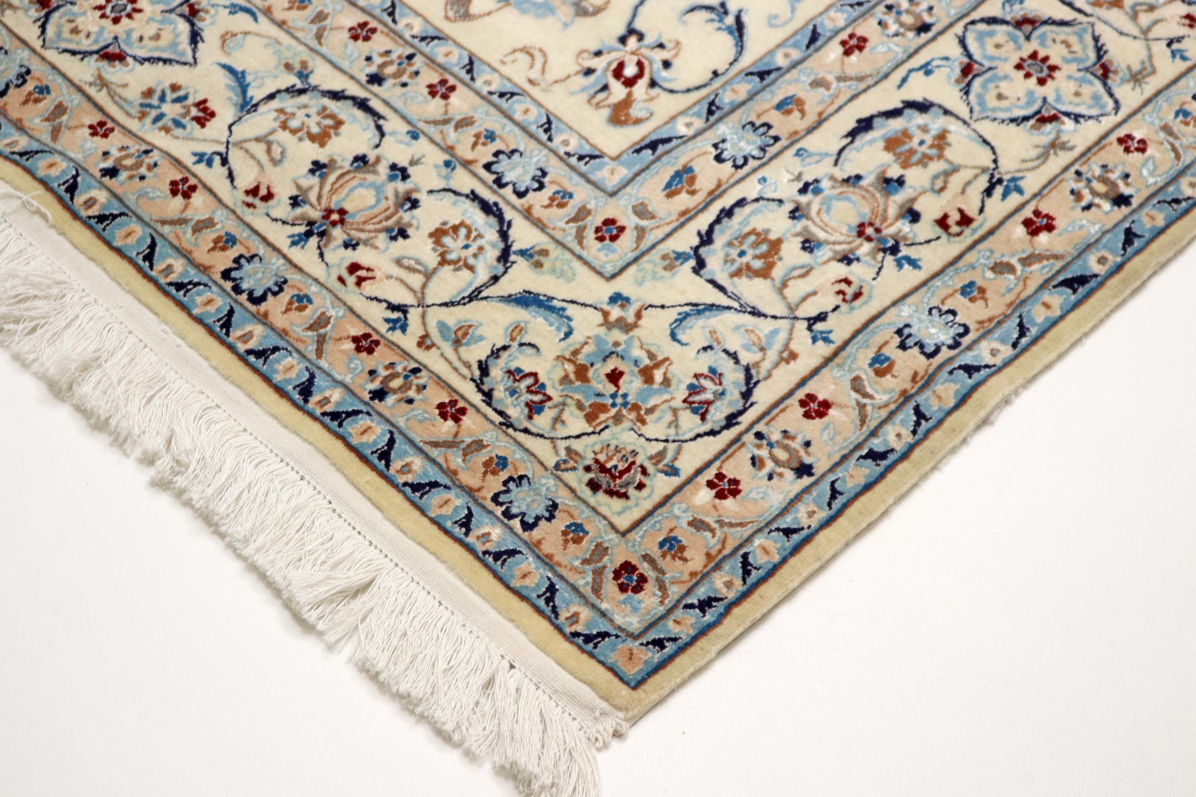 Este tapete Nain combina qualidade, tradição e um design inconfundível. Foi feito à mão na cidade deserta de mesmo nome, Nain, com lã de cortiça de alta qualidade e seda natural. Os amantes dos tapetes valiosos do Irã vão gostar deste tapete persa. Com os tapetes Nain da classificação 6La e 4La você tem uma verdadeira obra de arte com um nível de detalhe incrível na qual você pode literalmente se perder. Os tapetes Nain 4La são difíceis de encontrar hoje porque são extremamente complexos de produzir.