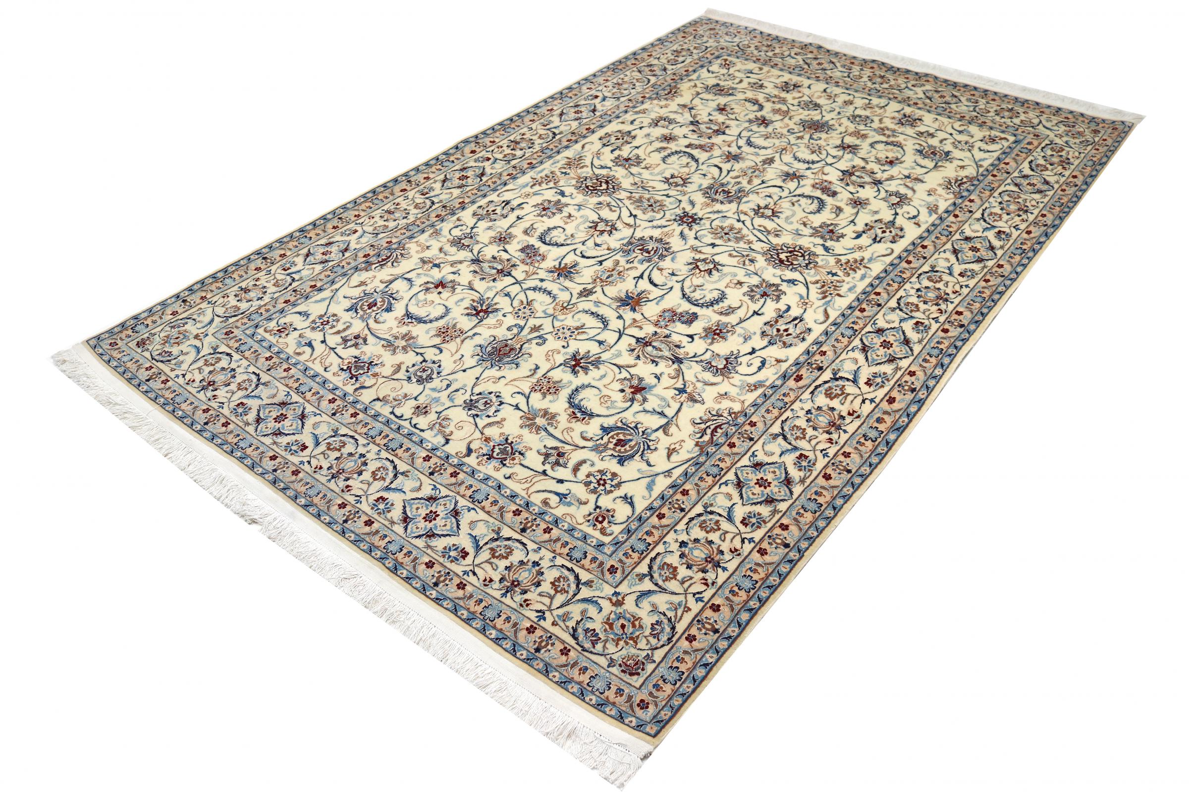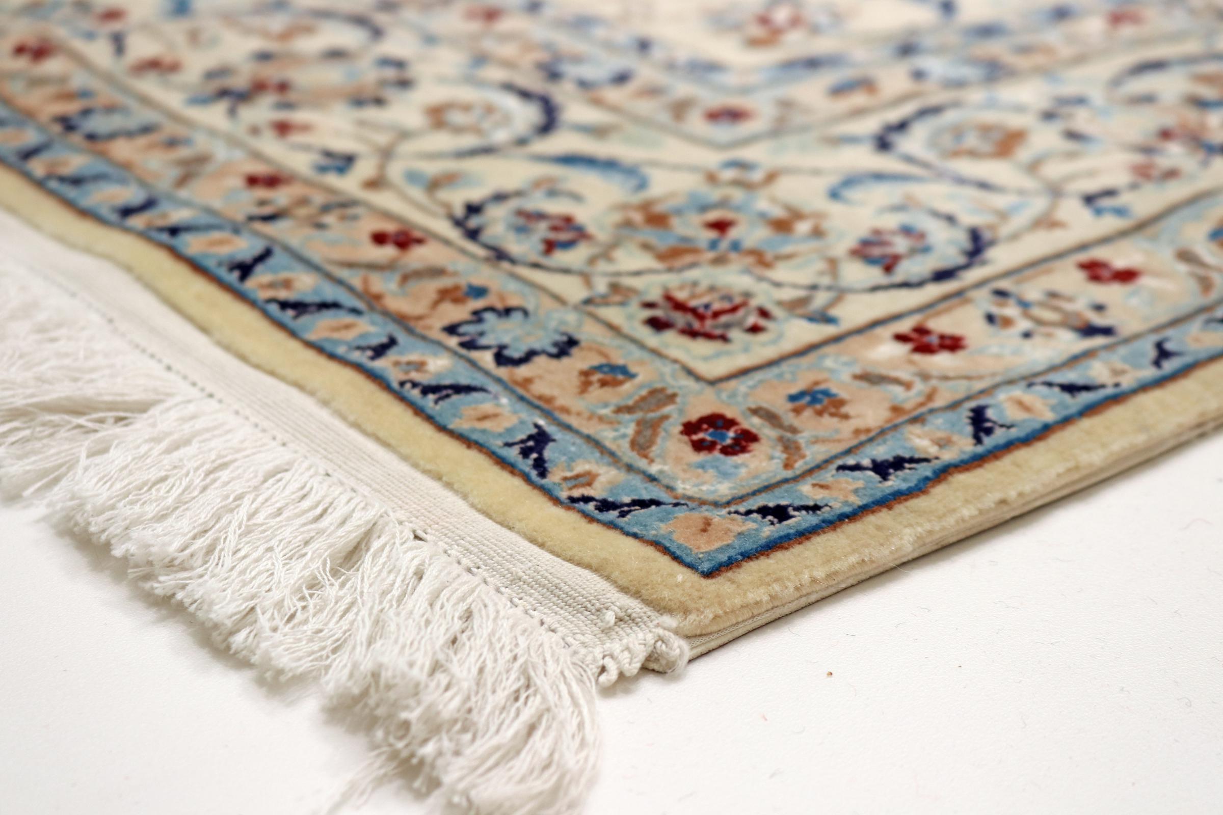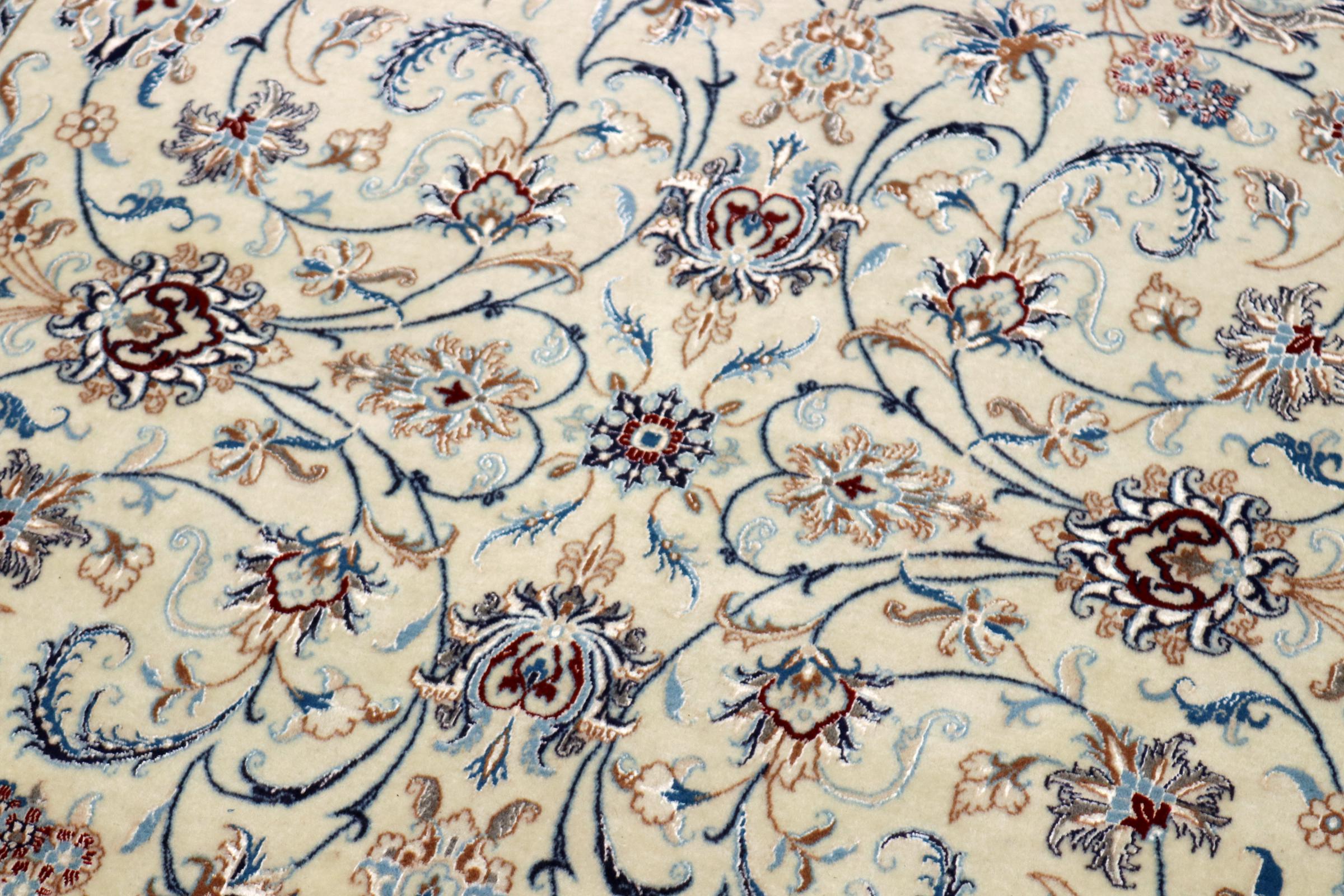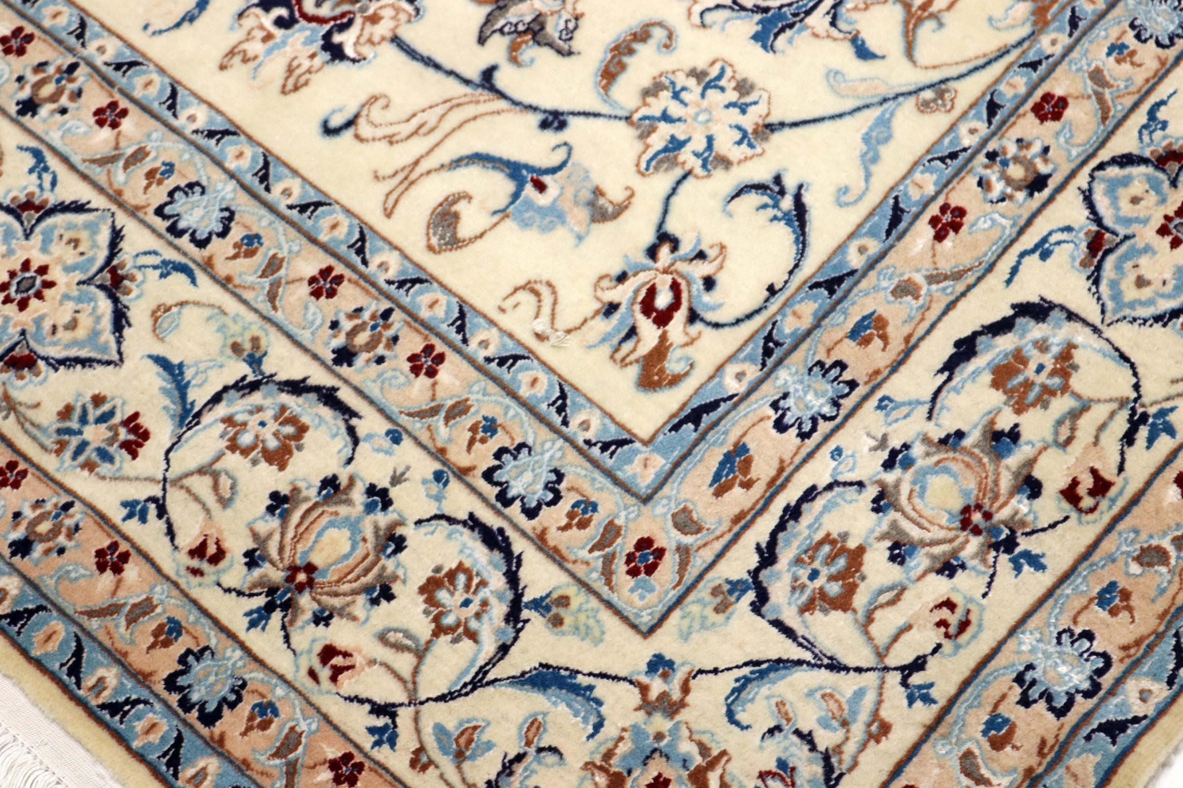 Este tapete Nain combina qualidade, tradição e um design inconfundível. Foi feito à mão na cidade deserta de mesmo nome, Nain, com lã de cortiça de alta qualidade e seda natural. Os amantes dos tapetes valiosos do Irã vão gostar deste tapete persa. Com os tapetes Nain da classificação 6La e 4La você tem uma verdadeira obra de arte com um nível de detalhe incrível na qual você pode literalmente se perder. Os tapetes Nain 4La são difíceis de encontrar hoje porque são extremamente complexos de produzir.