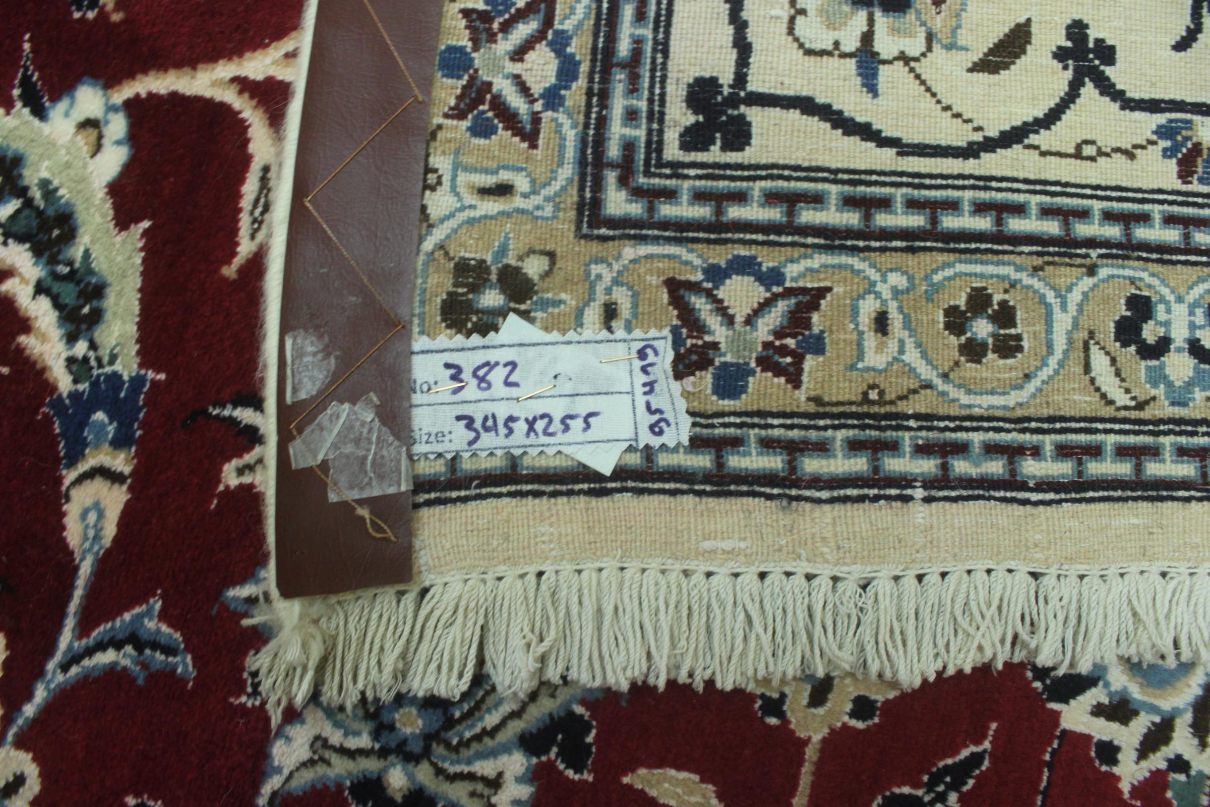 Nº do Tapete: 31924006929377 Tamanho: 344x256 cm Espessura: aproximadamente 8 mm Nós: 320 000 - 360 000 / m² Processamento: Atado à mão Veludo: Lã com seda Urdidura: Algodão Origem: Pérsia / Iran Idade: Novo Peso: aproximadamente 31 kg Em armazém: Único - Apenas 1 em stock