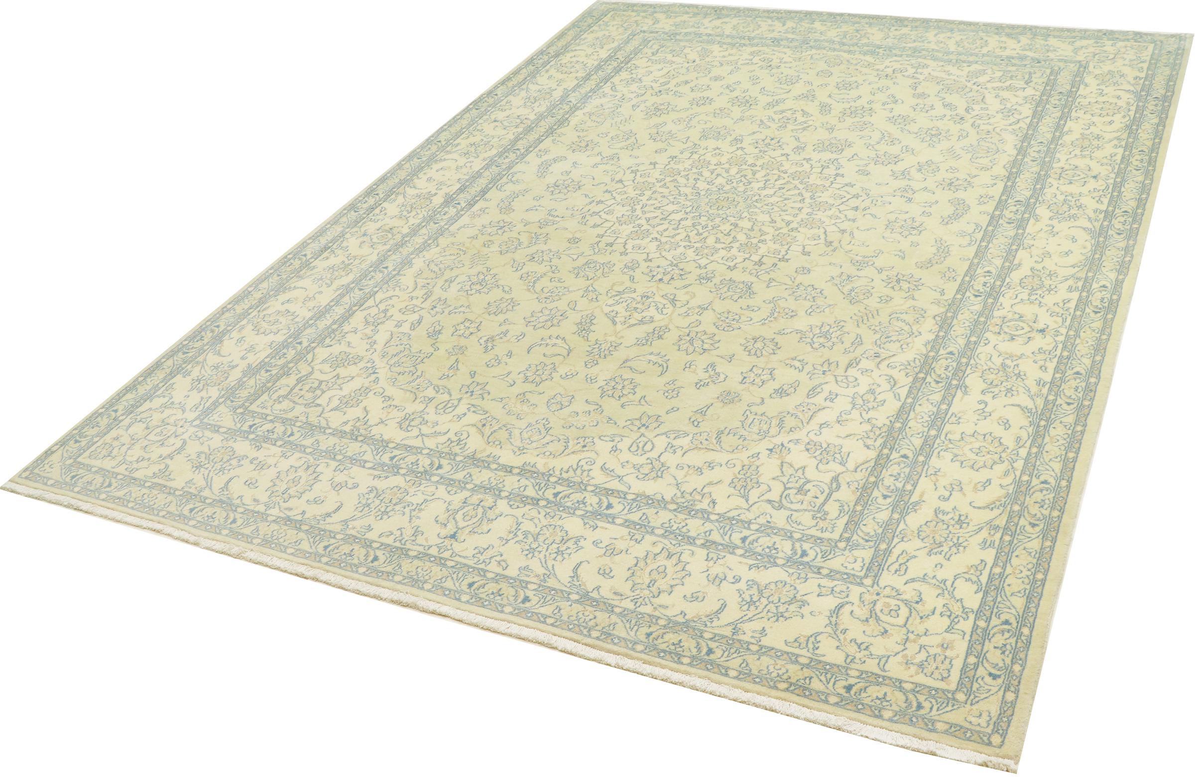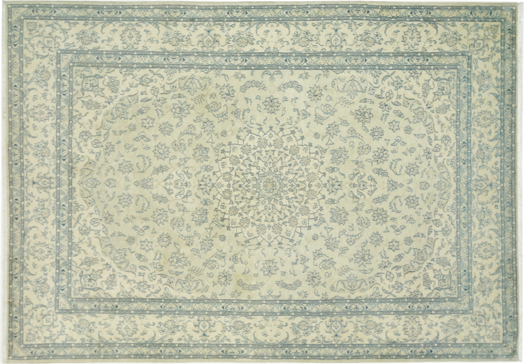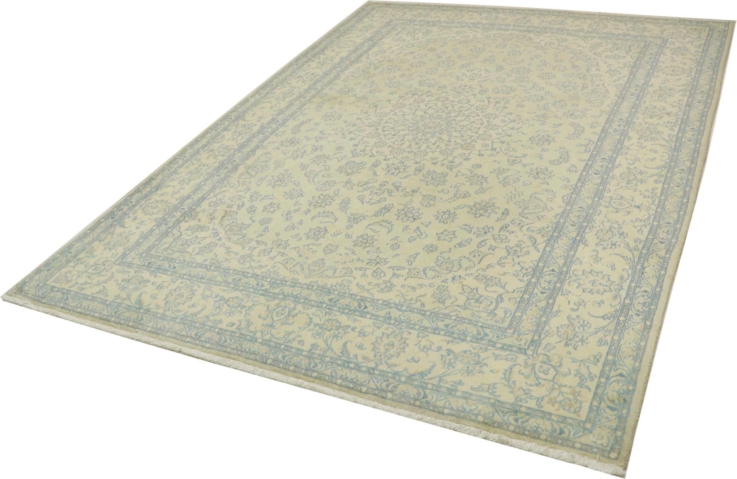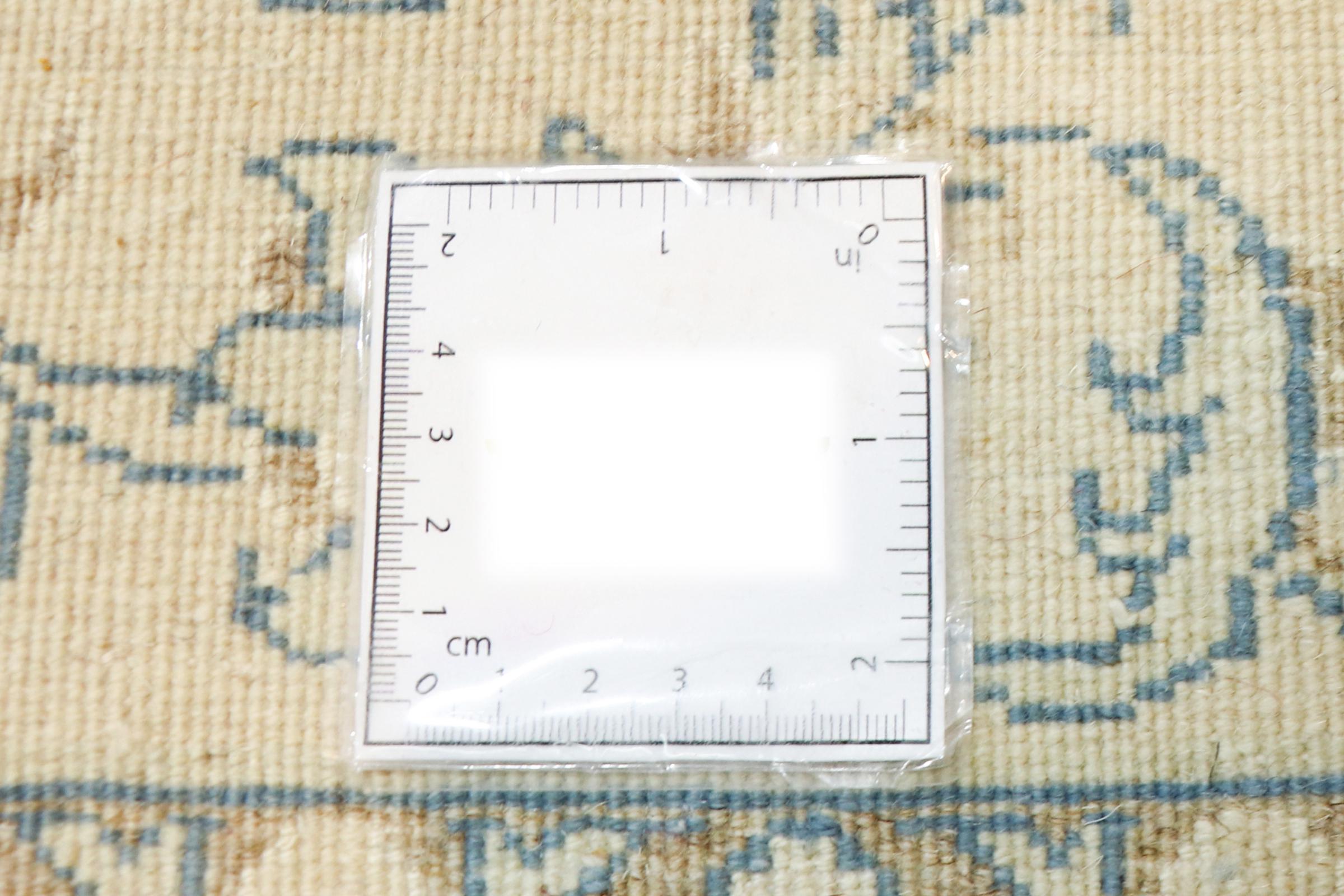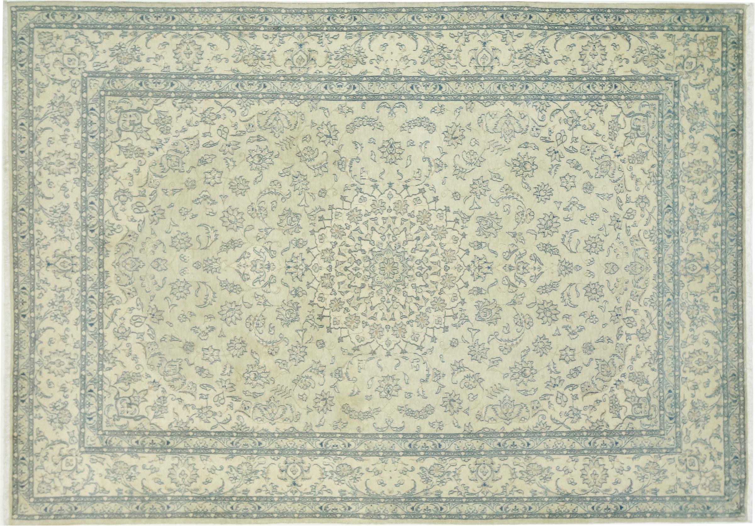 Este tapete Nain é classificado como 12La. Apresenta um aspecto elegante e requintado com a sua coloração típica Naín. Este tapete persa foi feito à mão na cidade de Nain, localizada no extremo oeste do deserto Dasht-e-Kavir, com lã de alta qualidade e seda natural. Com tamanho 12La, não é tão detalhado com ornamentação quanto 9La ou 6La Nain.