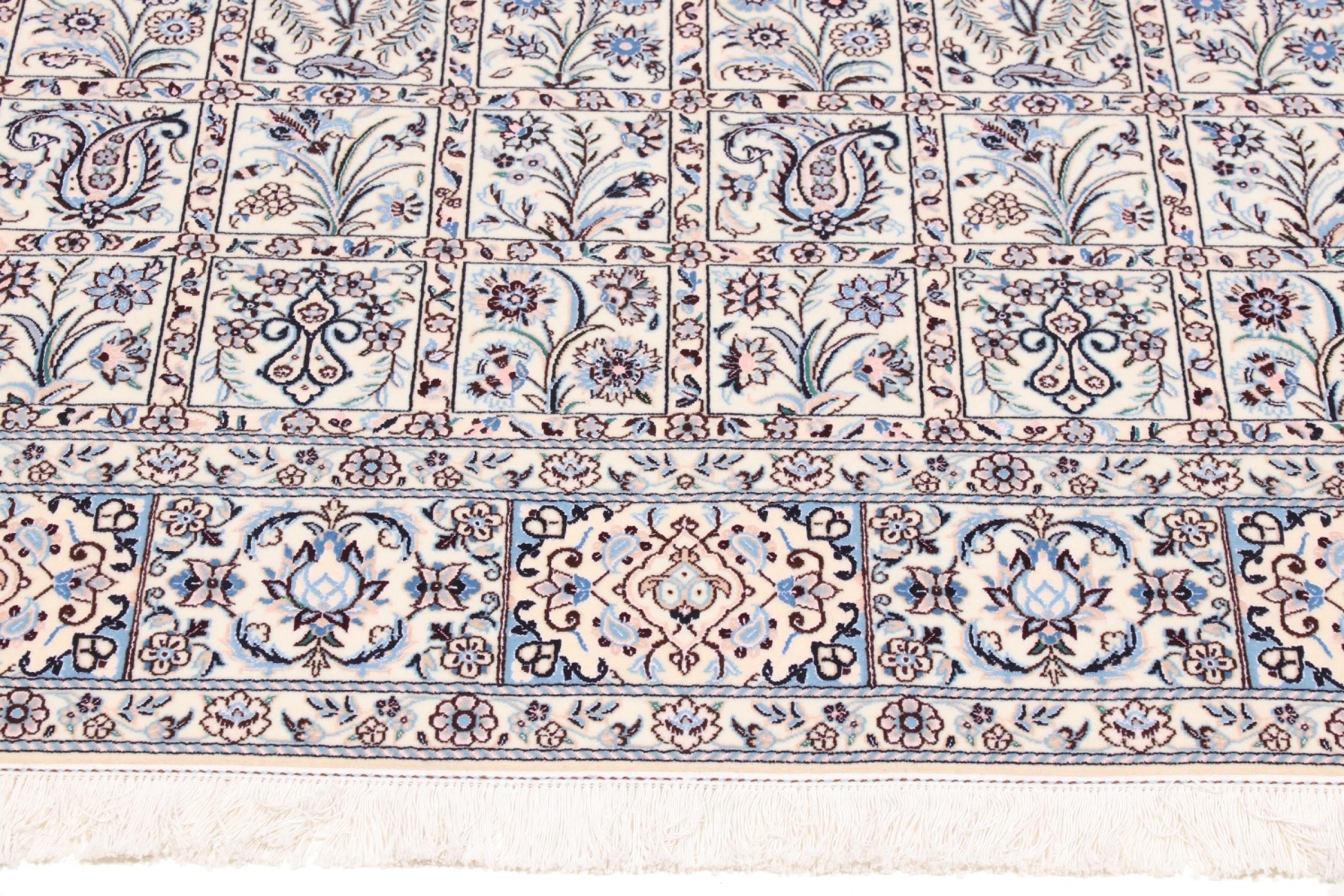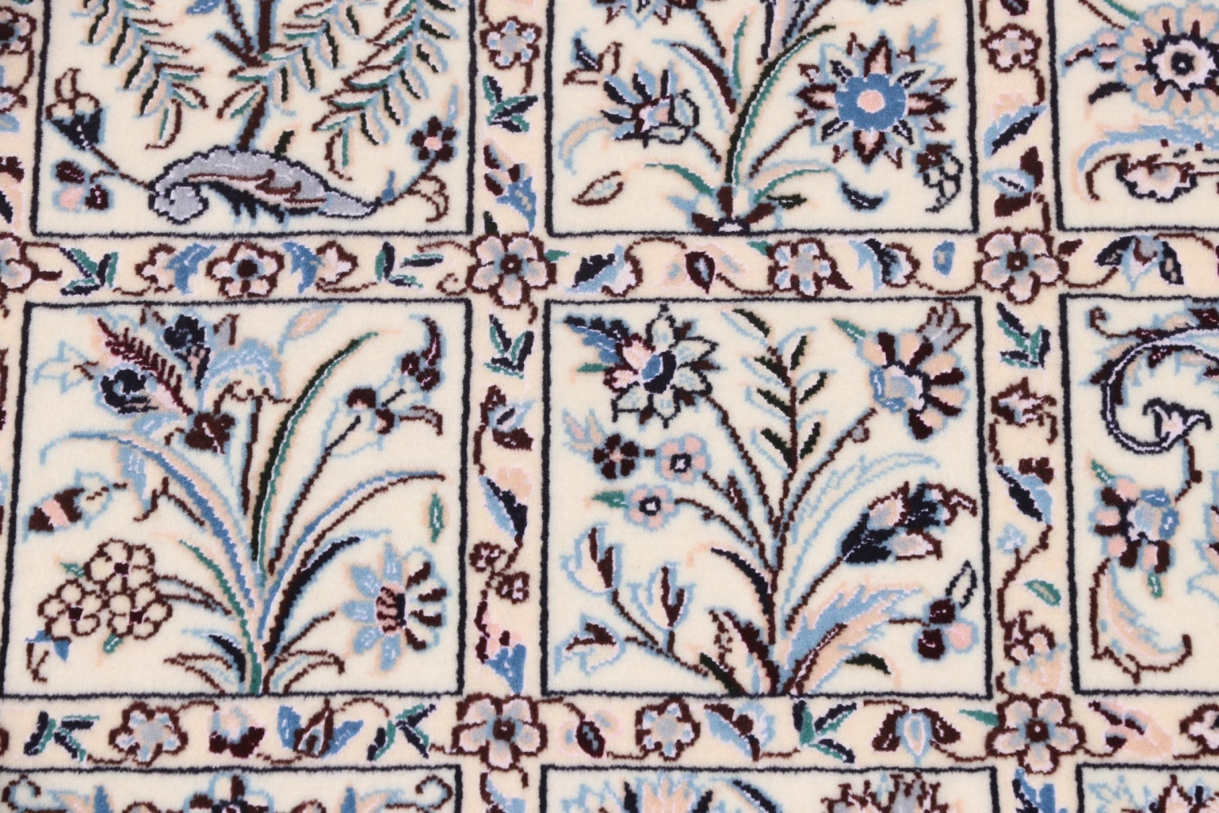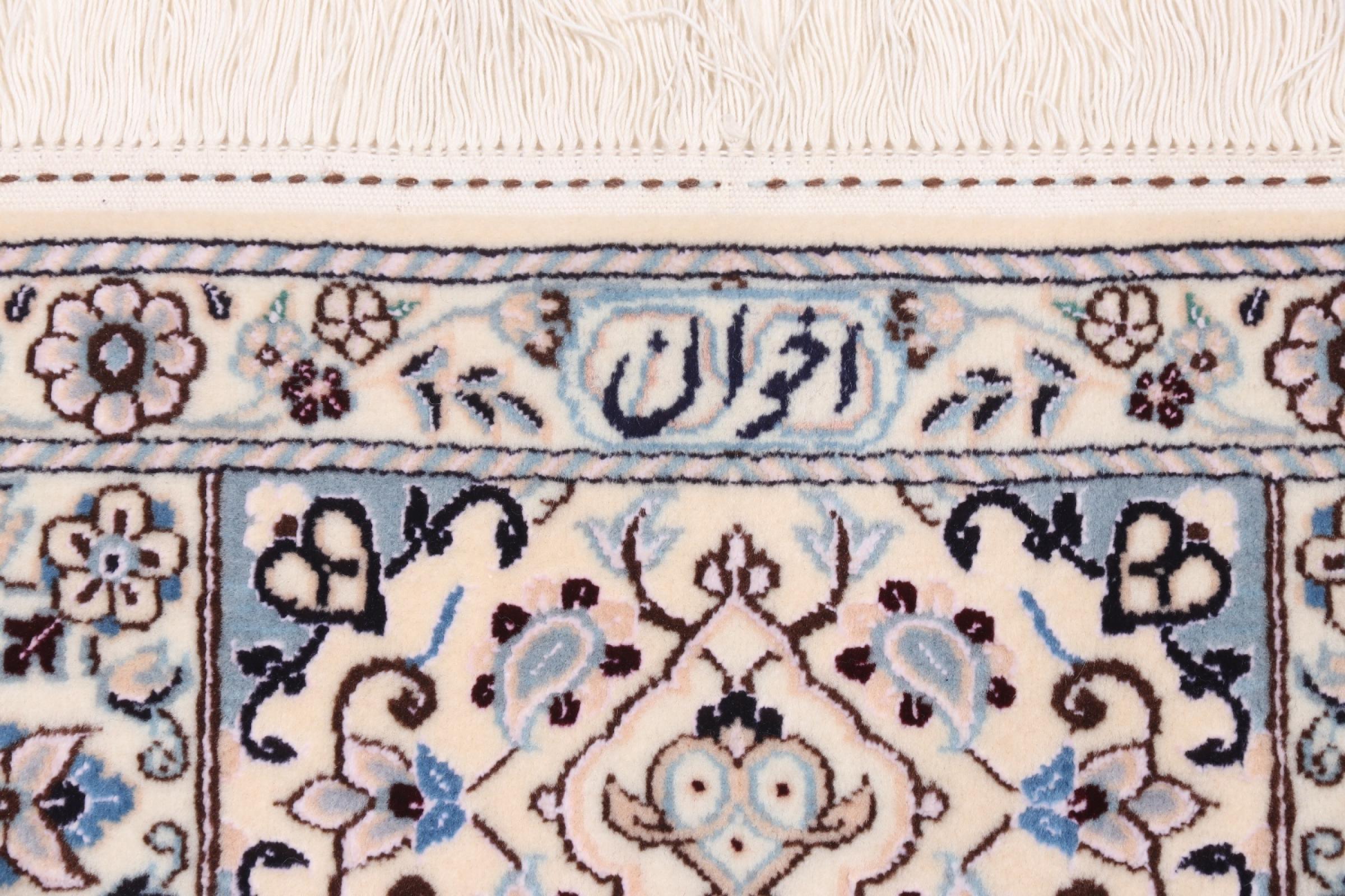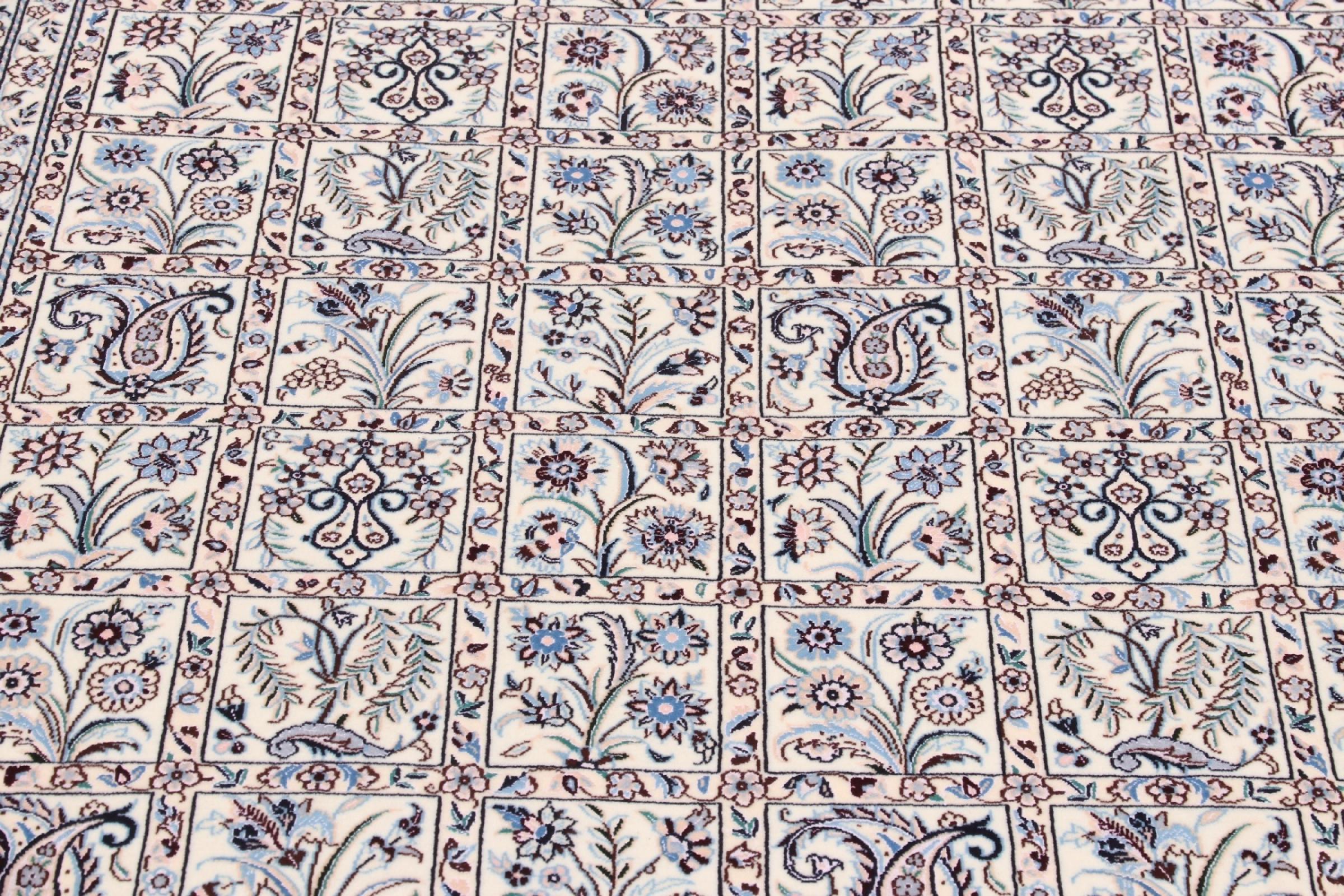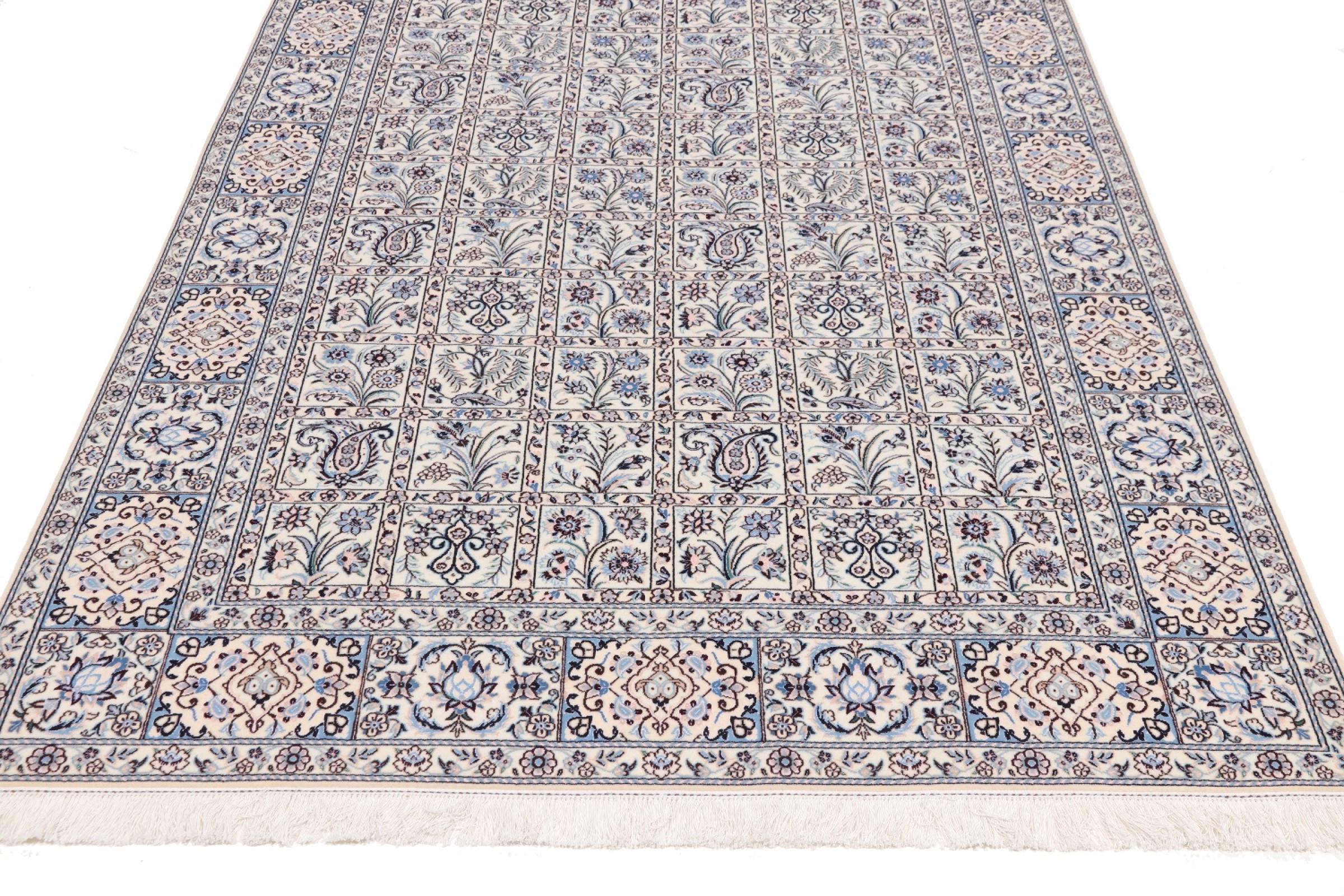 Este tapete Nain combina qualidade, tradição e um design inconfundível. Foi feito à mão na cidade deserta de mesmo nome, Nain, com lã de cortiça de alta qualidade e seda natural. Os amantes dos tapetes valiosos do Irã vão gostar deste tapete persa. Com os tapetes Nain da classificação 6La e 4La você tem uma verdadeira obra de arte com um nível de detalhe incrível na qual você pode literalmente se perder. Os tapetes Nain 4La são difíceis de encontrar hoje porque são extremamente complexos de produzir.