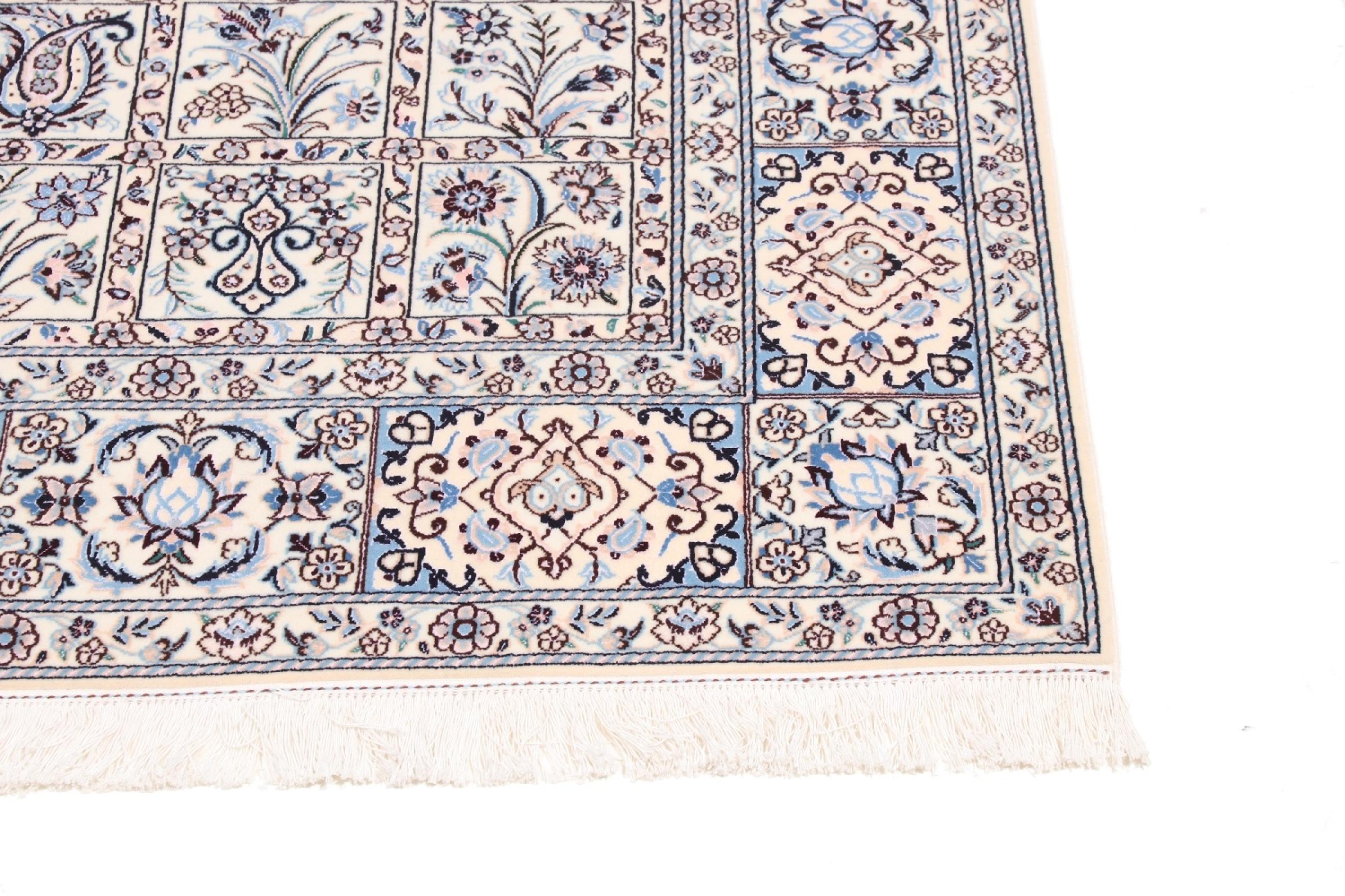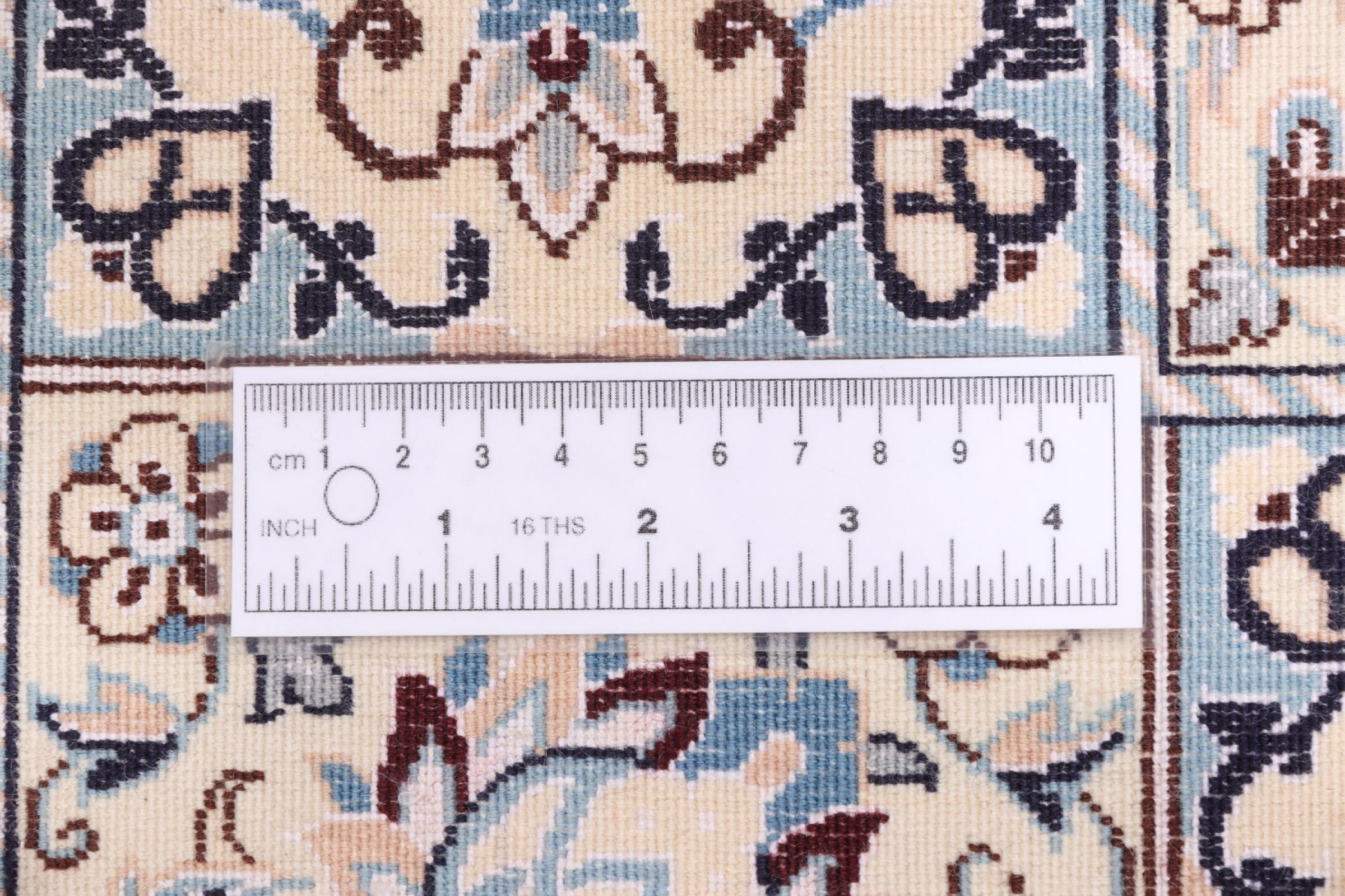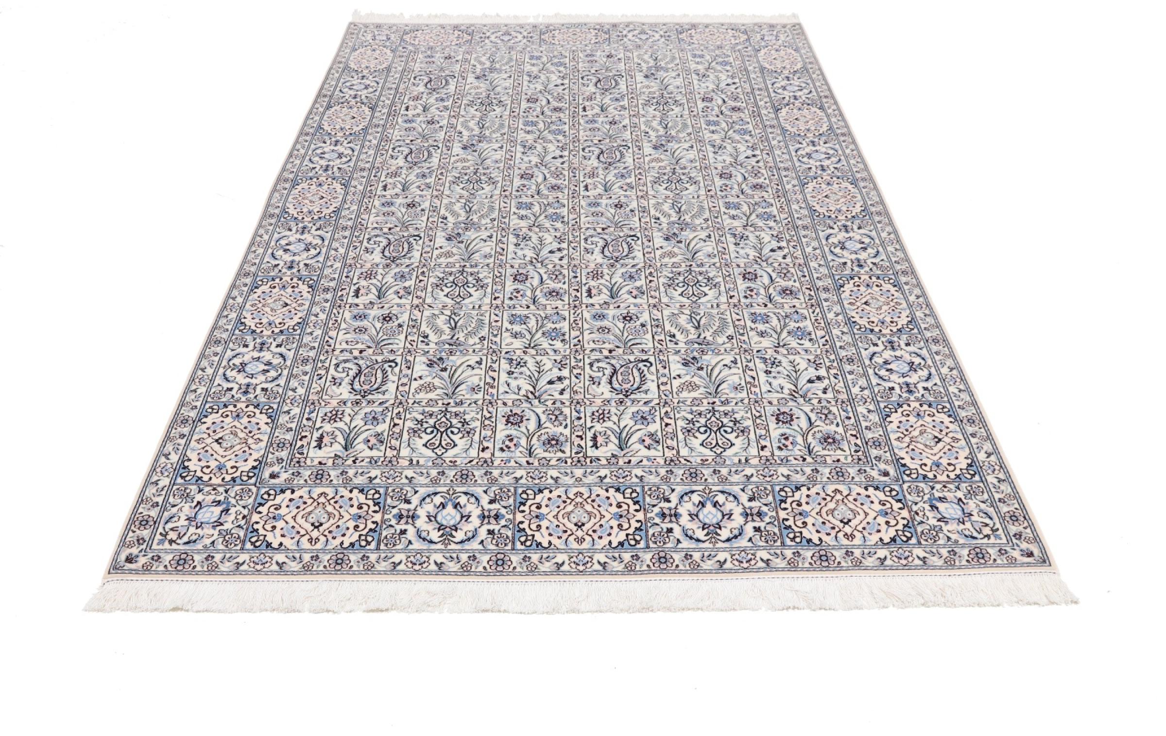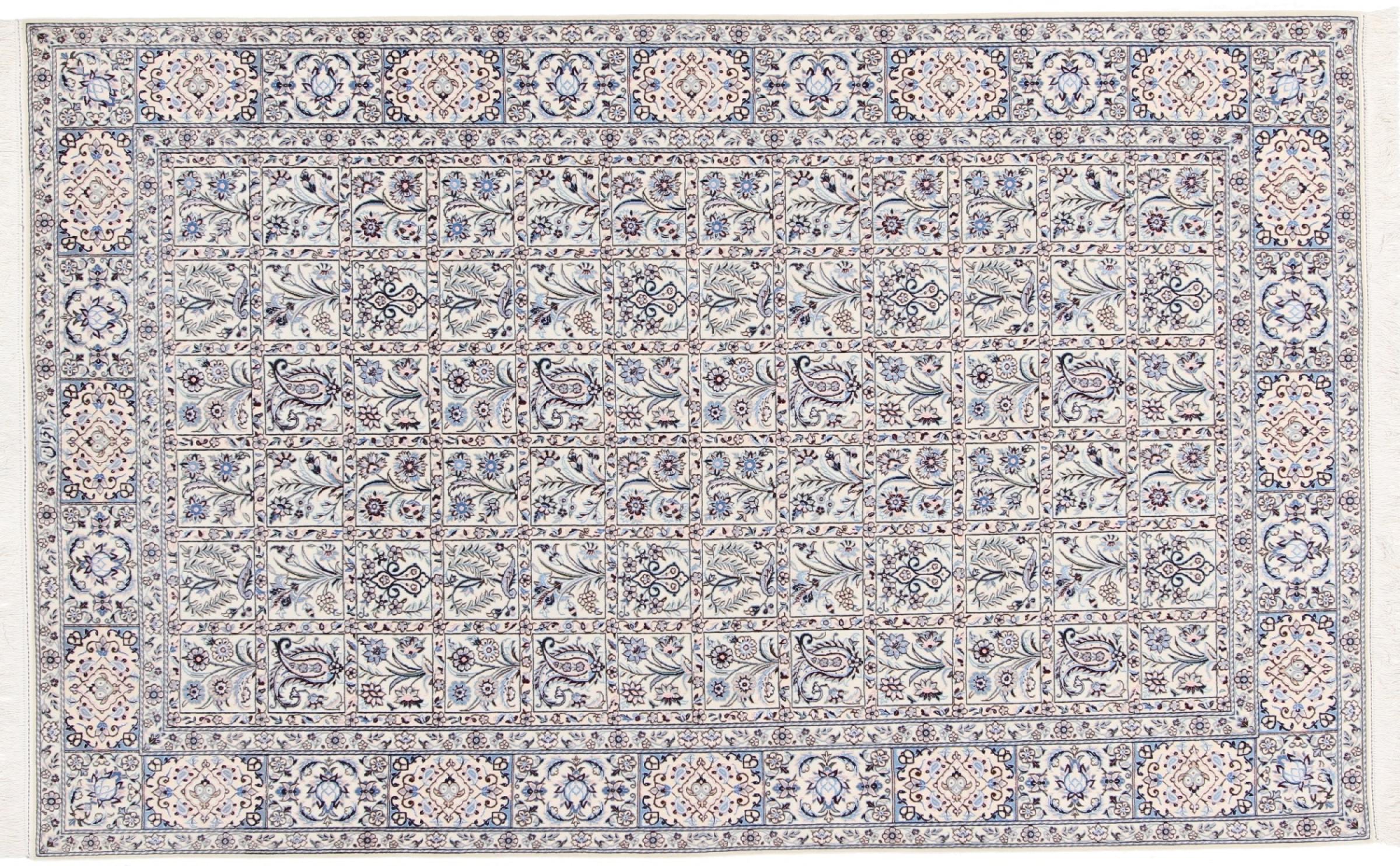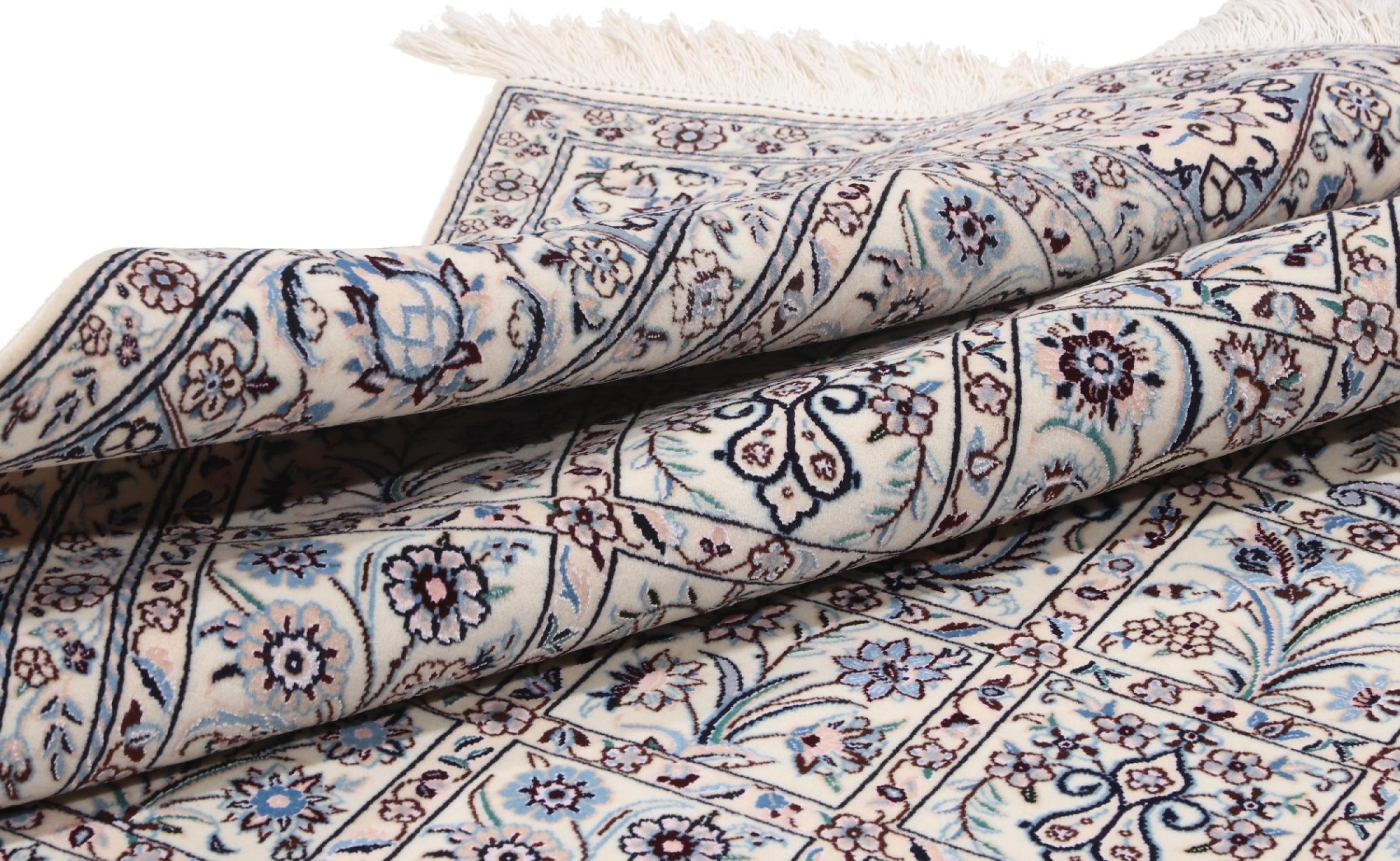 Este tapete Nain combina qualidade, tradição e um design inconfundível. Foi feito à mão na cidade deserta de mesmo nome, Nain, com lã de cortiça de alta qualidade e seda natural. Os amantes dos tapetes valiosos do Irã vão gostar deste tapete persa. Com os tapetes Nain da classificação 6La e 4La você tem uma verdadeira obra de arte com um nível de detalhe incrível na qual você pode literalmente se perder. Os tapetes Nain 4La são difíceis de encontrar hoje porque são extremamente complexos de produzir.